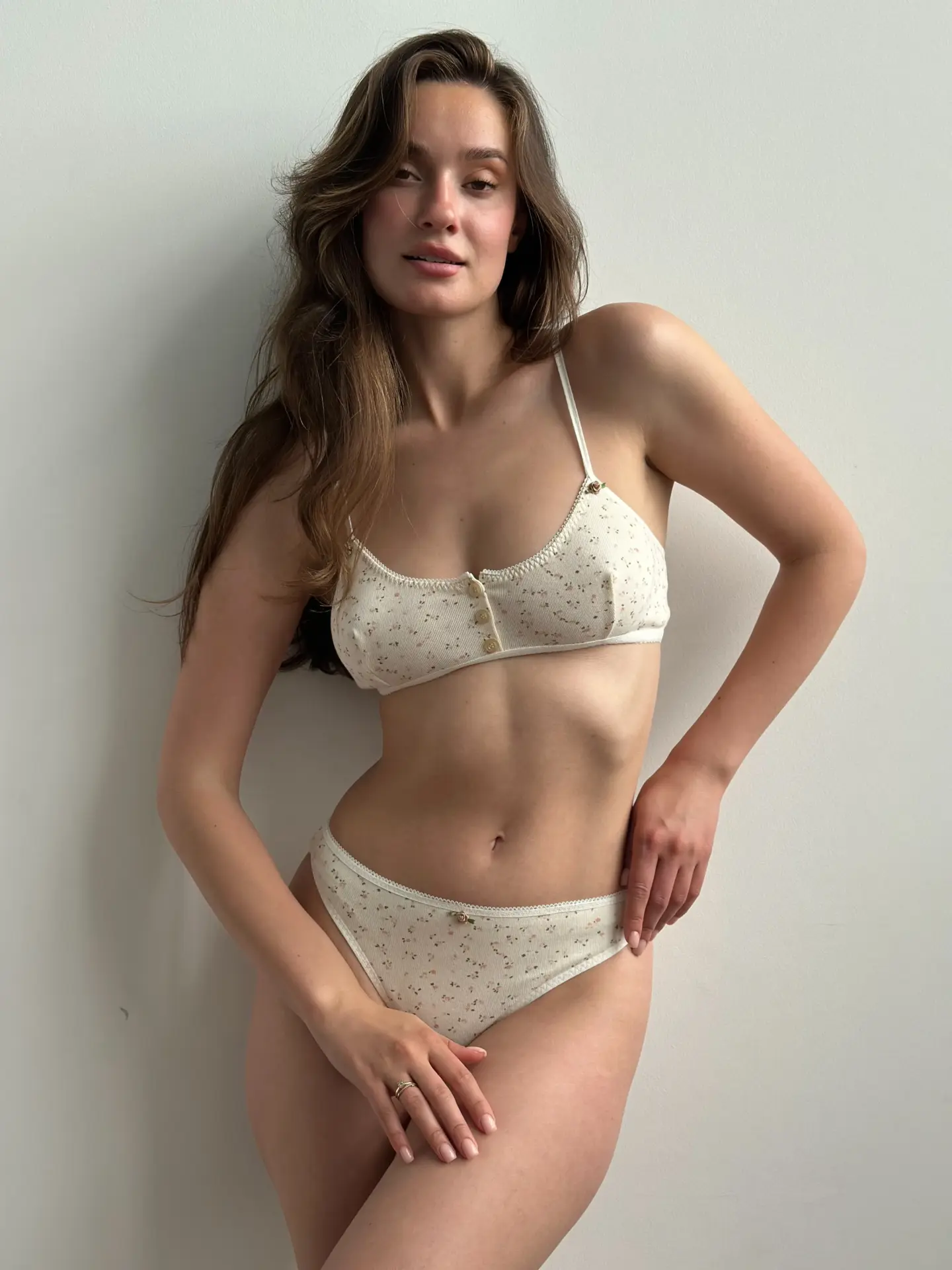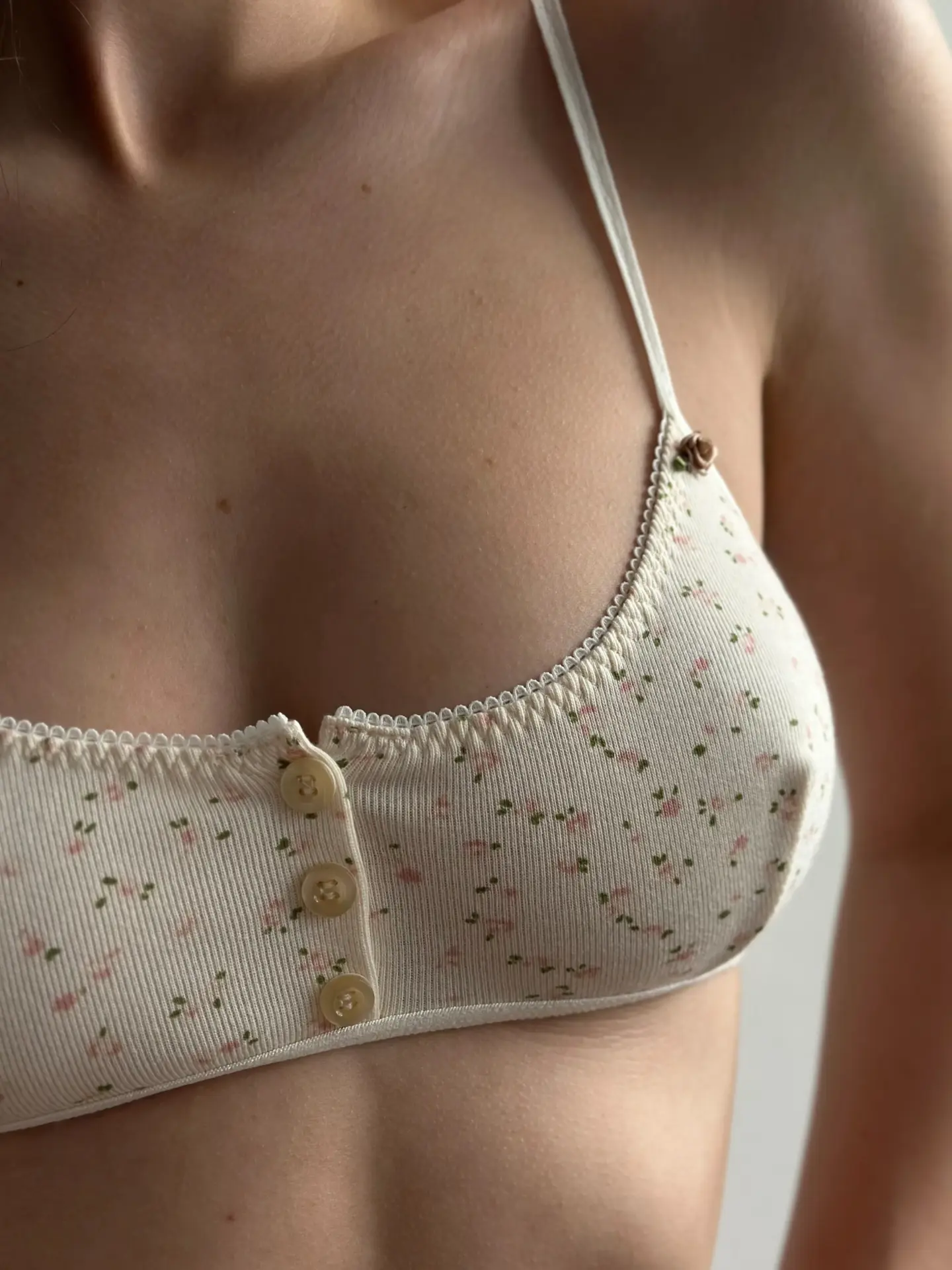 Top braletka z ribany gładkiej, kremowy w różowe róże