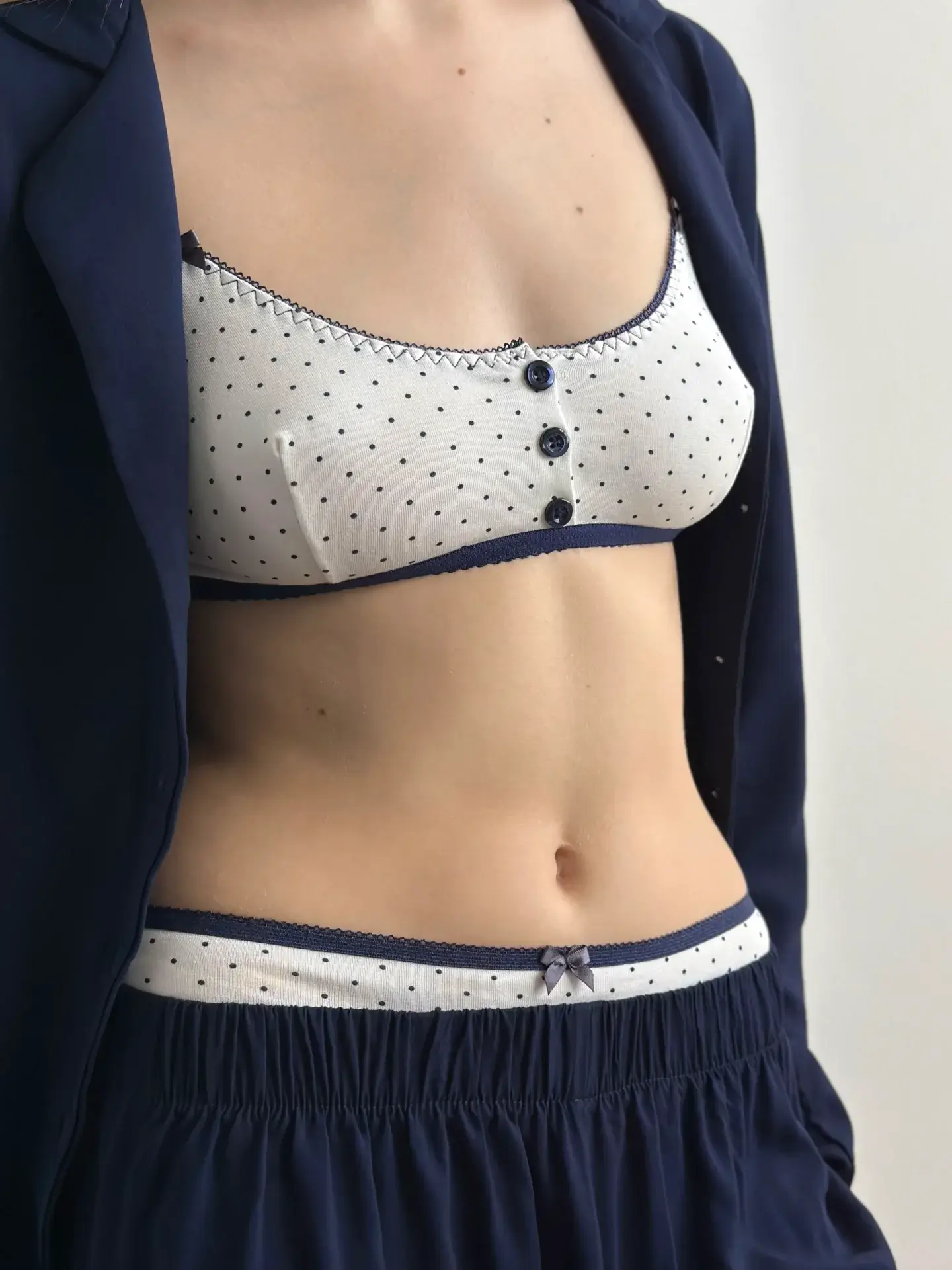 Top braletka z dzianiny, biały w granatowe groszki