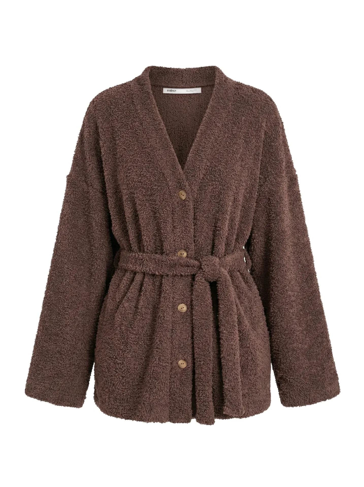 Bluza Soft na guziki, z frotte, brązowa