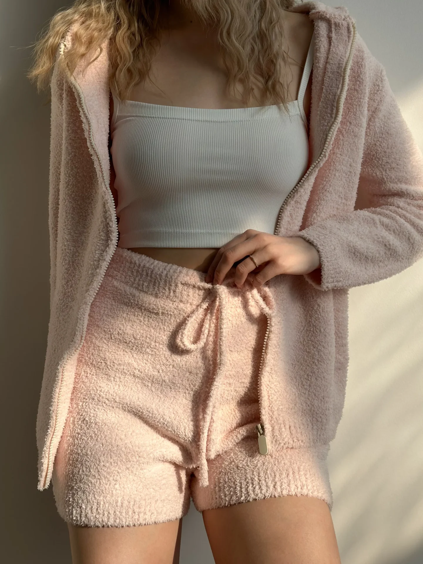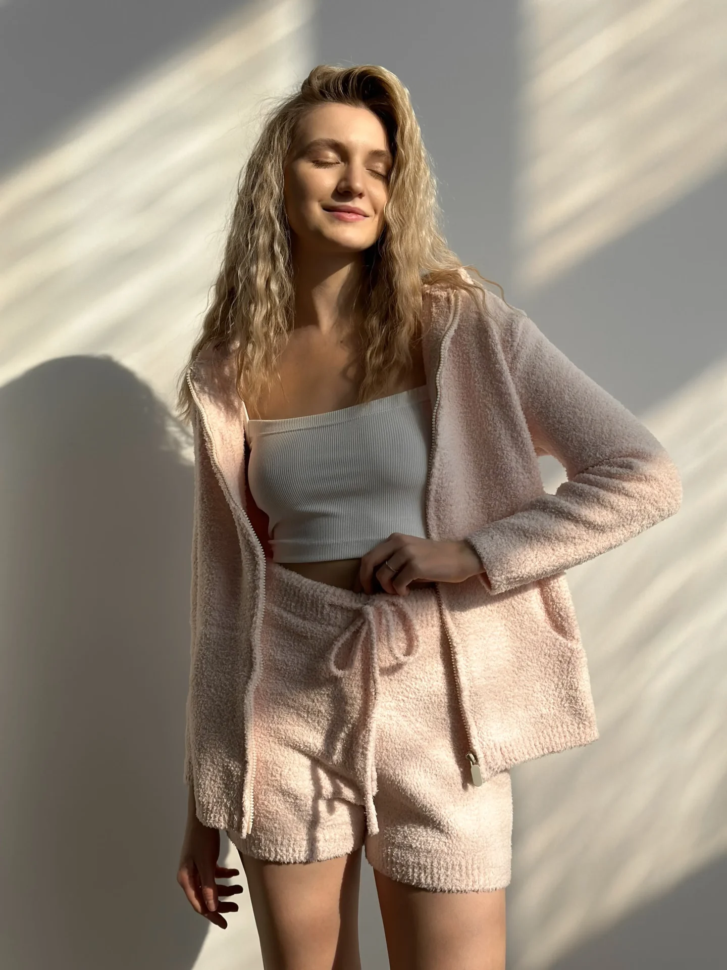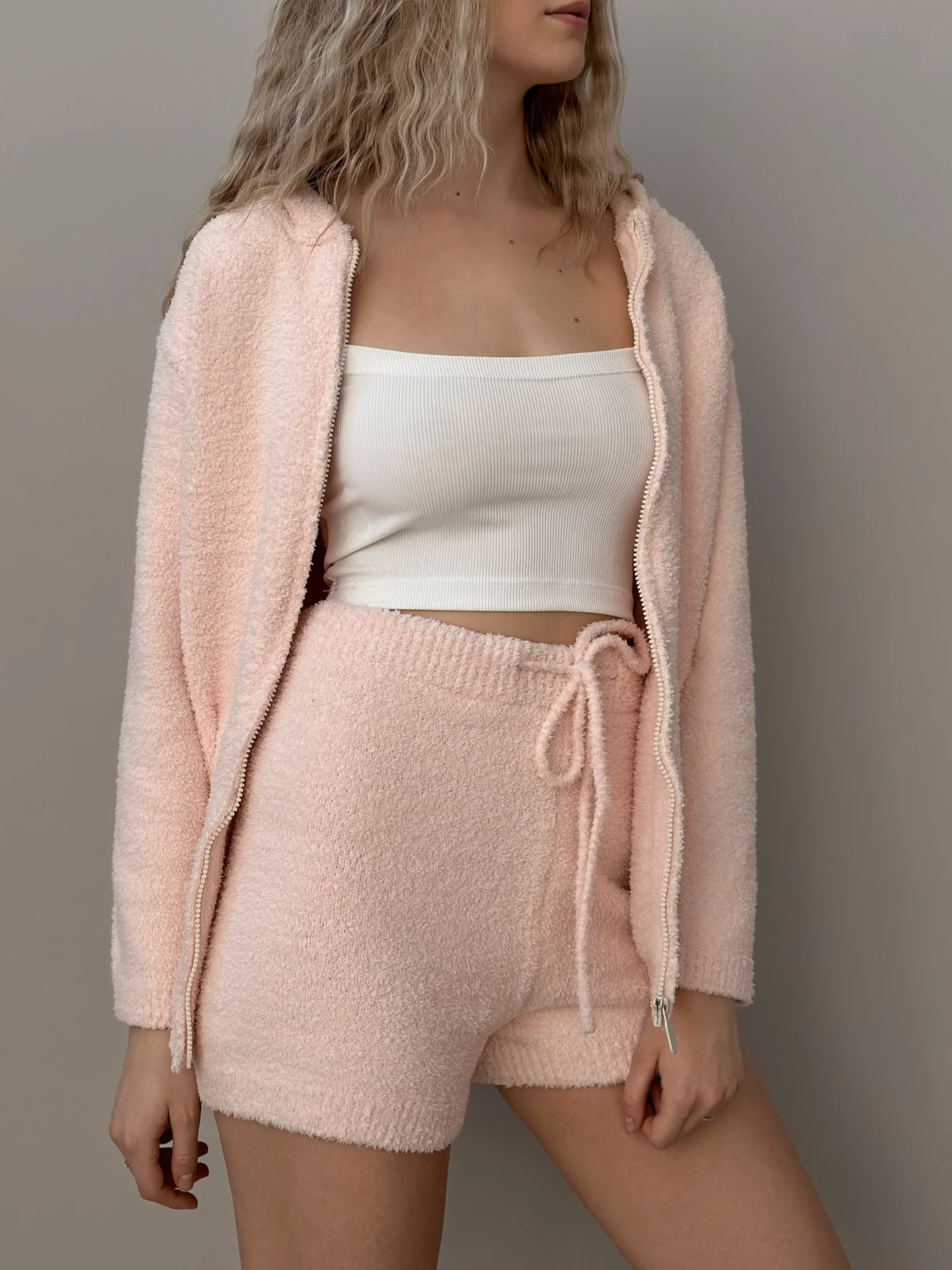 Bluza Soft na zamek, z dzianiny puszystej, pudrowa