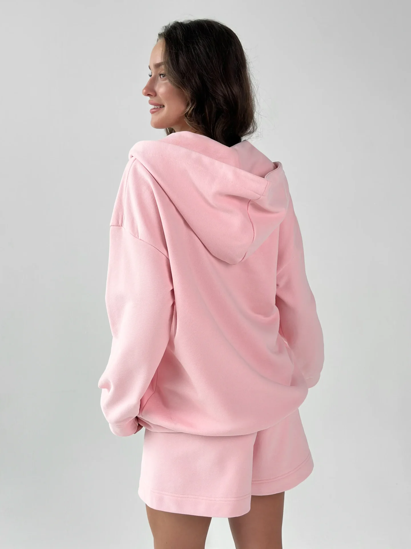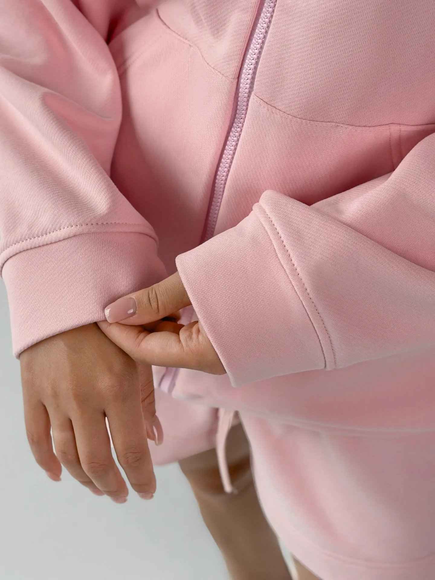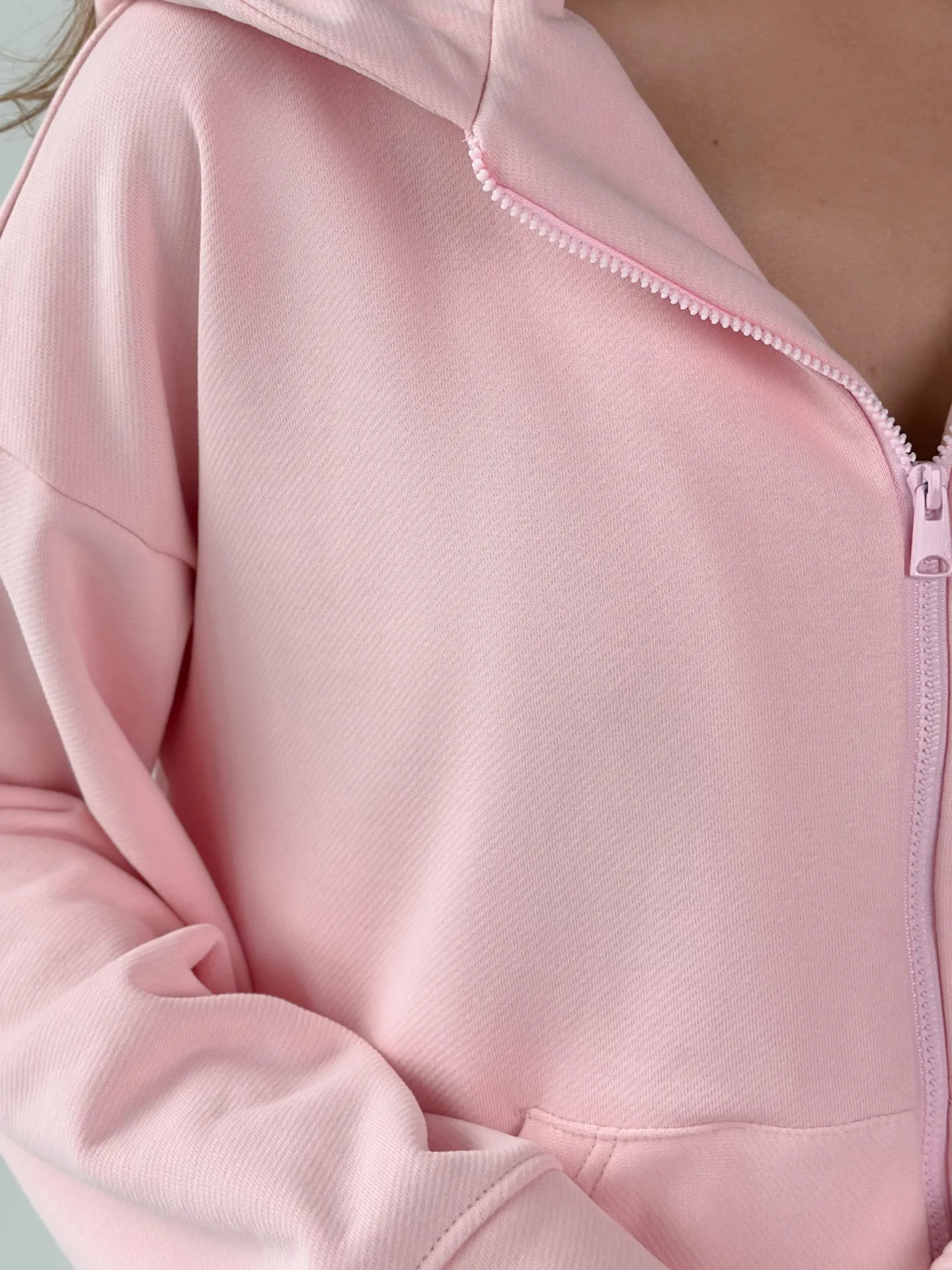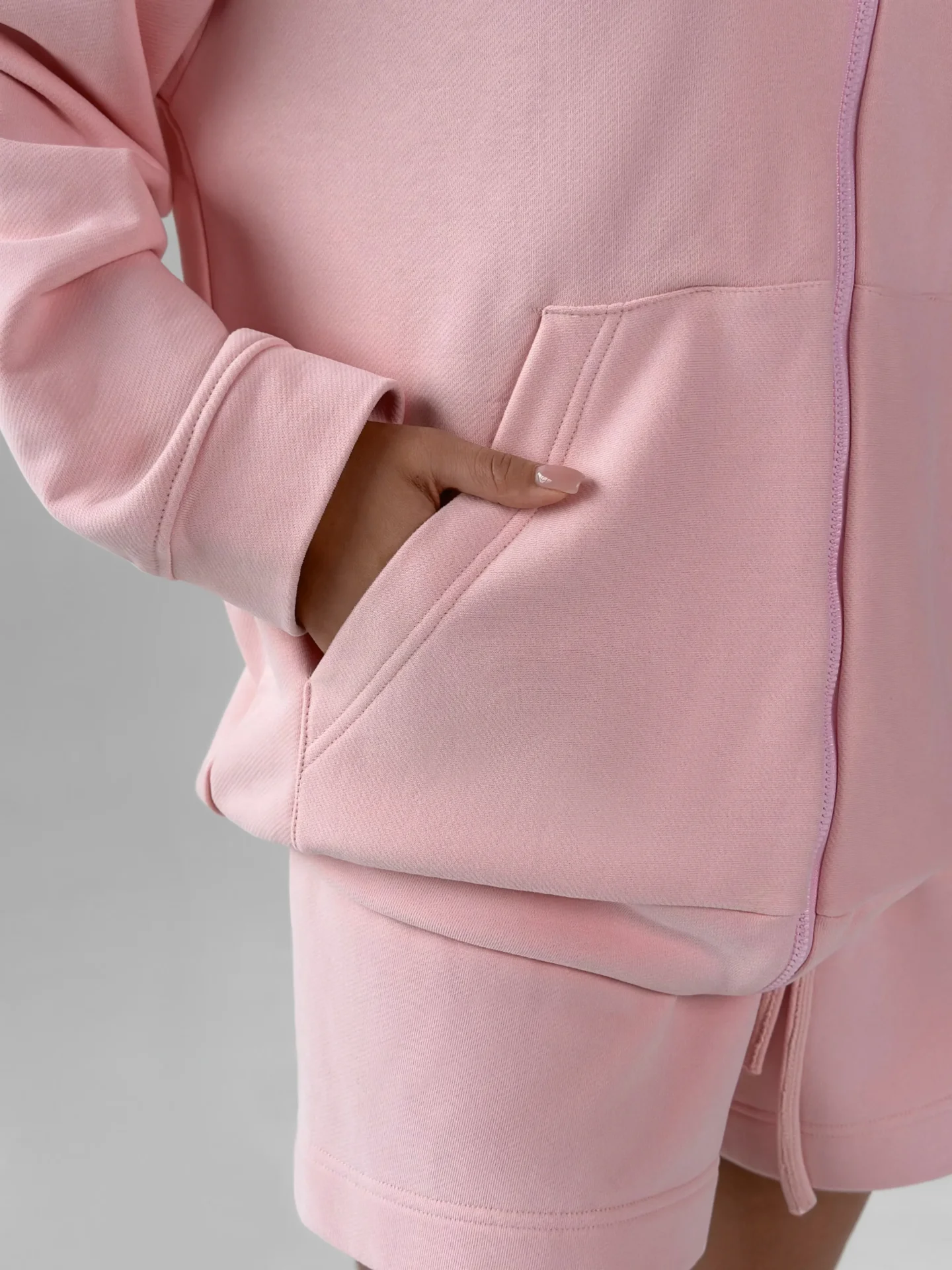 Bluza z kapturem na zamek, z dzianiny 3-nitkowej, różowa - Miso