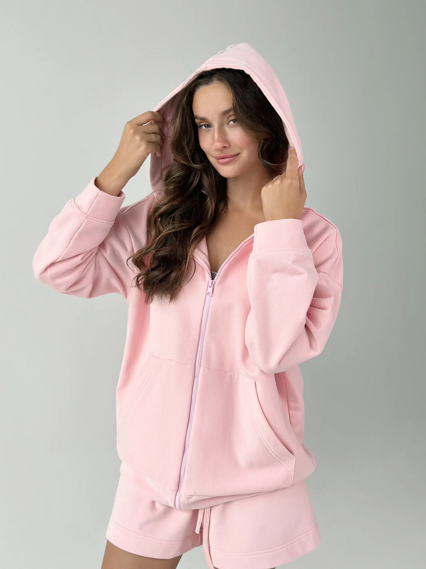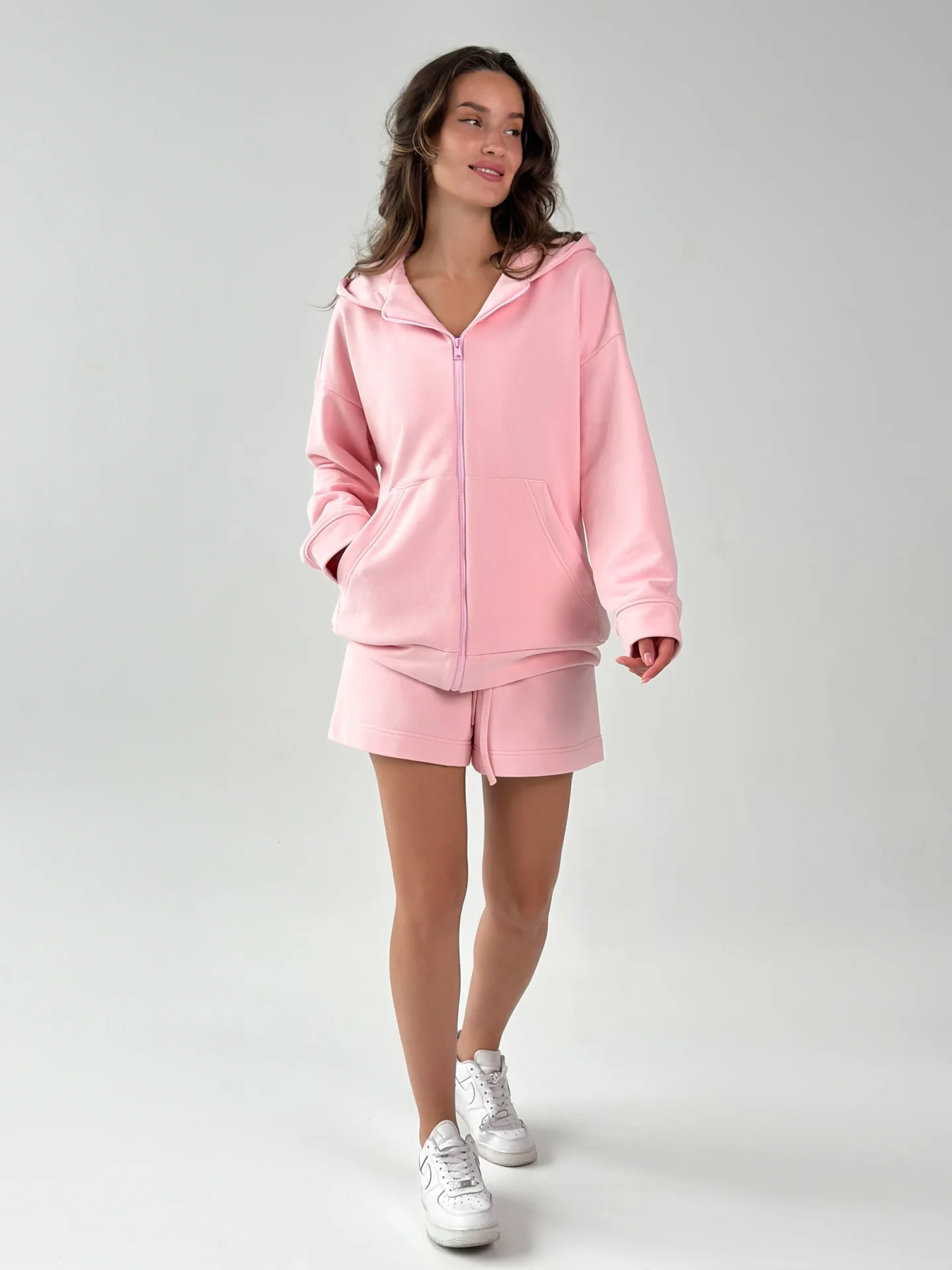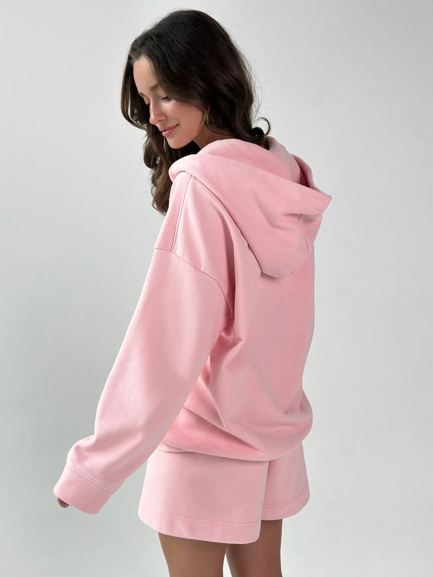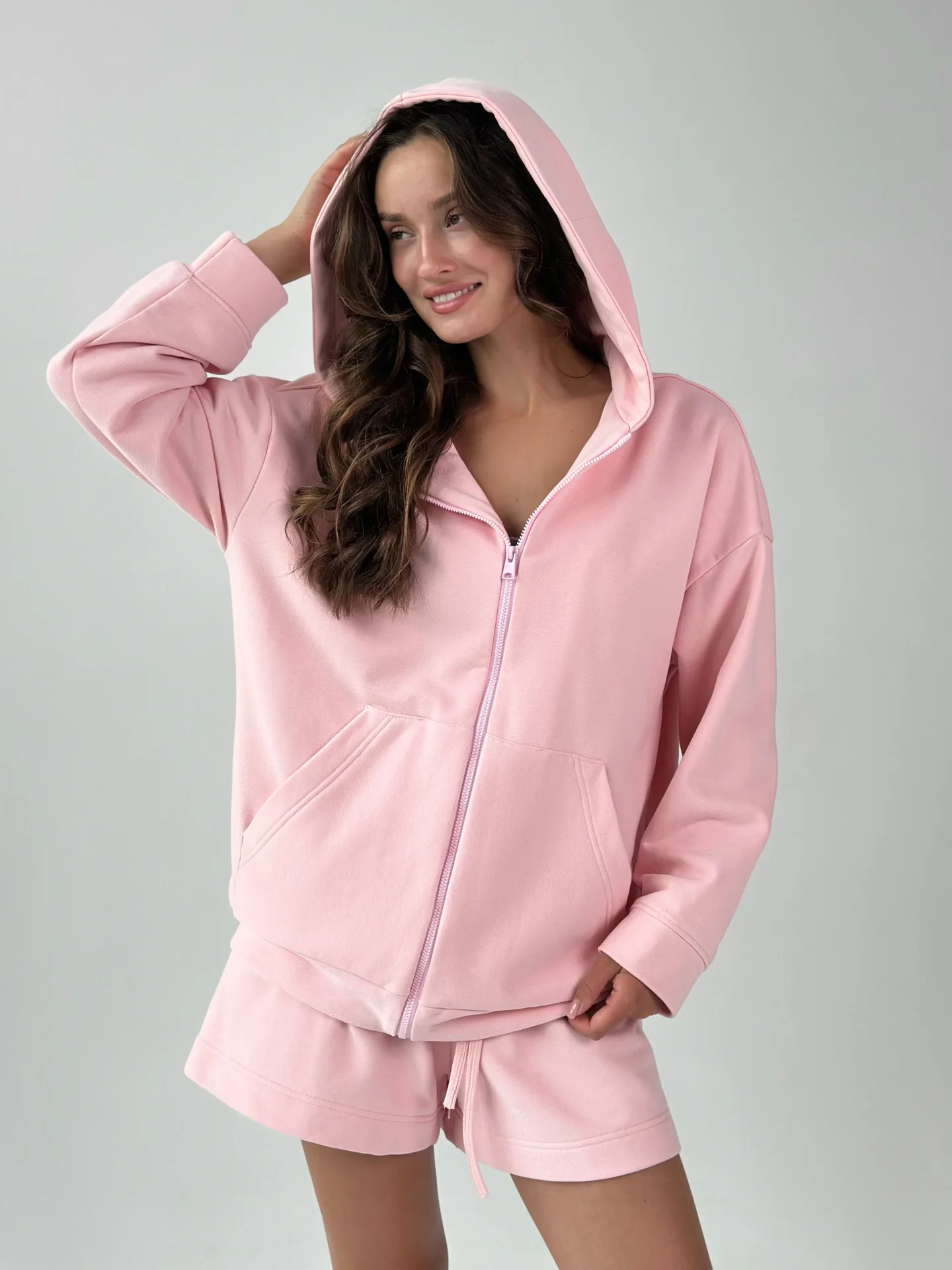 Bluza z kapturem na zamek, z dzianiny 3-nitkowej, różowa - Miso