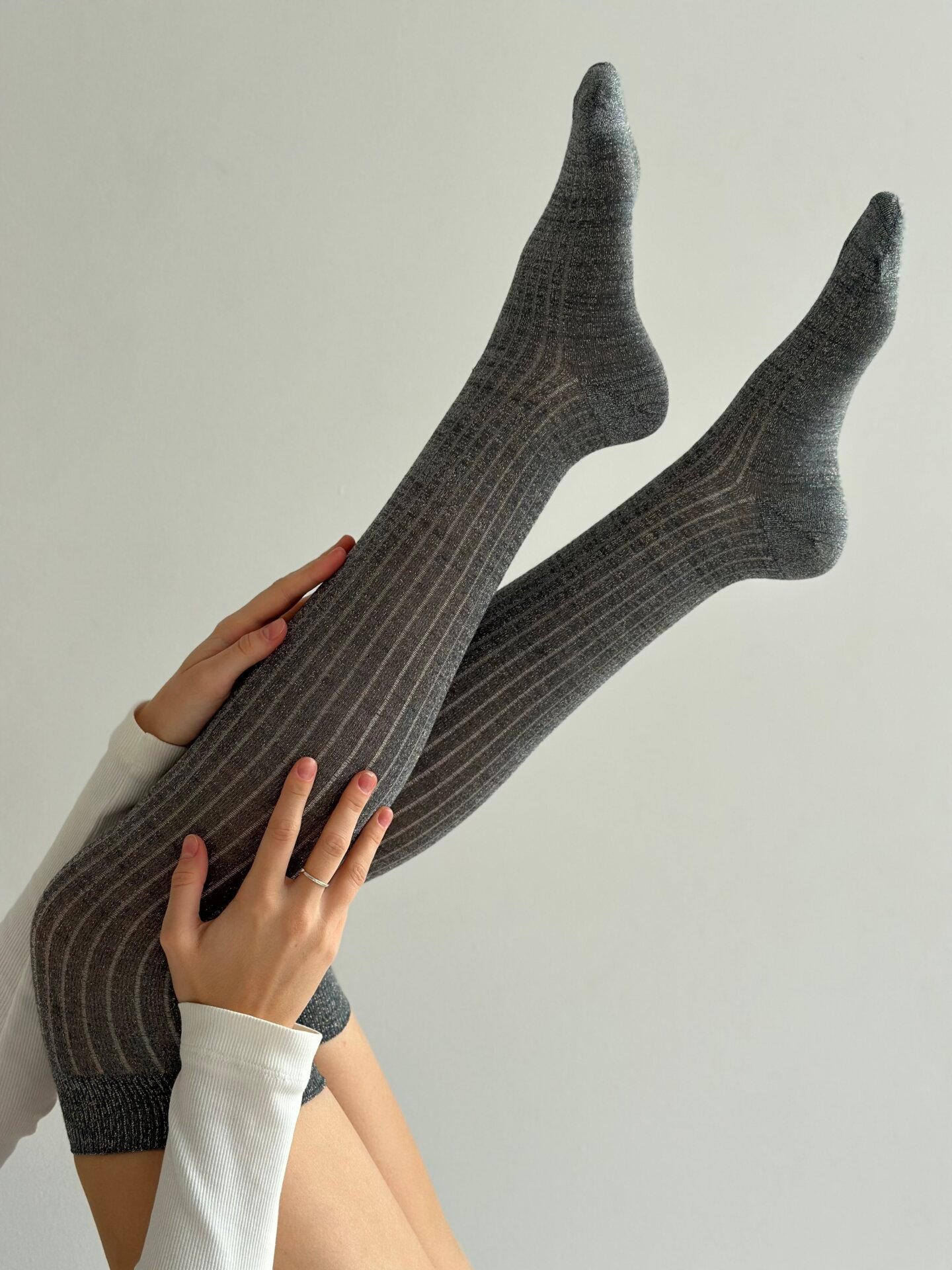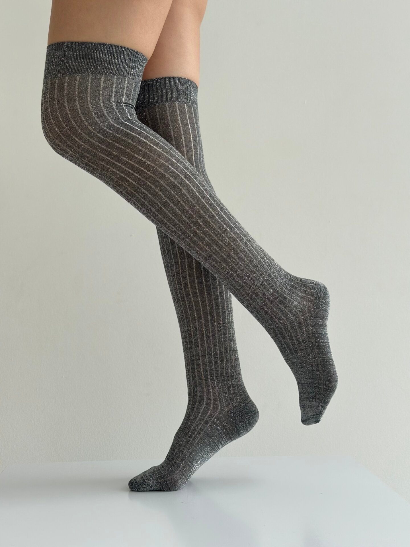 Getry wysokie, z lureksu, szare - Miso