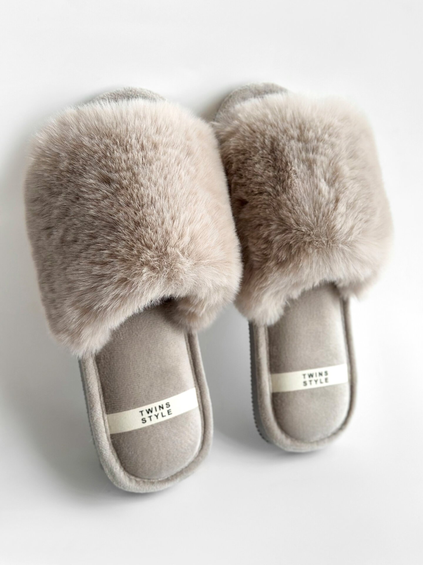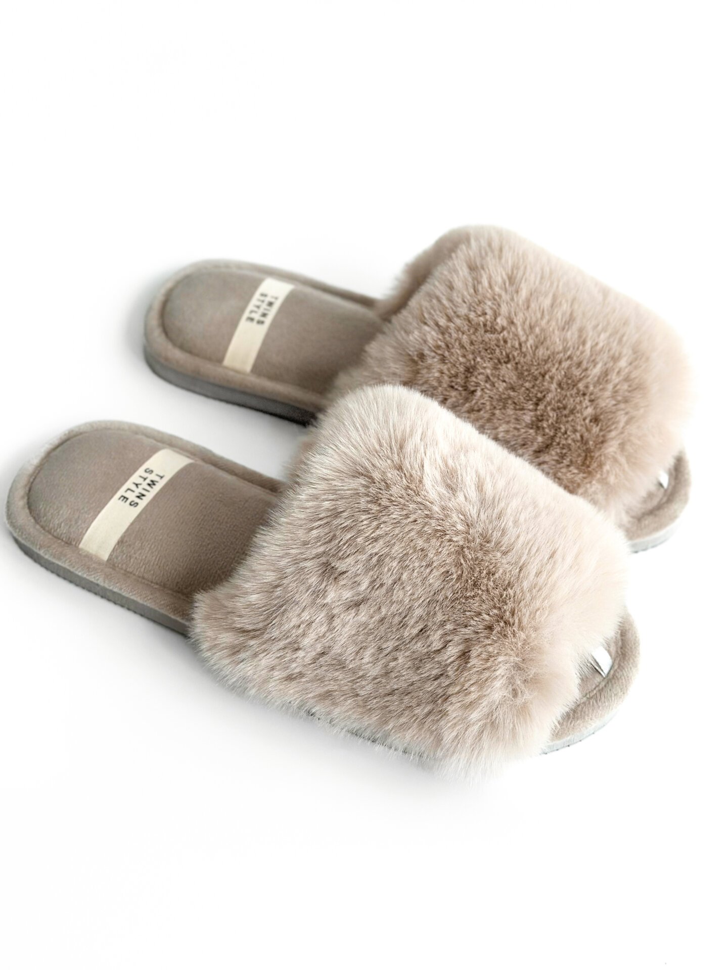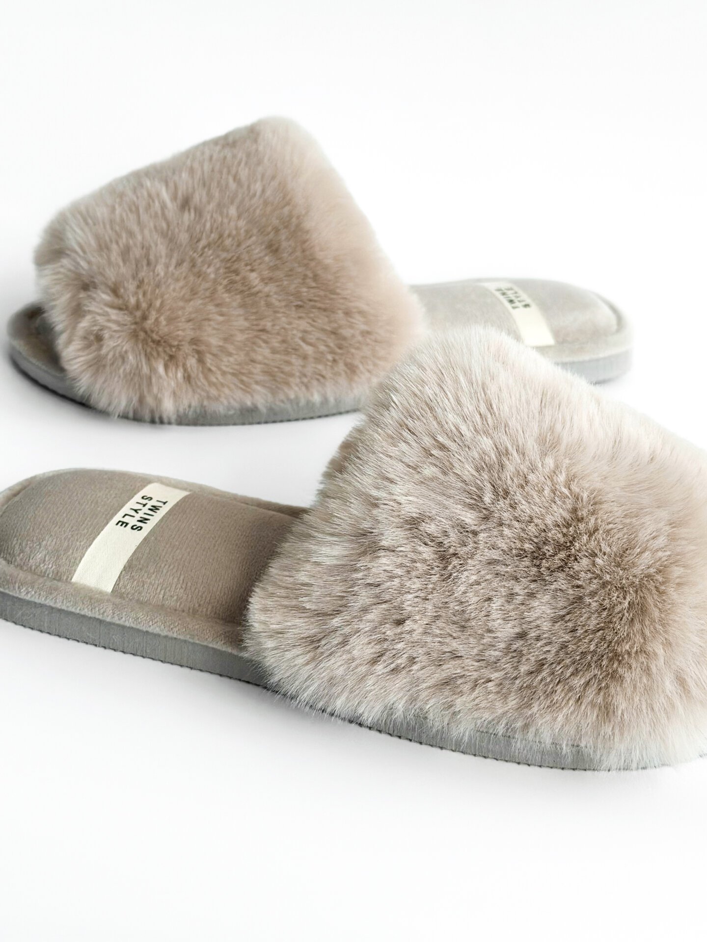 Kapcie domowe otwarte, HS‑LUX, futrzane, szare