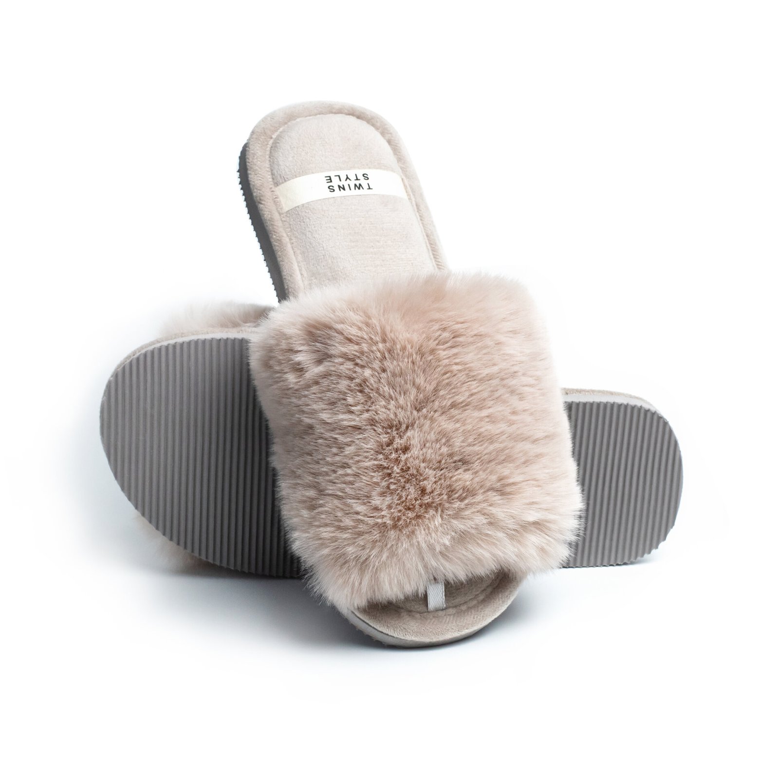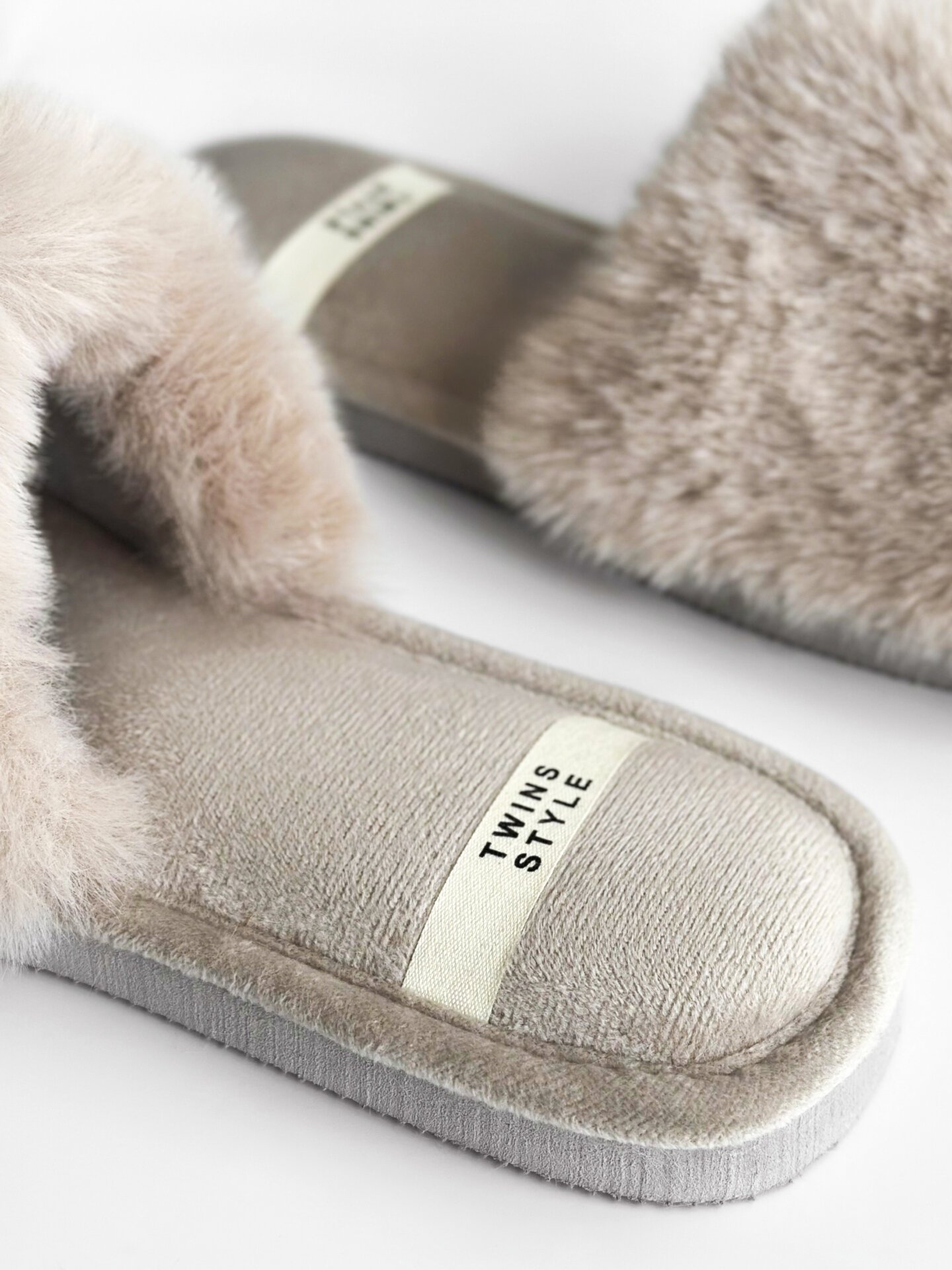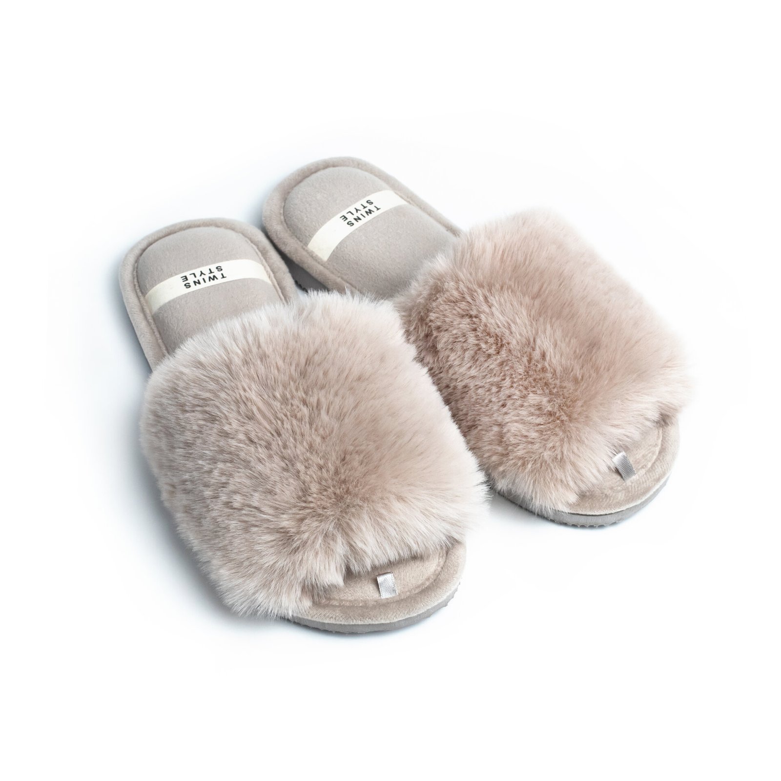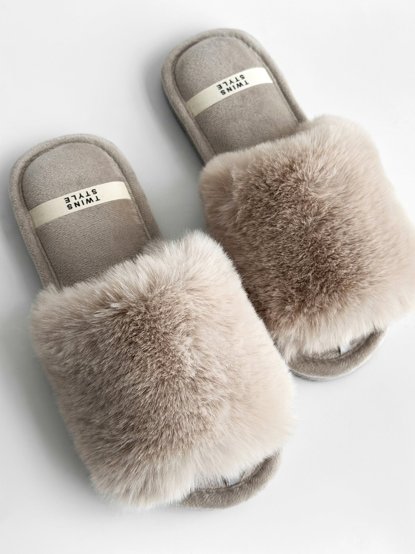 Kapcie domowe otwarte, HS‑LUX, futrzane, szare