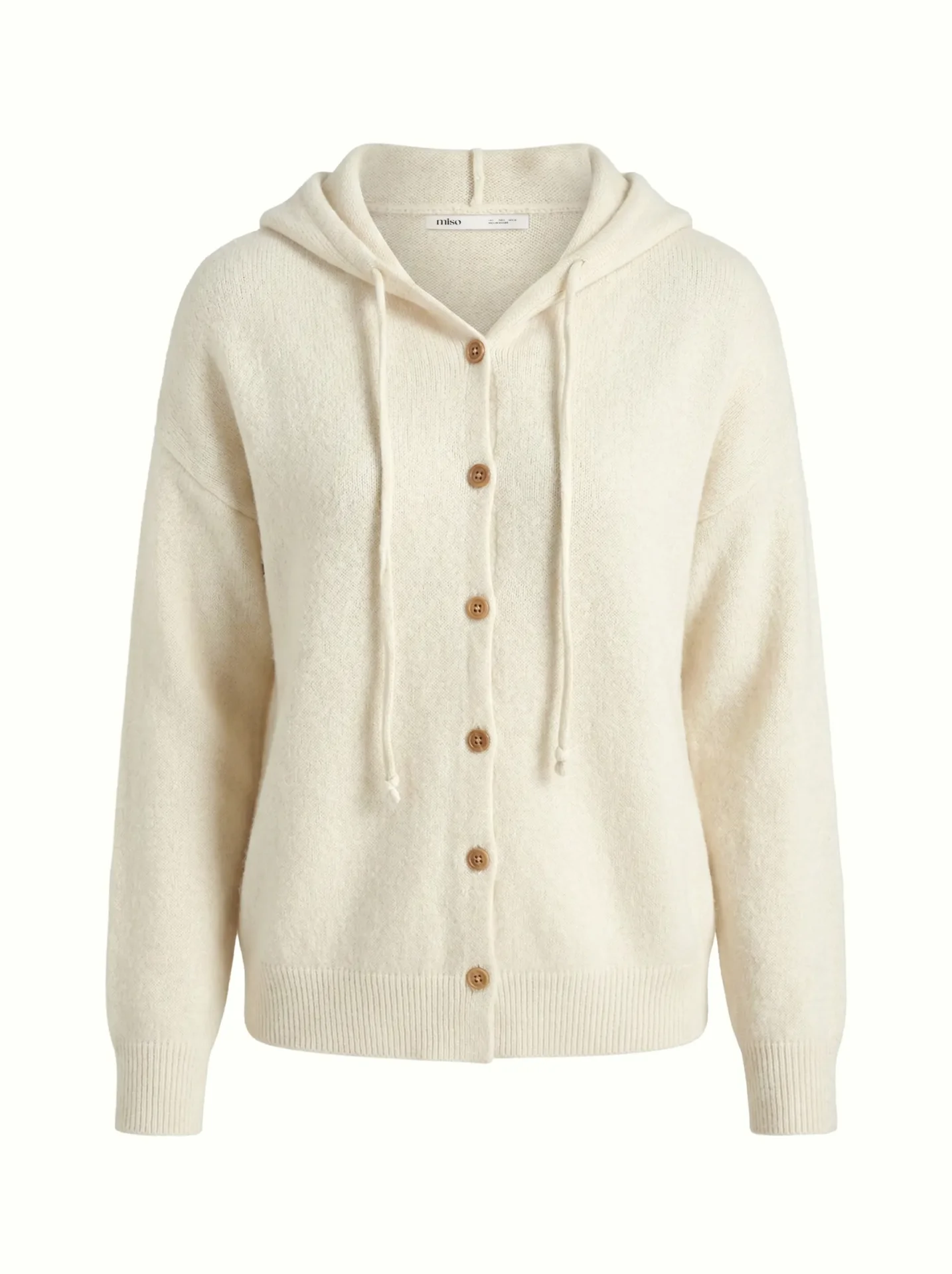 Kardigan na guziki brązowe z kapturem, kremowy