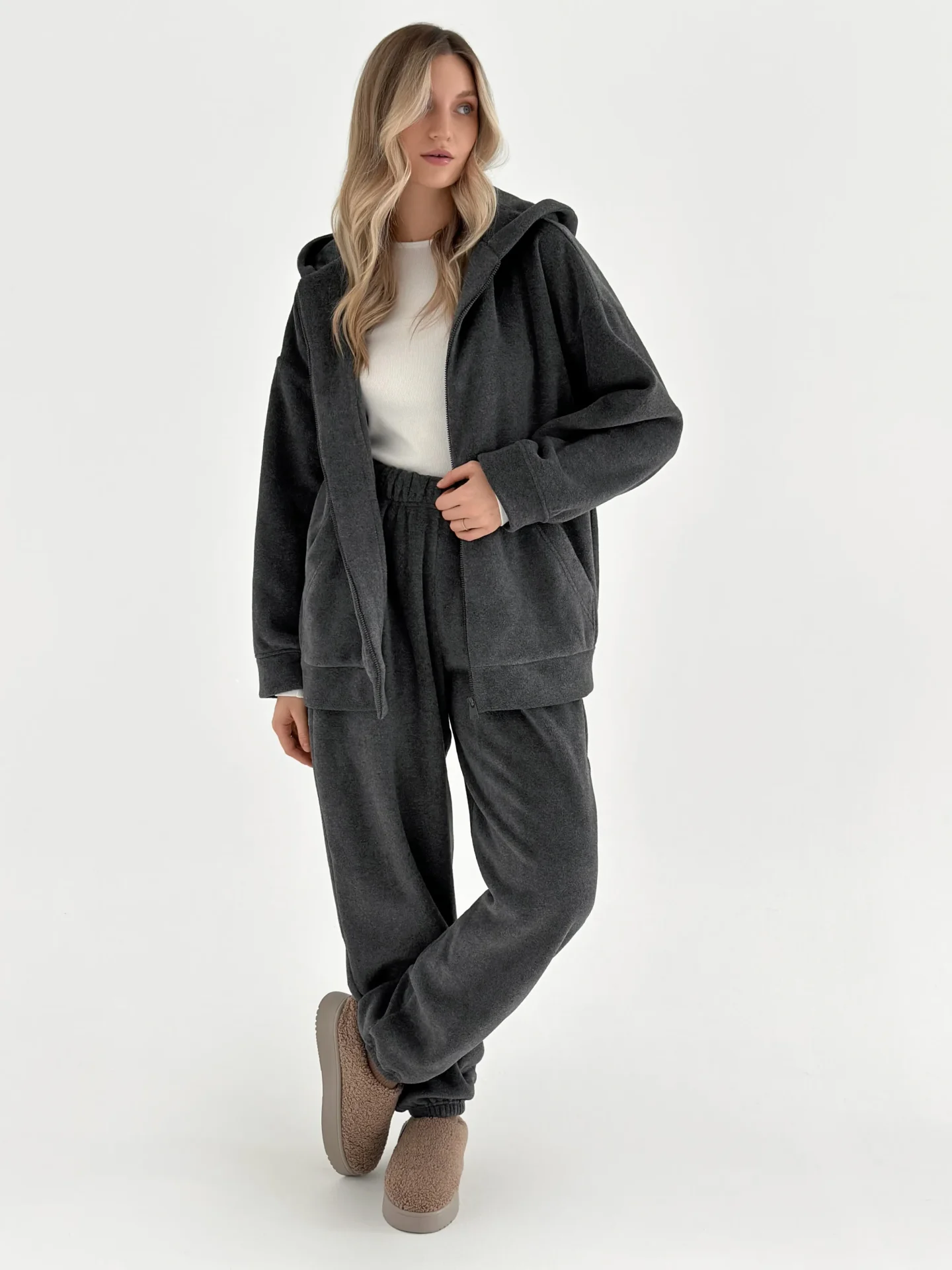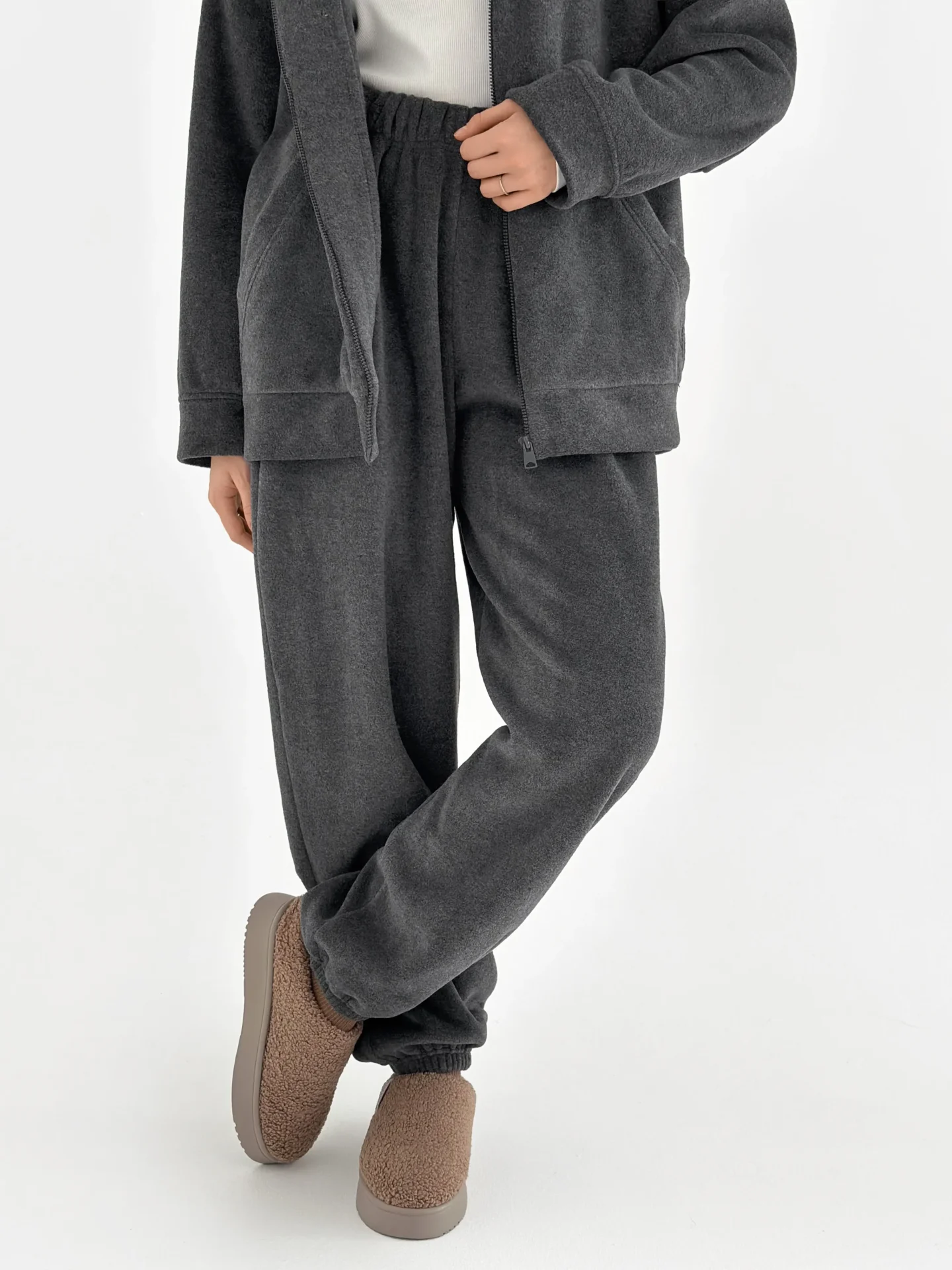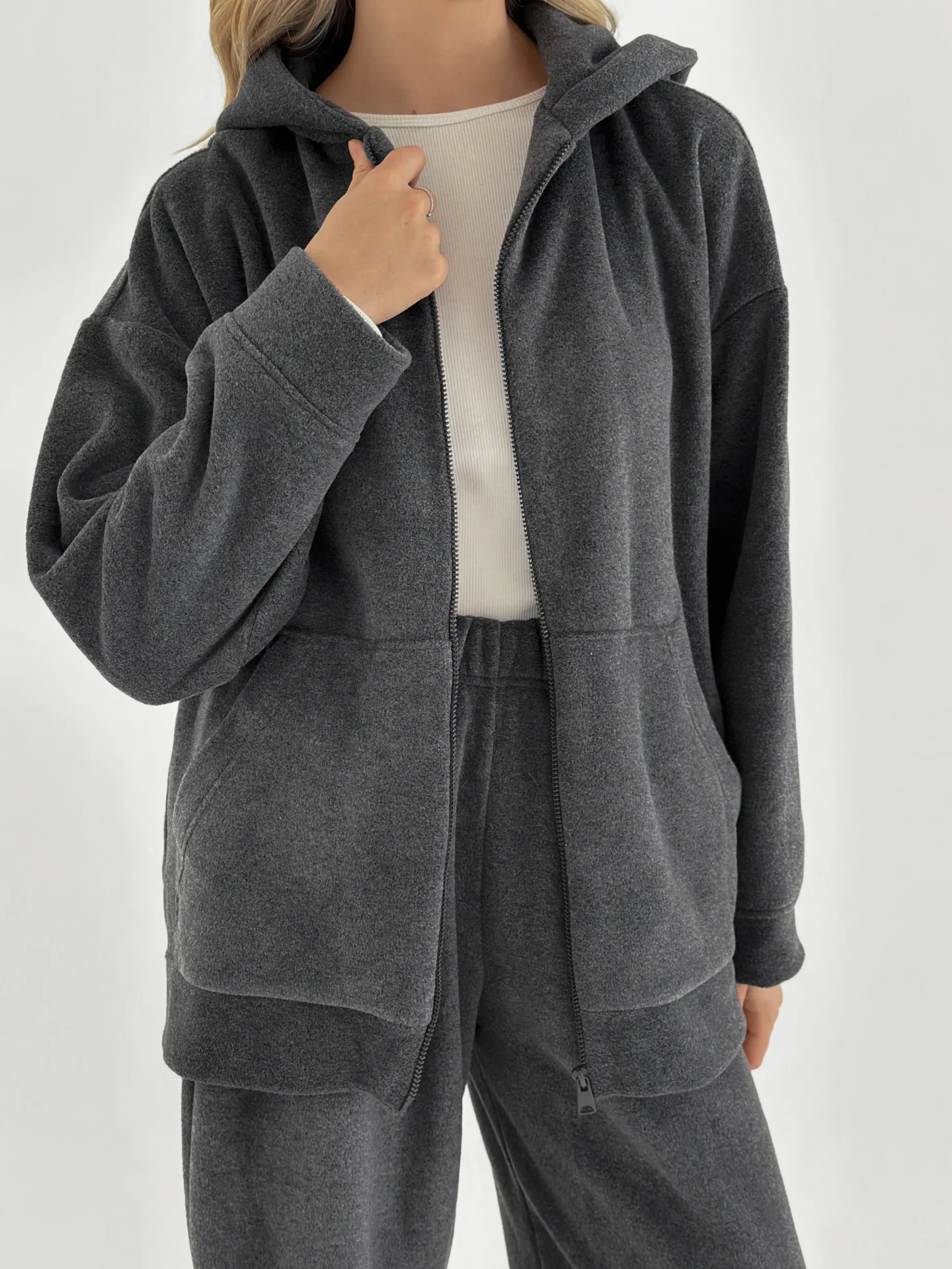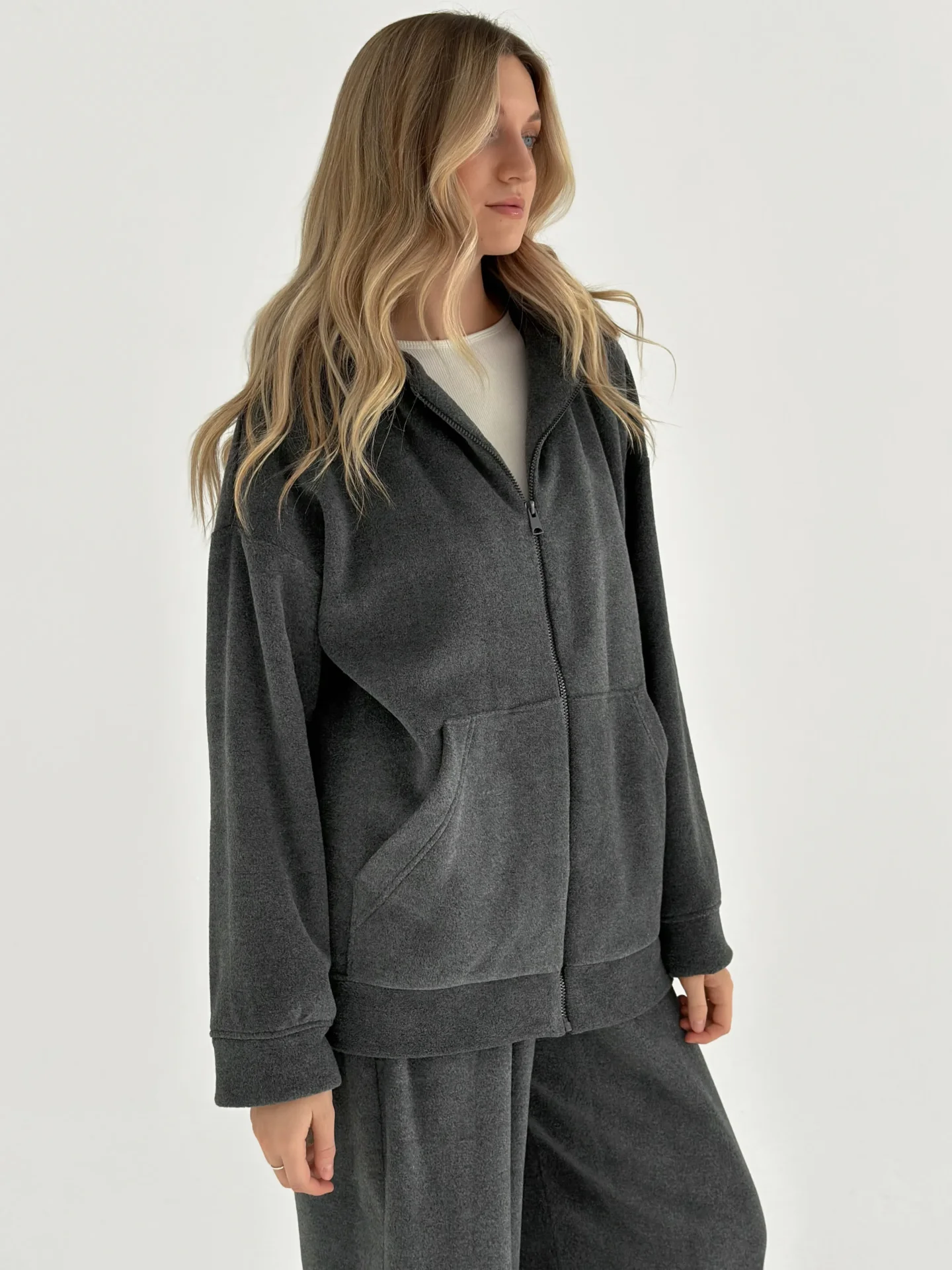 Komplet bluza i spodnie proste, z polaru, grafitowy