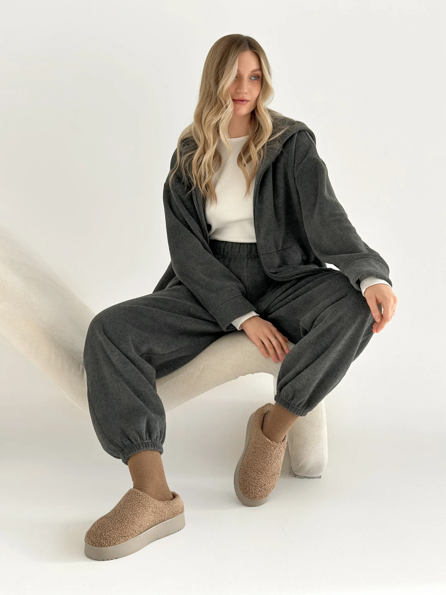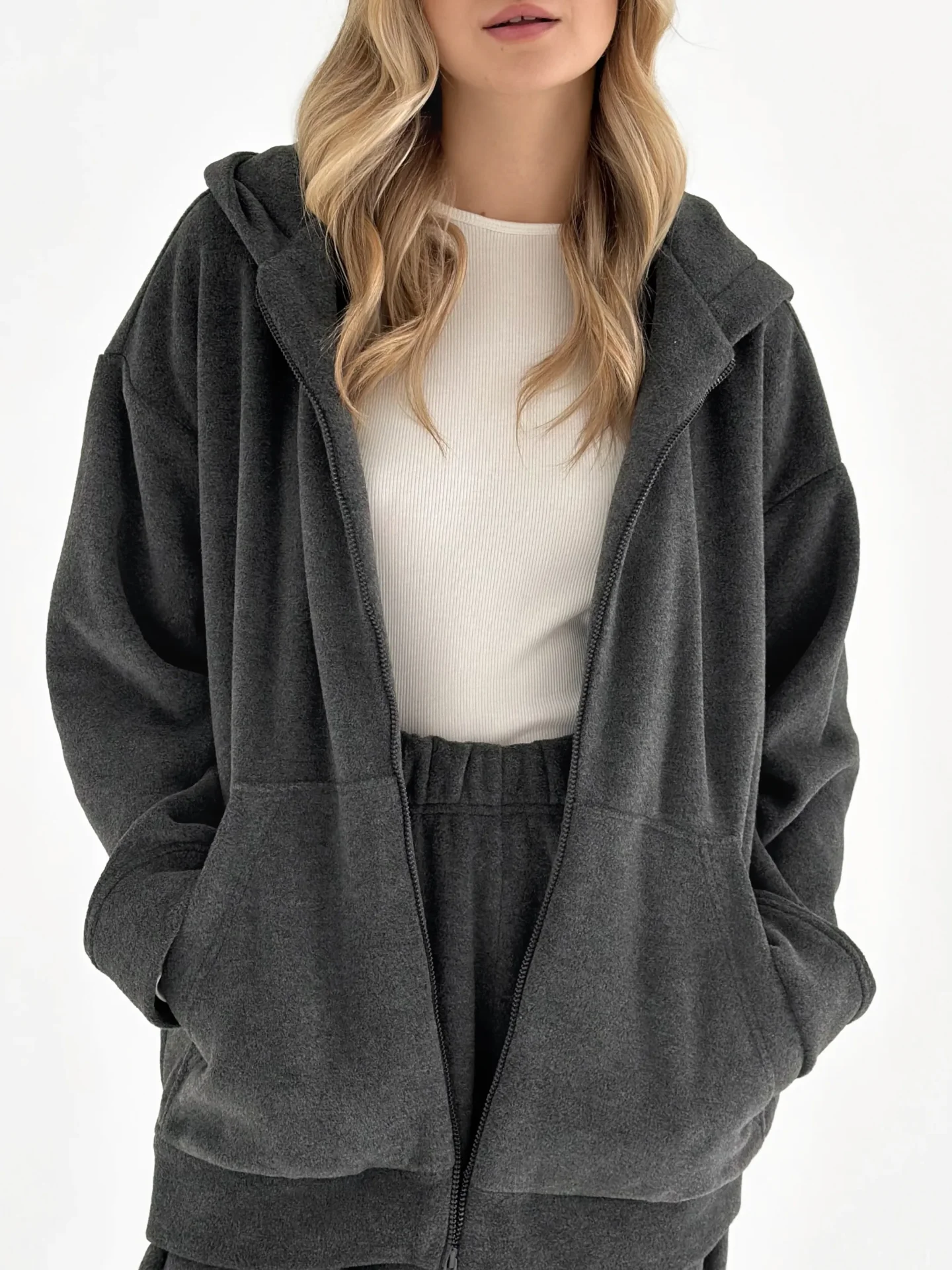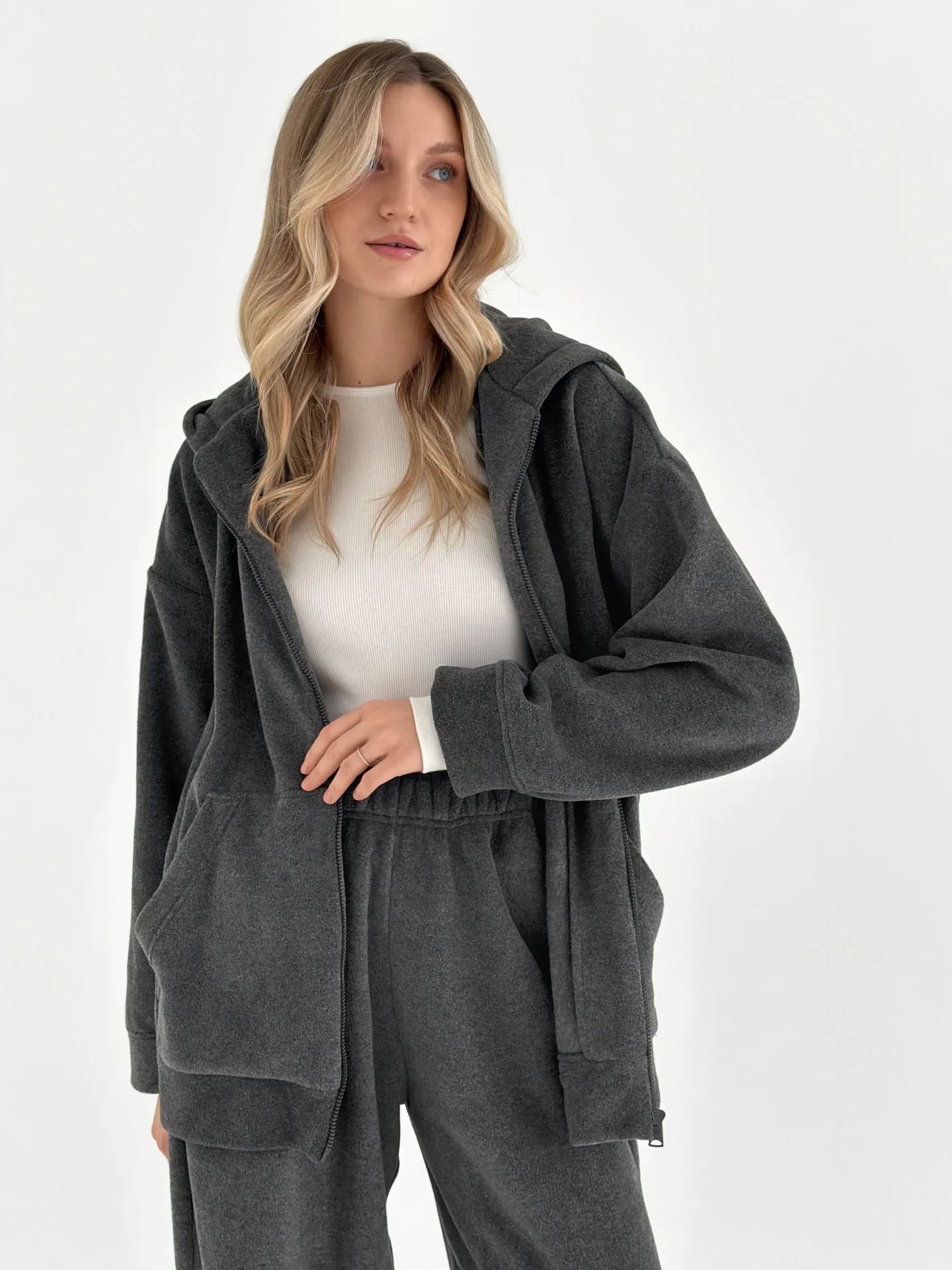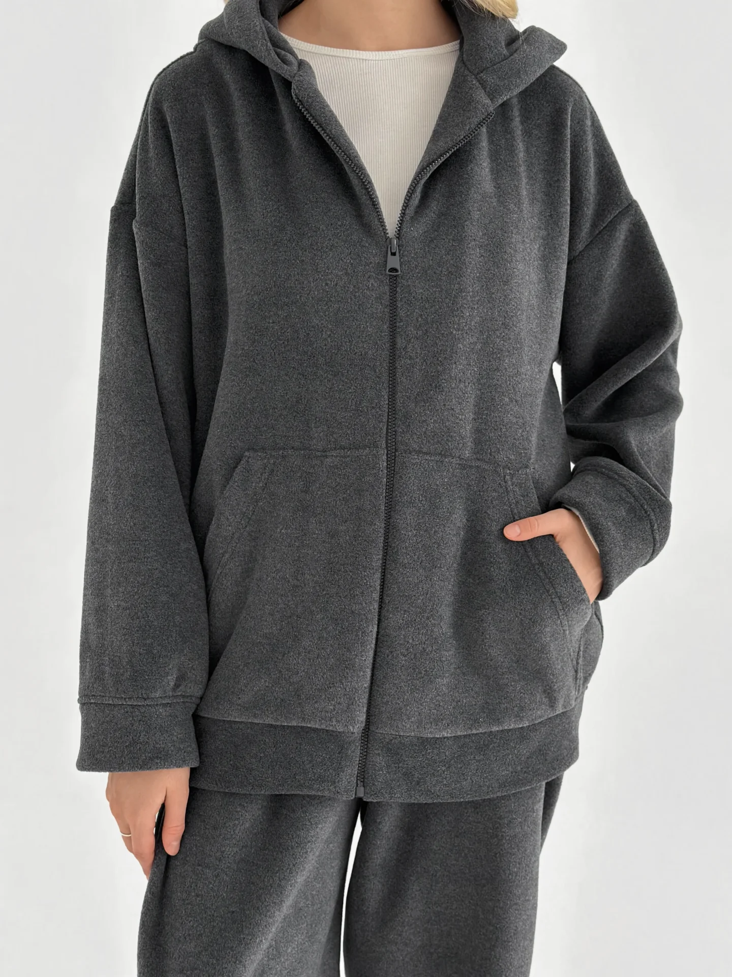 Komplet bluza i spodnie proste, z polaru, grafitowy