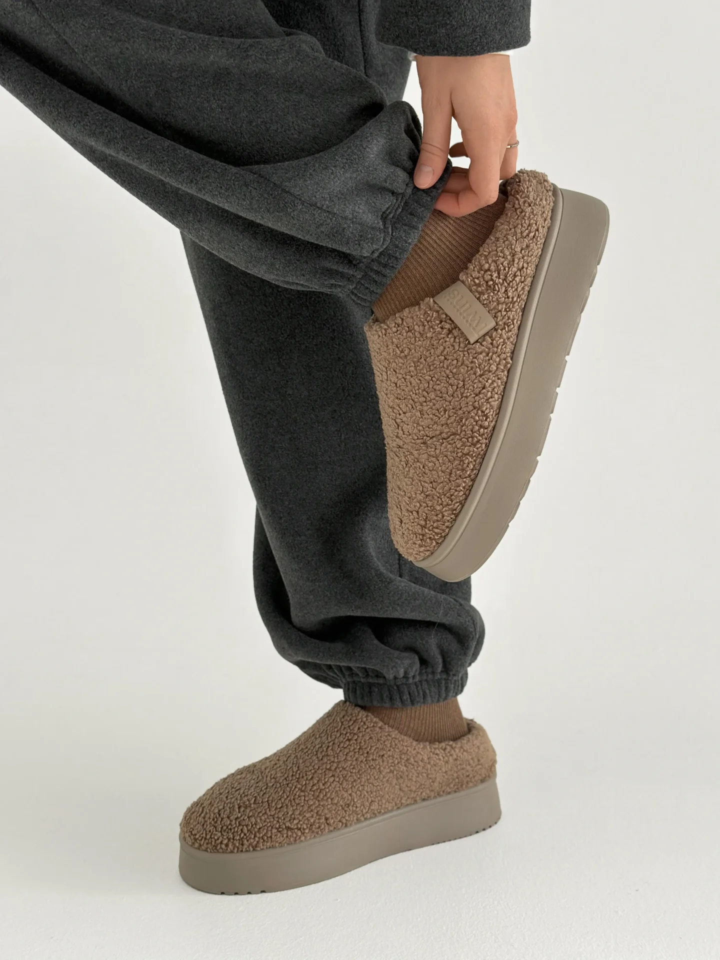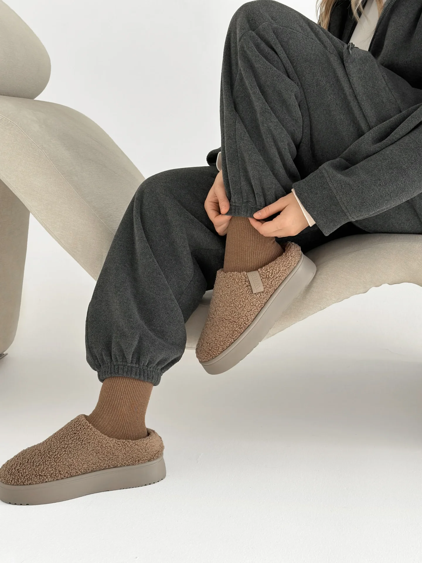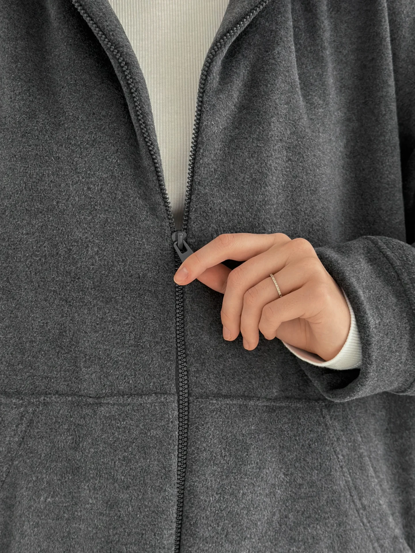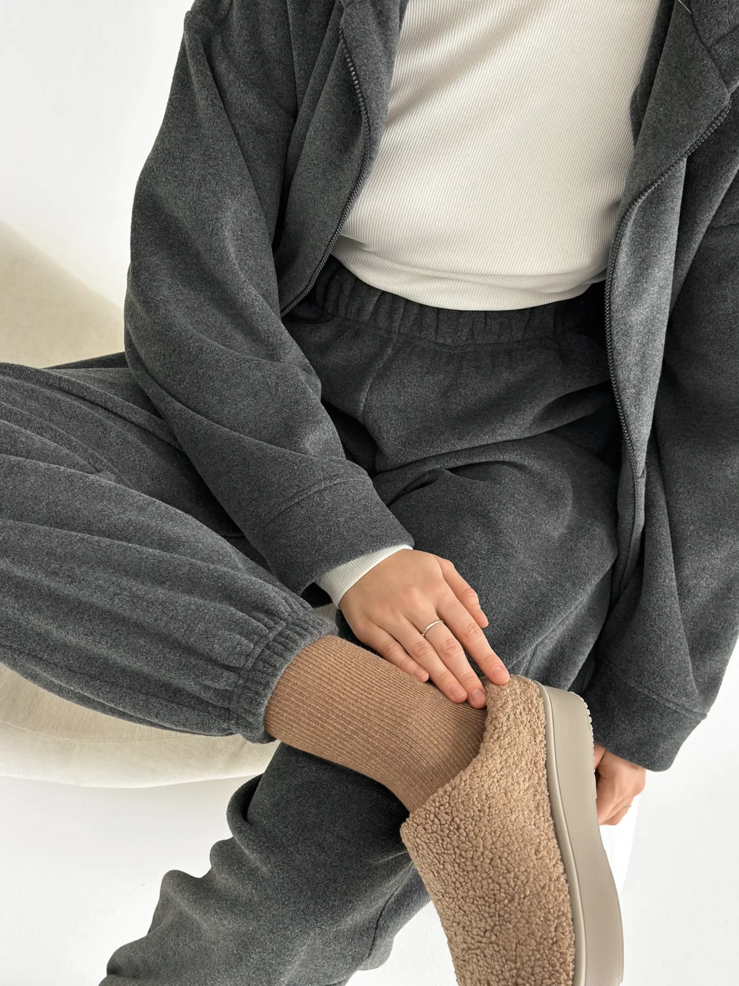 Komplet bluza i spodnie proste, z polaru, grafitowy