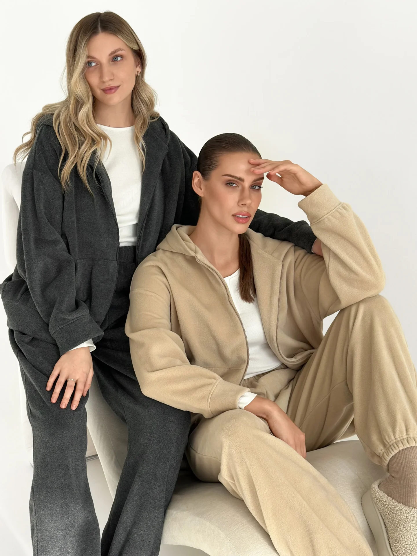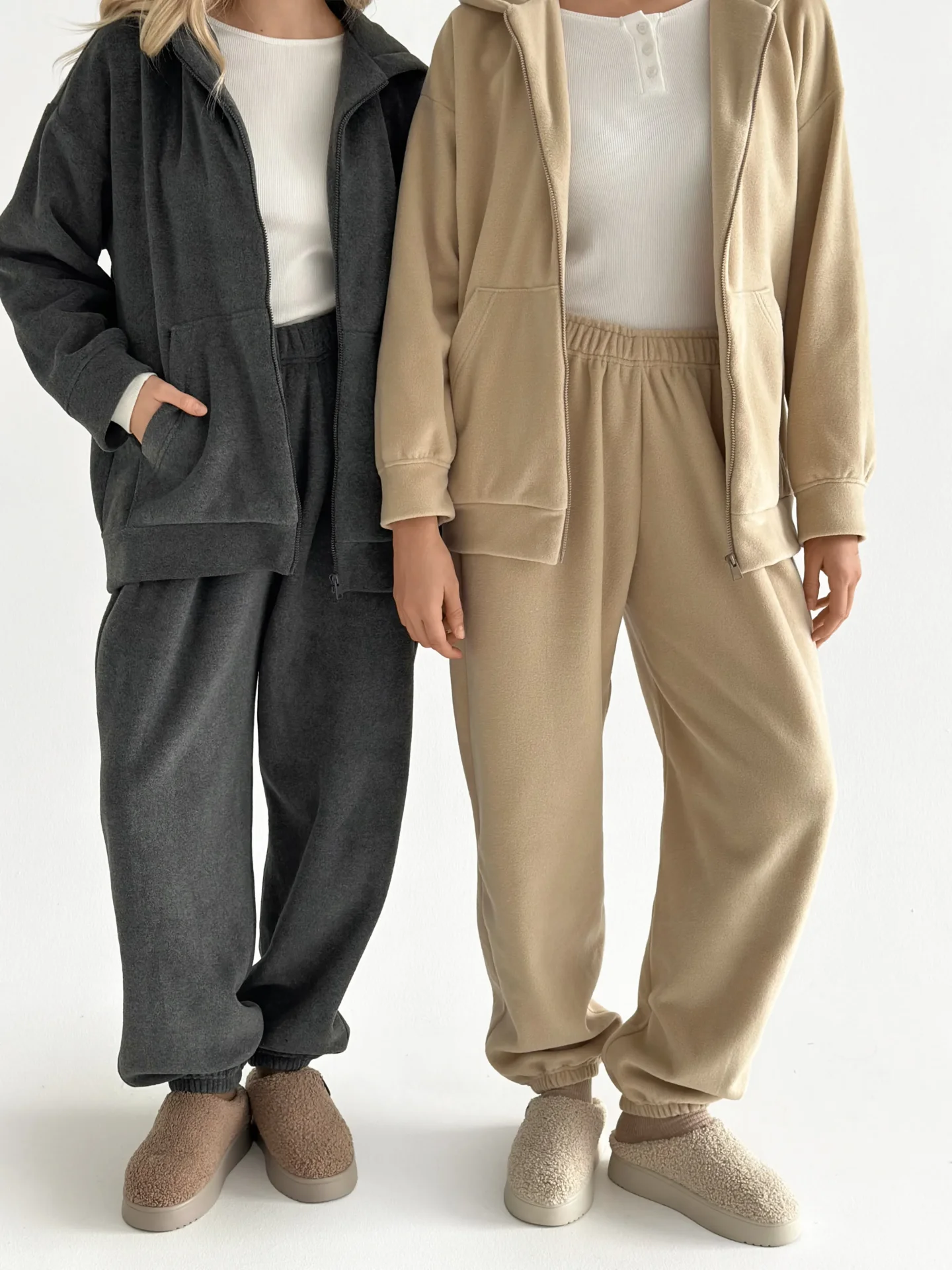 Komplet z bluzy i spodni z polaru fleece stworzony dla ciepła i przytulności w chłodniejsze dni. Miękki i przyjemny w dotyku materiał zapewnia komfort noszenia. Idealny do domu i na odpoczynek.