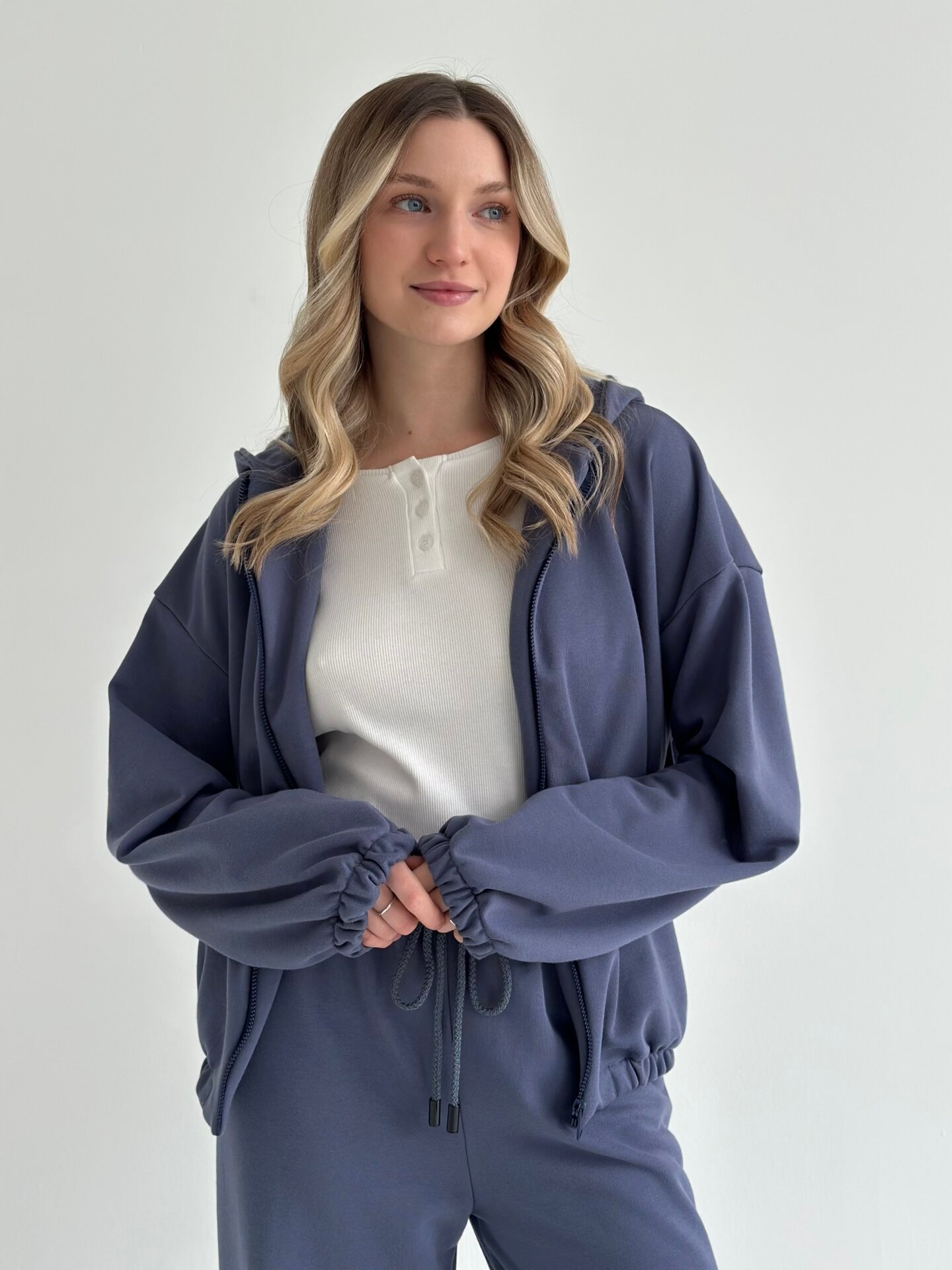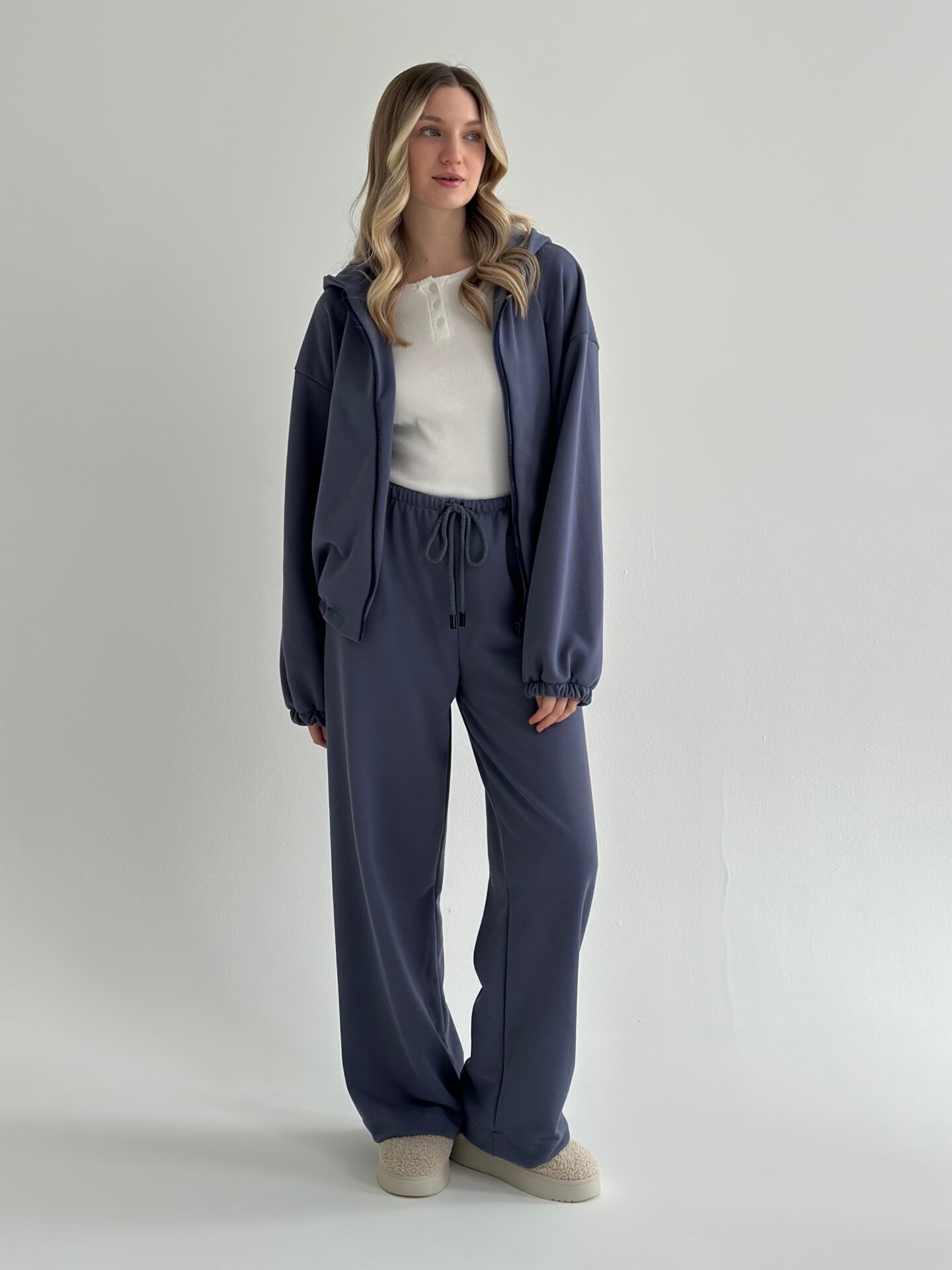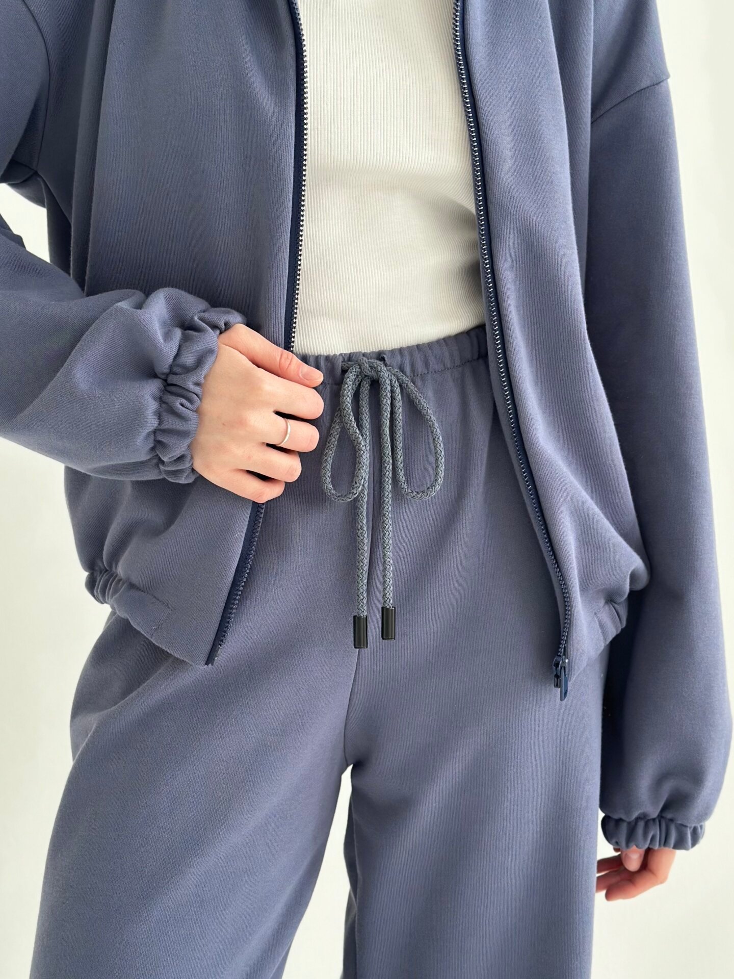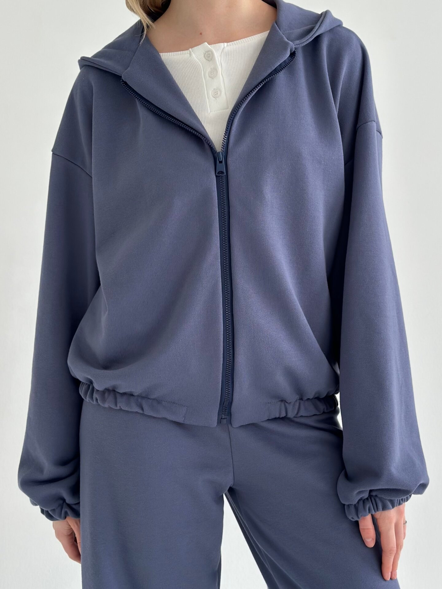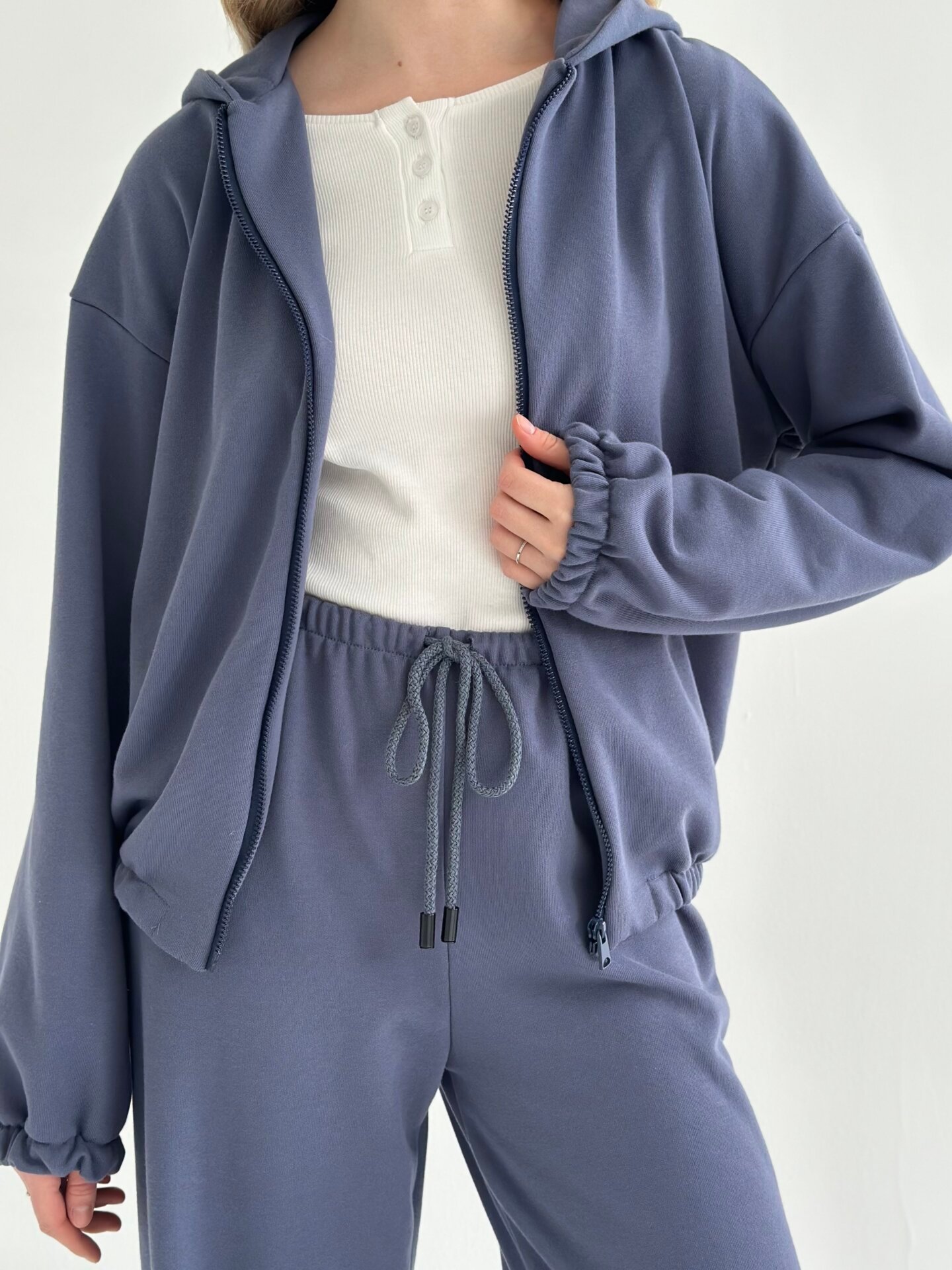 Komplet bluza i spodnie, z dzianiny 2‑nitkowej, granatowy