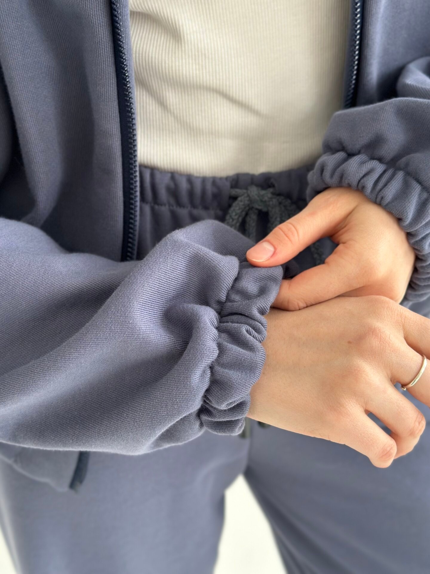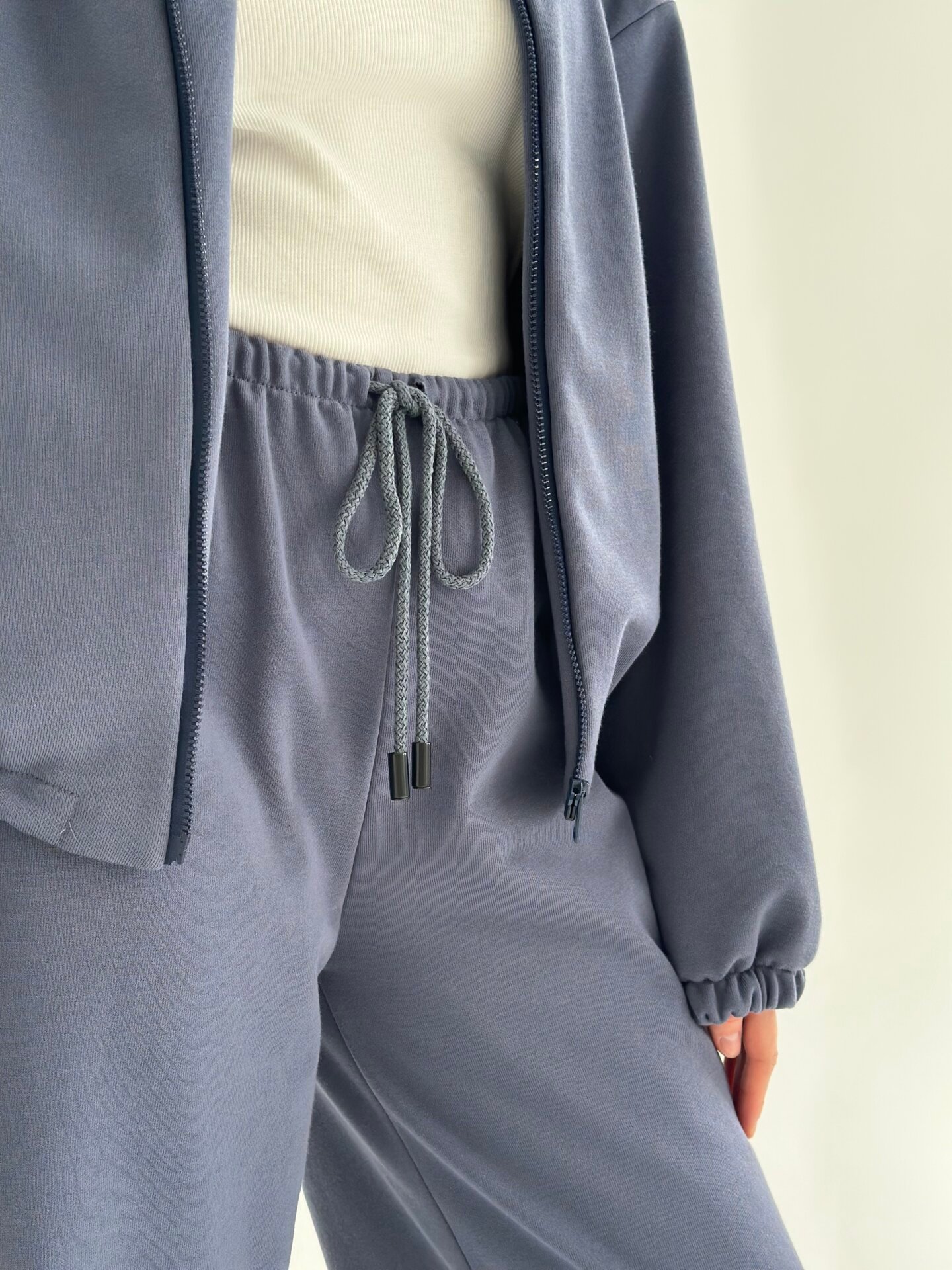 Komplet z bluzy i spodni z polaru fleece stworzony został z myślą o cieple i przytulności w chłodniejsze dni. Miękki i przyjemny w dotyku materiał zapewnia komfort noszenia. Idealny do domu i wypoczynku.