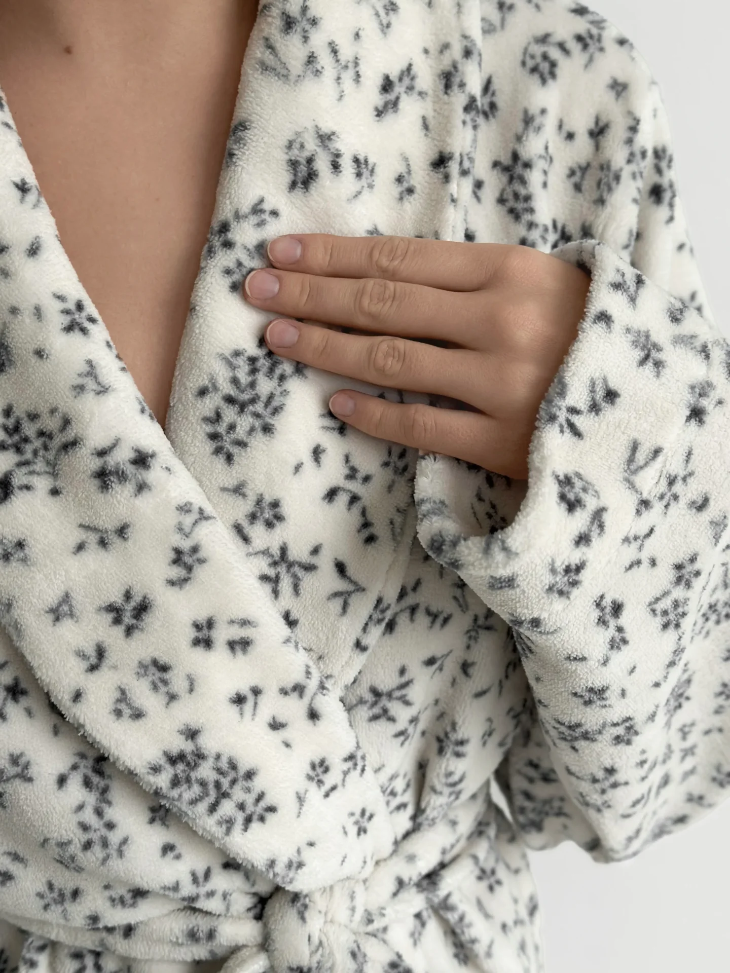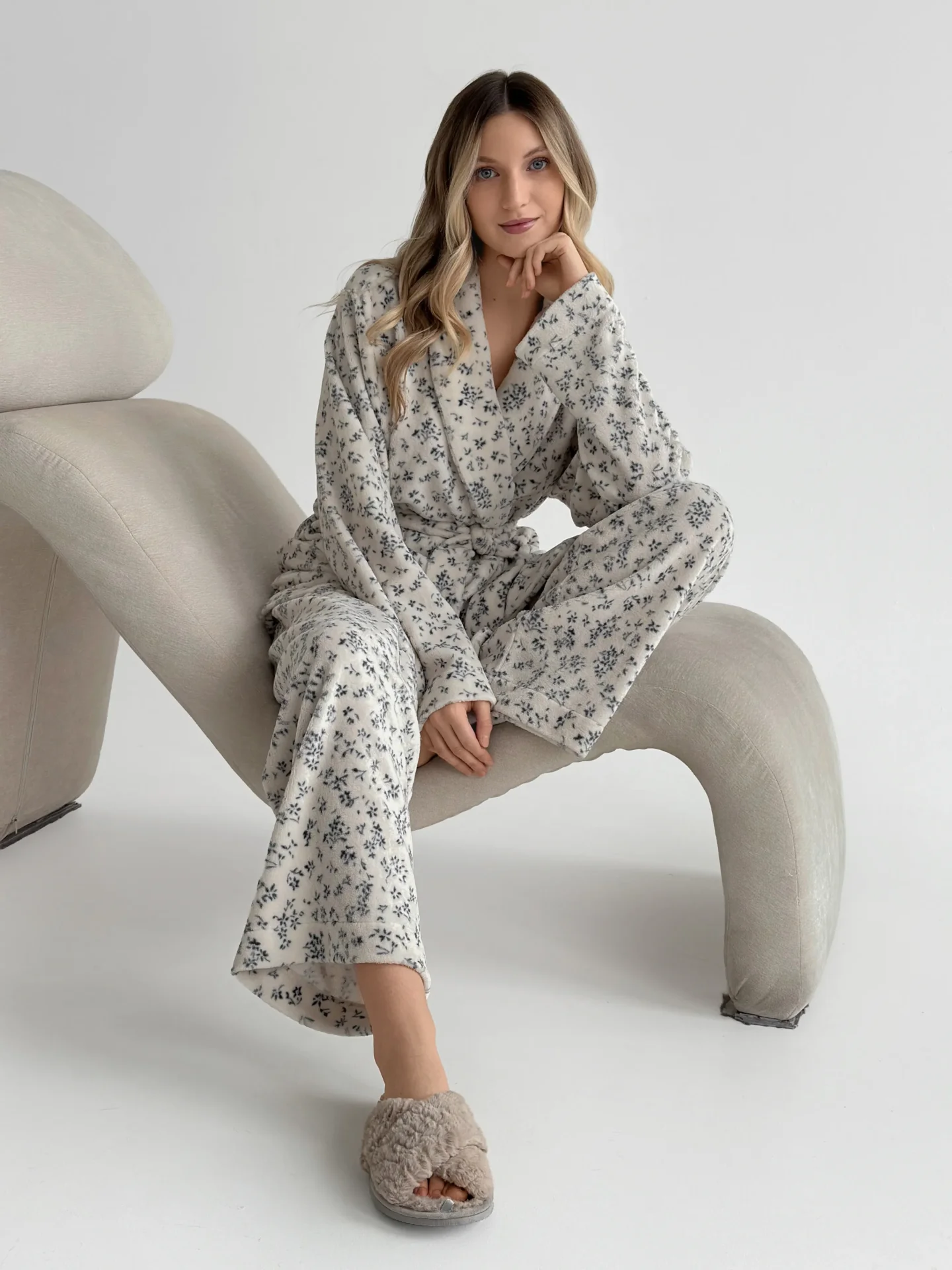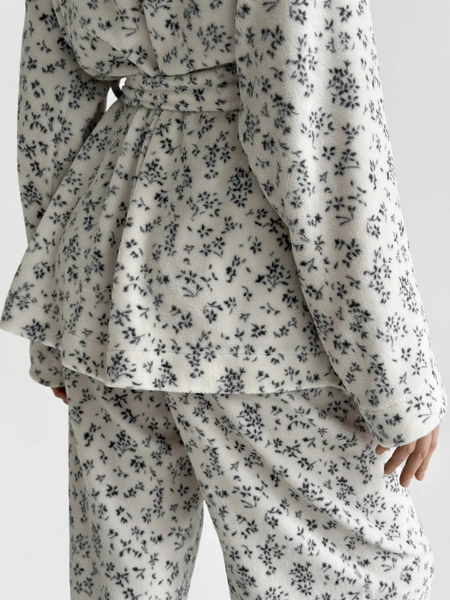 Ten welurowy komplet to połączenie komfortu i lekkości. Miękki, przytulny — taki, który chce się nosić przez cały dzień. Bluza kopertowa dodaje odrobiny uroku, a spodnie układają się swobodnie i naturalnie. To wybór, w którym ubranie nie tylko zapewnia wygodę, ale także tworzy nastrój.