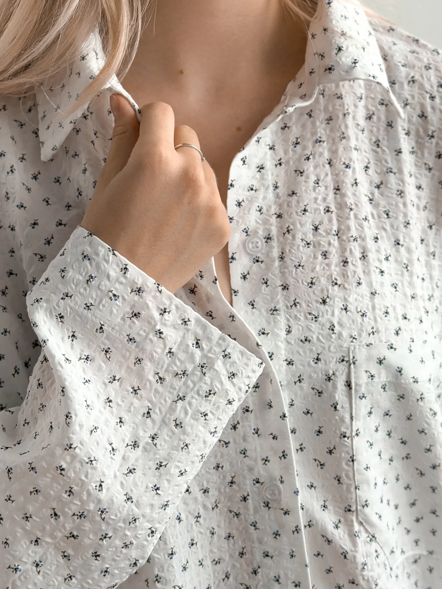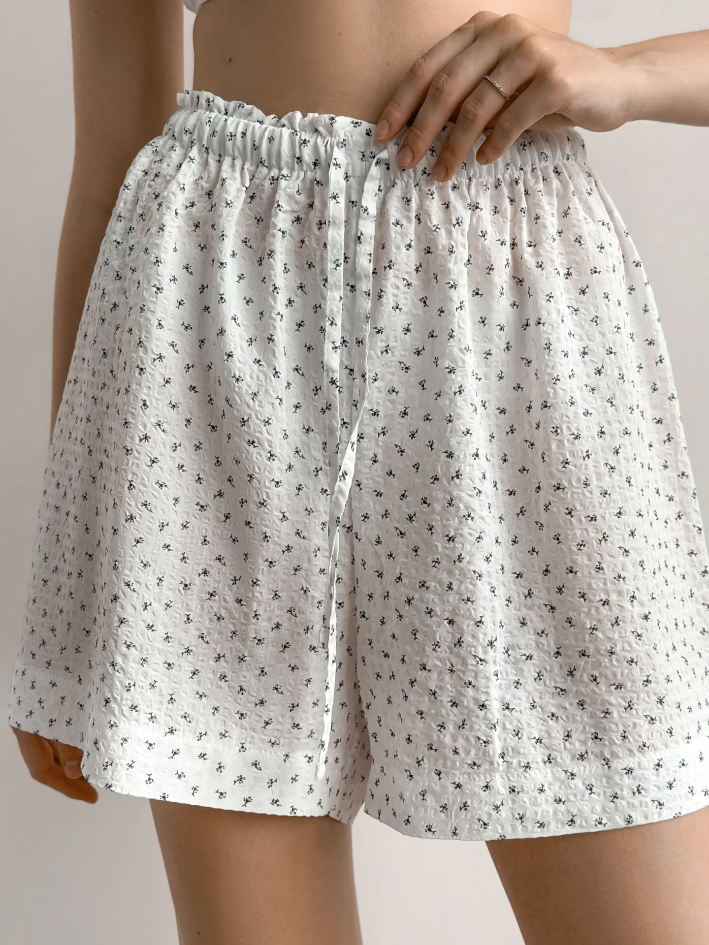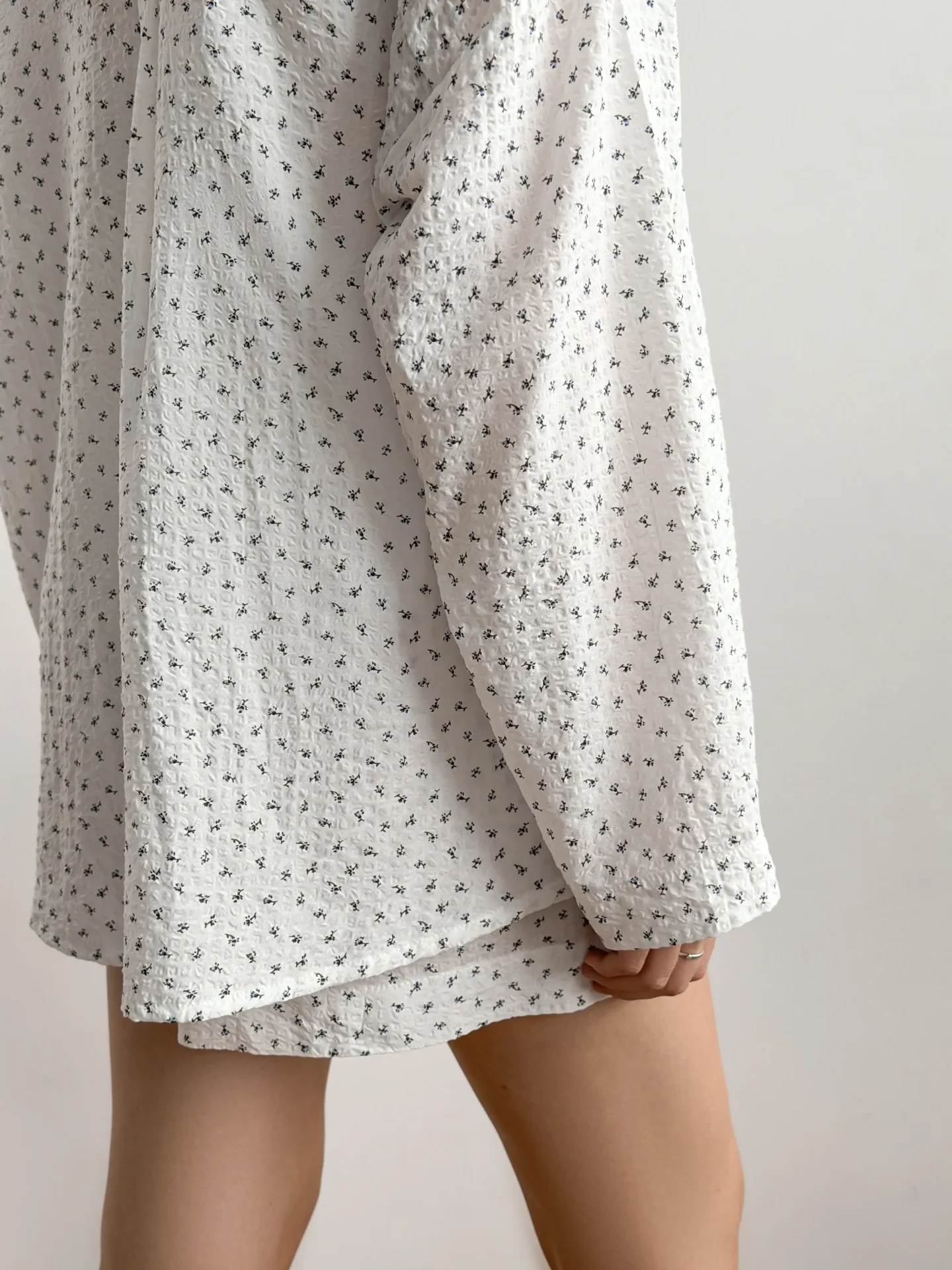 Komplet koszula i szorty, z batystu kreszowanego, biały w granatowe kwiatki