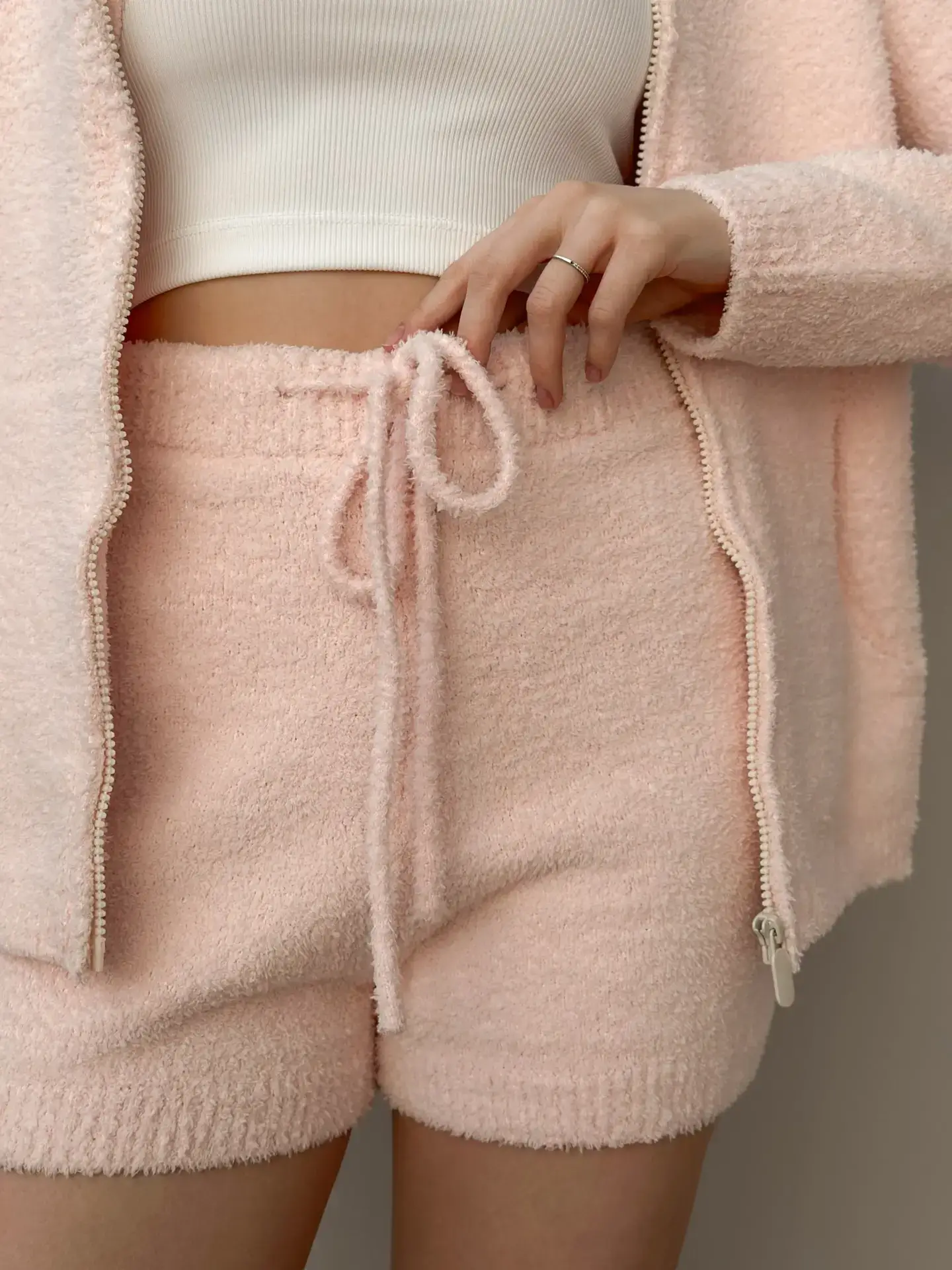 Komplet Soft bluza na zamek i szorty, z dzianiny puszystej, pudrowy