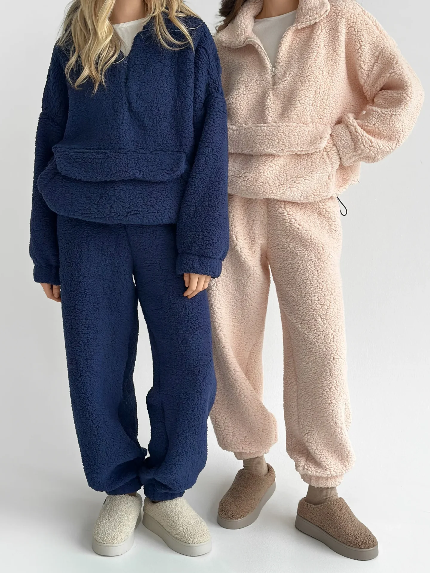 Komplet Teddy Soft to maksimum przytulności i stylu. Miękki, puszysty materiał zapewnia komfort i ciepło, idealnie nadając się na chłodniejsze dni. Modny krój i praktyczny zamek błyskawiczny czynią komplet uniwersalnym do domu i na spacery.