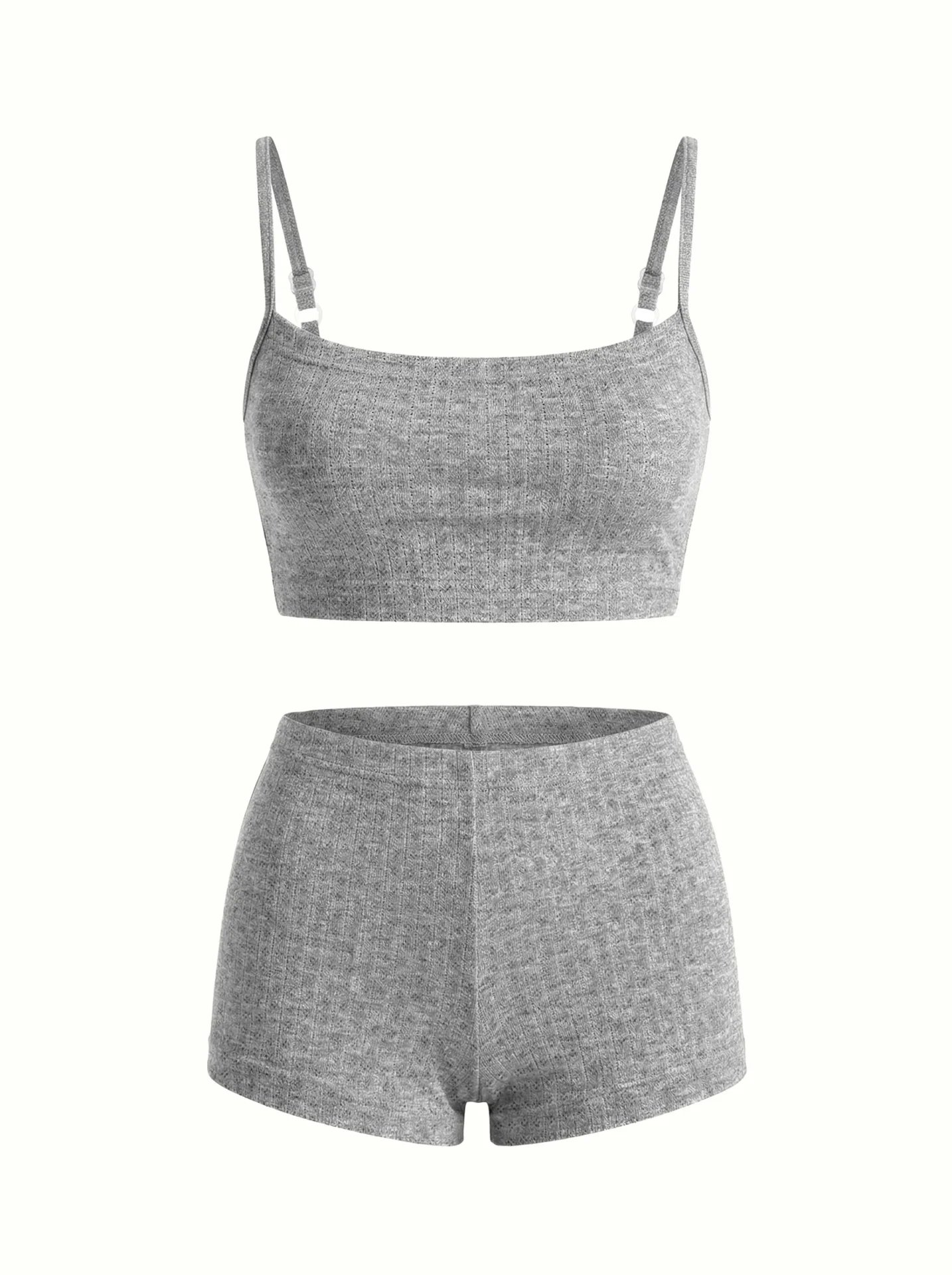 Komplet top mini na ramiączkach i szorty mini, z ribany prążkowanej, antracytowy