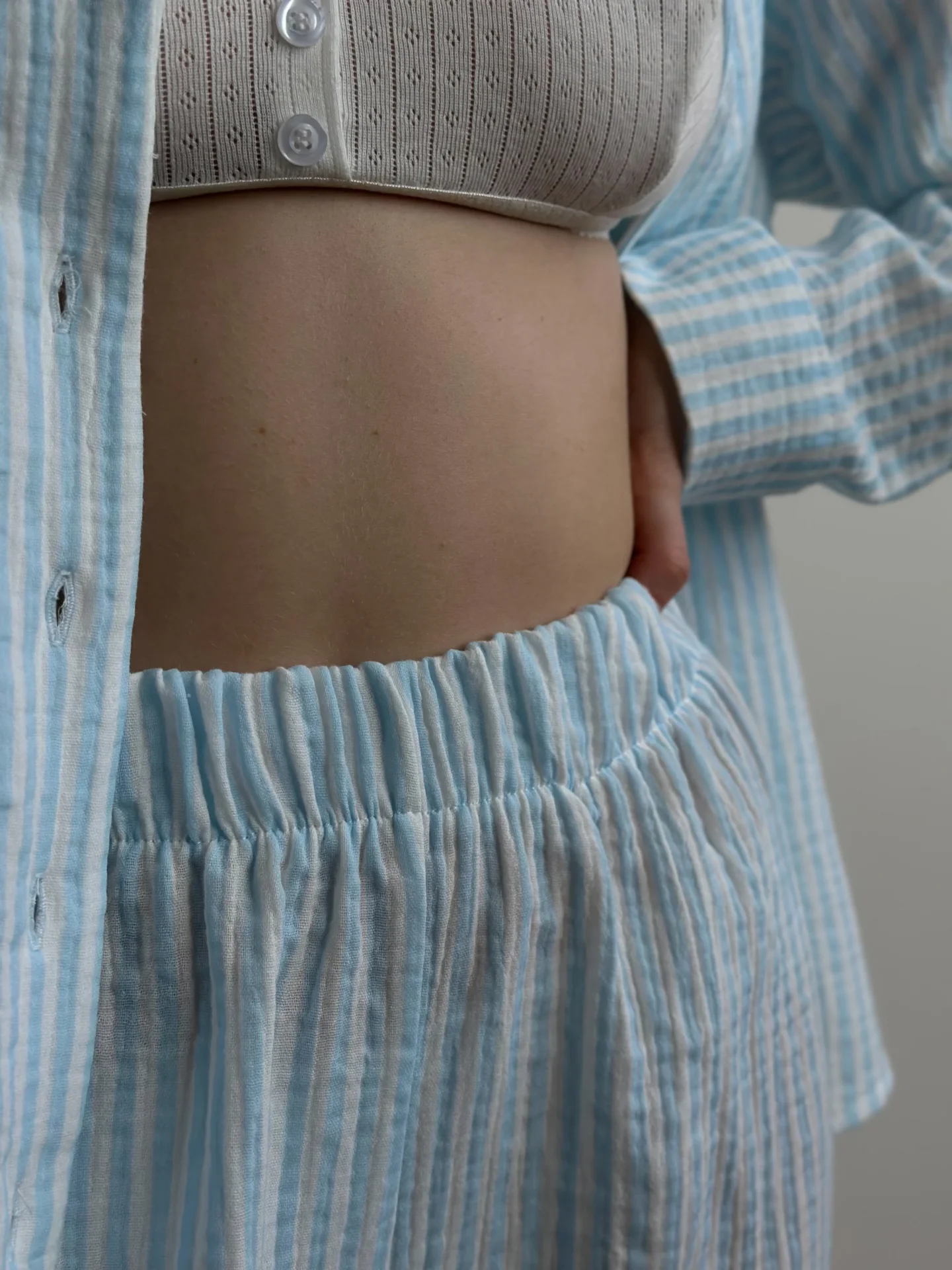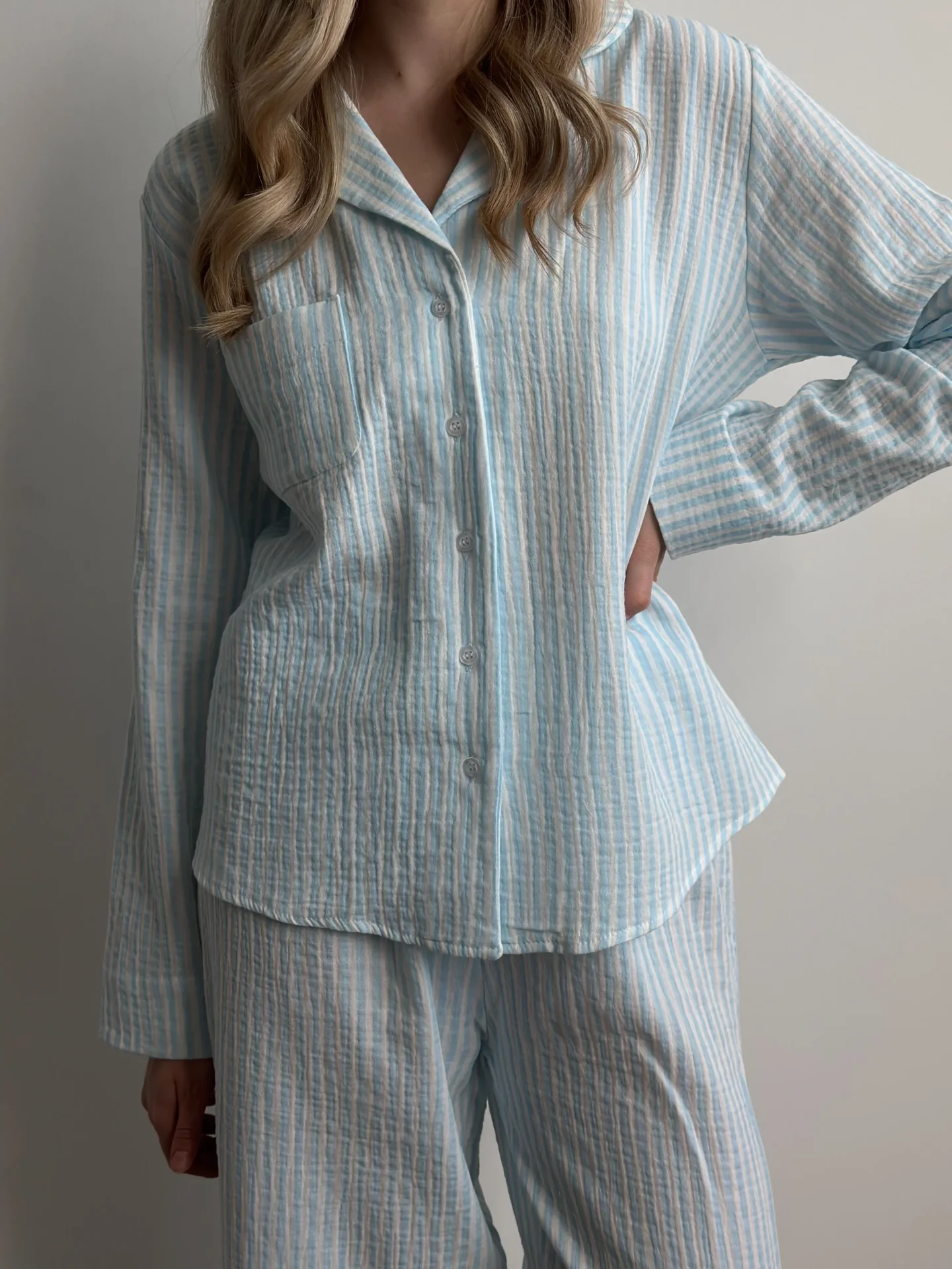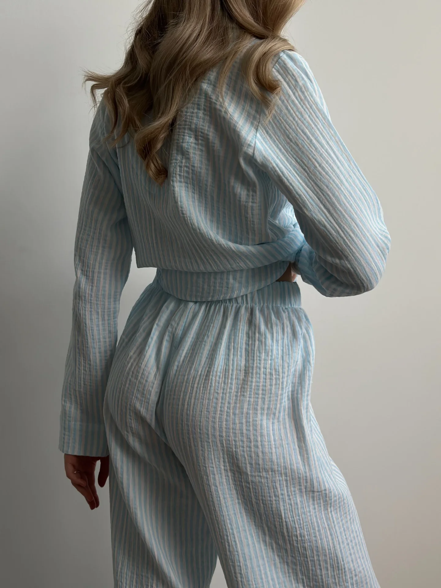 Komplet koszula i spodnie, z muślinu, w niebieskie paski