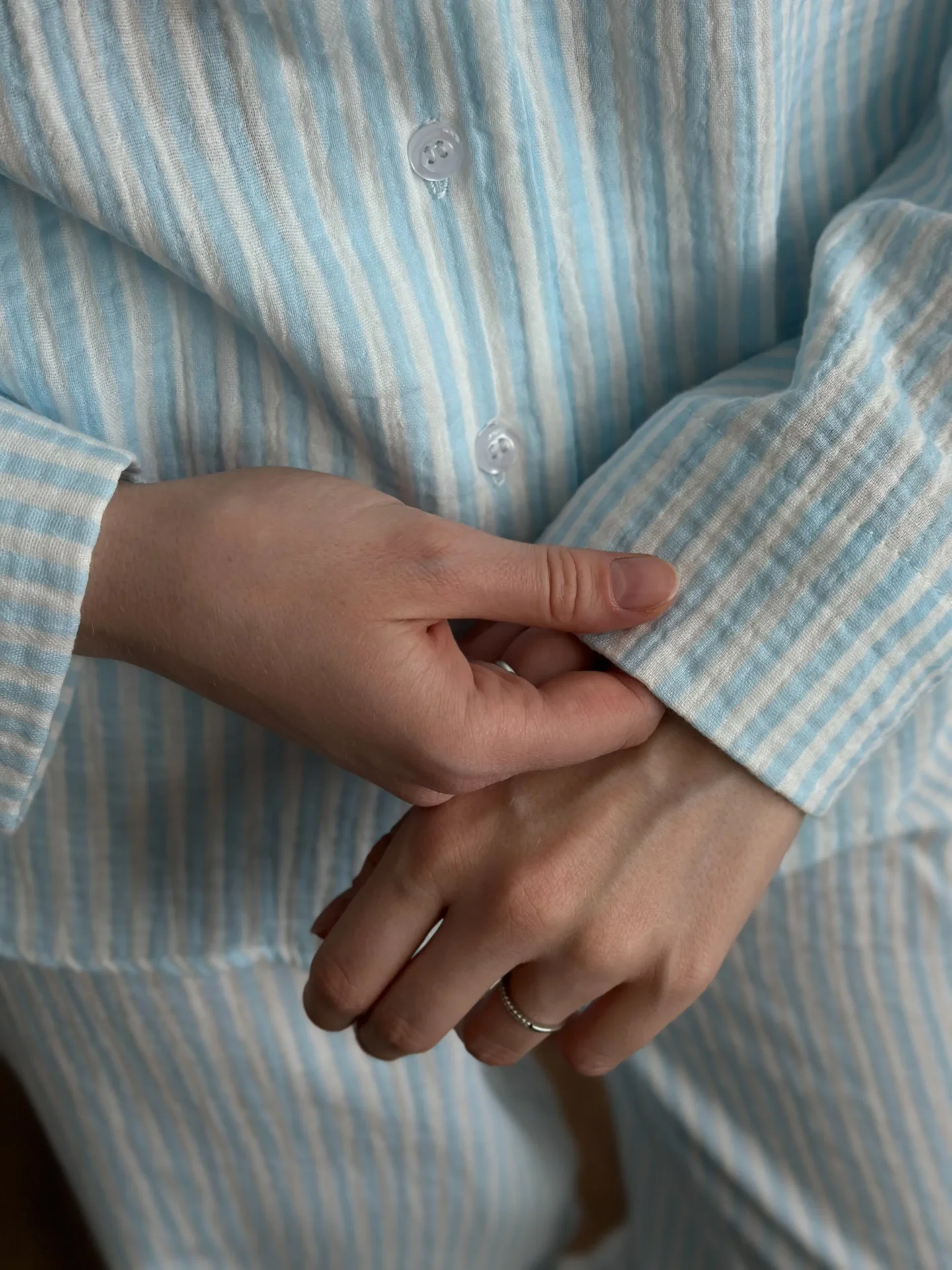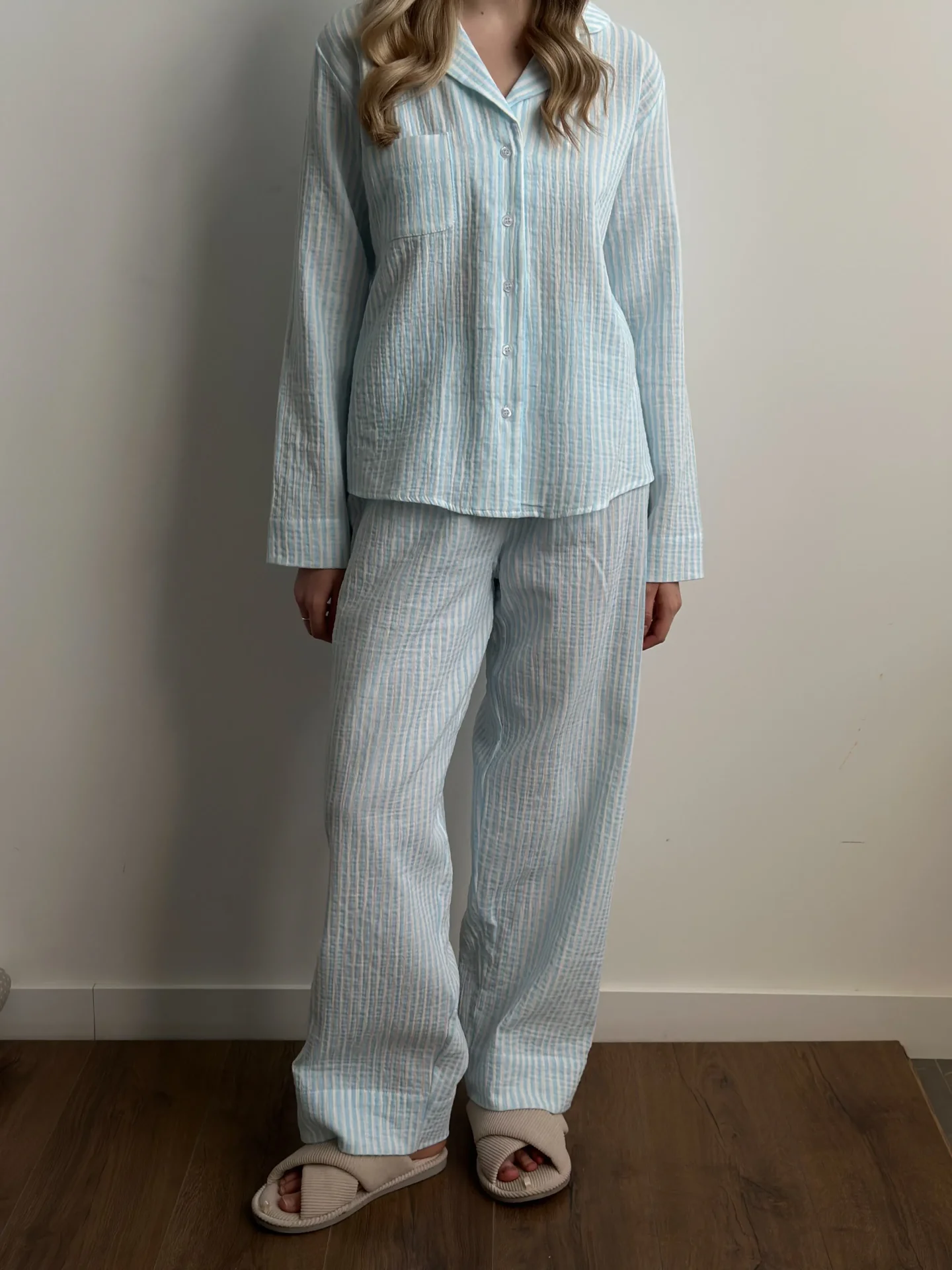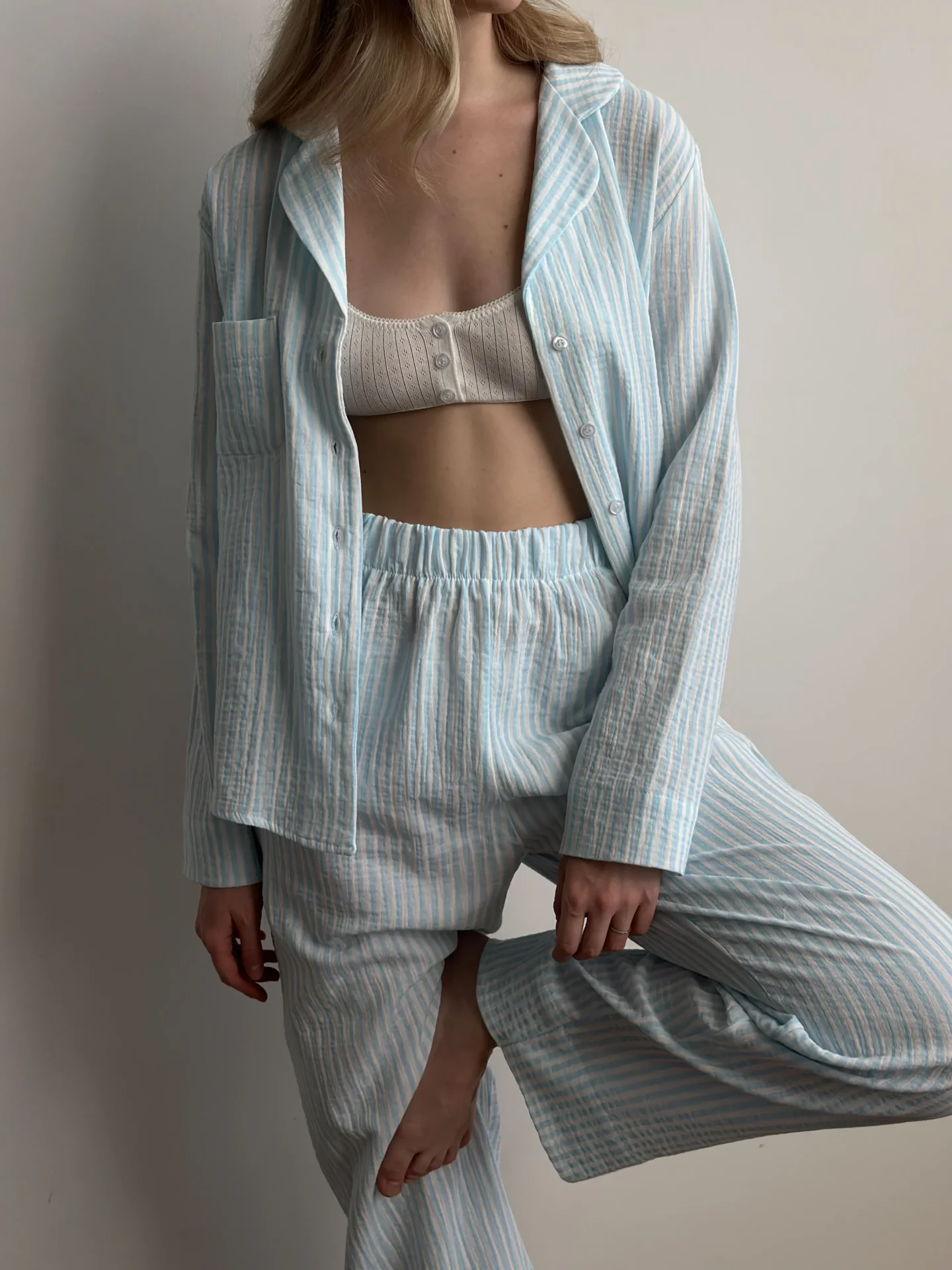 Komplet koszula i spodnie, z muślinu, w niebieskie paski