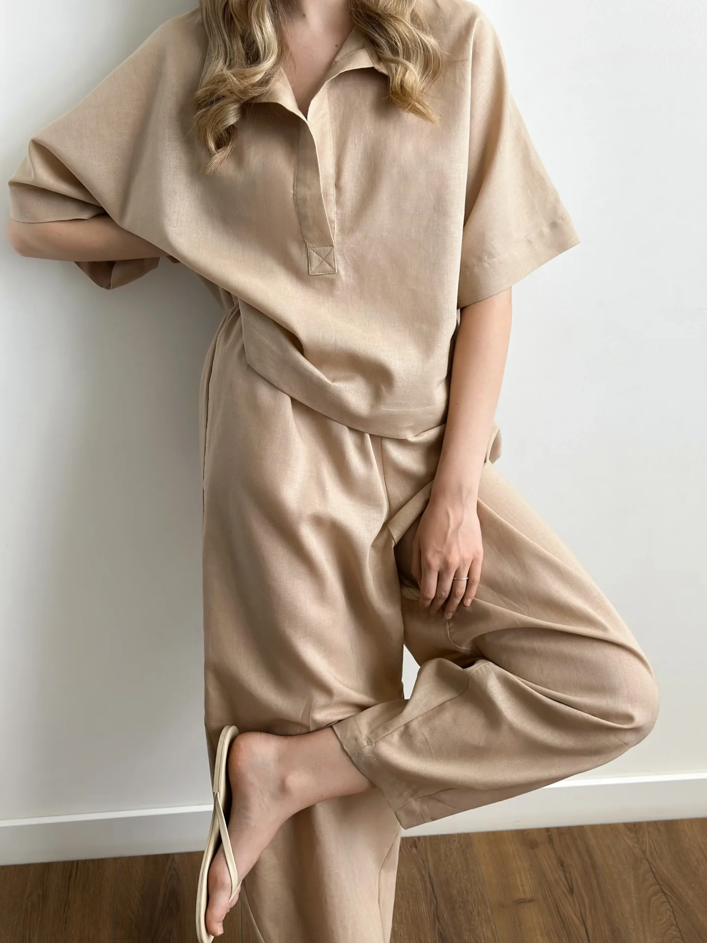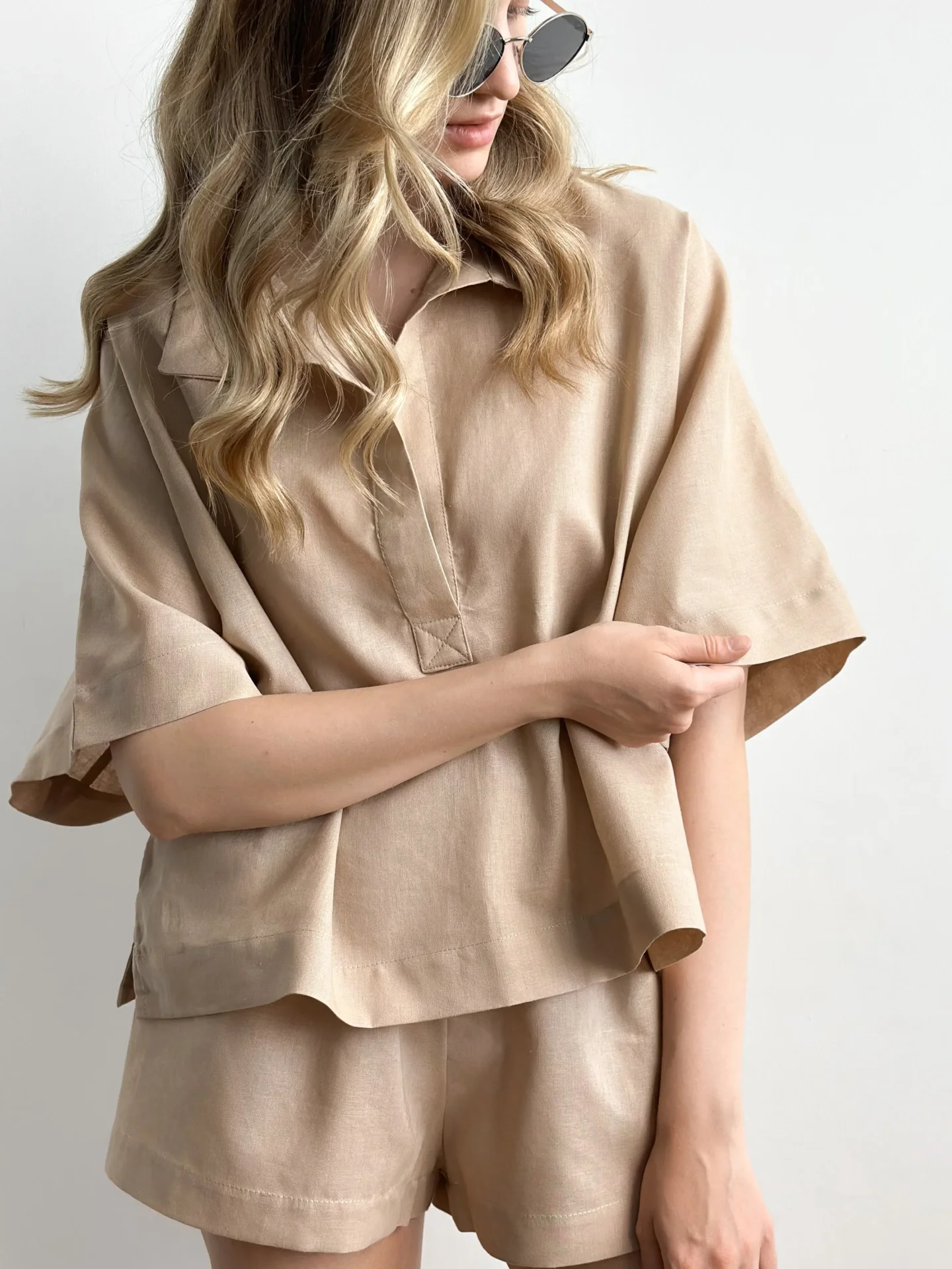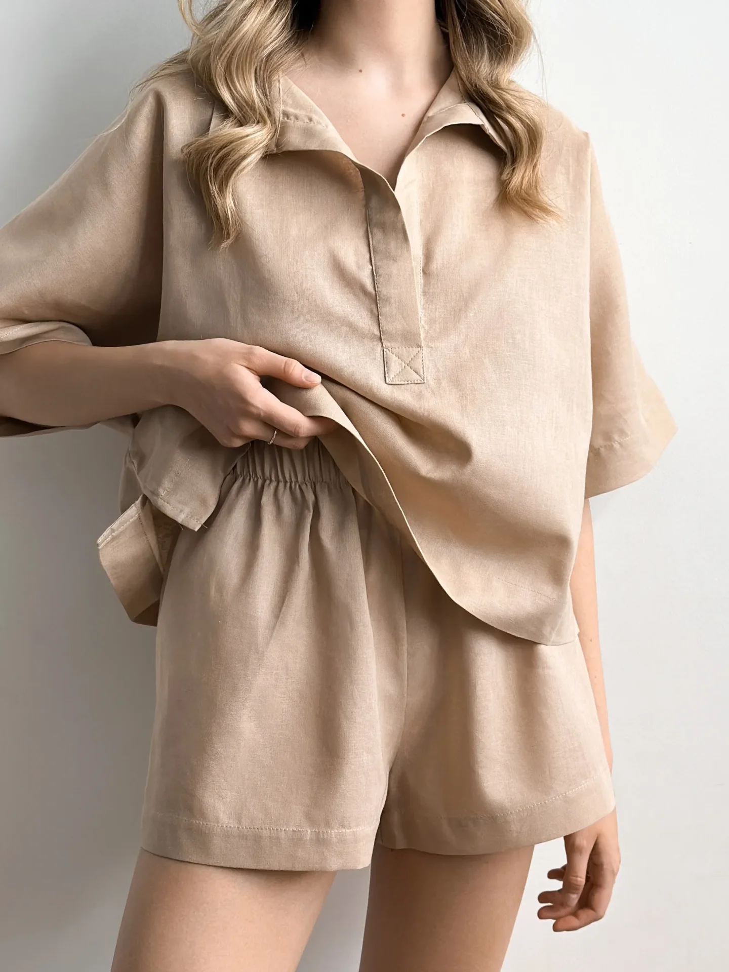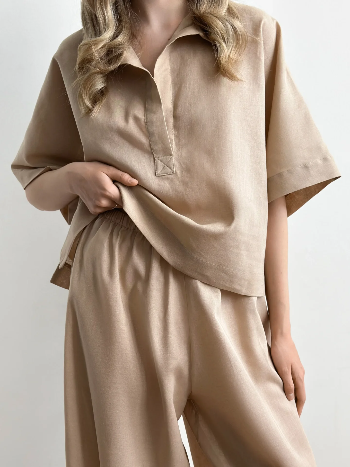Koszula Polo z naturalnego lnu łączy klasyczny krój z nowoczesną prostotą. Len zapewnia komfort w ciepłe dni dzięki swojej przewiewnej strukturze i przyjemnemu w dotyku materiałowi. Kołnierzyk dodaje stylizacji schludności, a luźny fason nie krępuje ruchów. Idealna do codziennych letnich stylizacji, spacerów i odpoczynku.