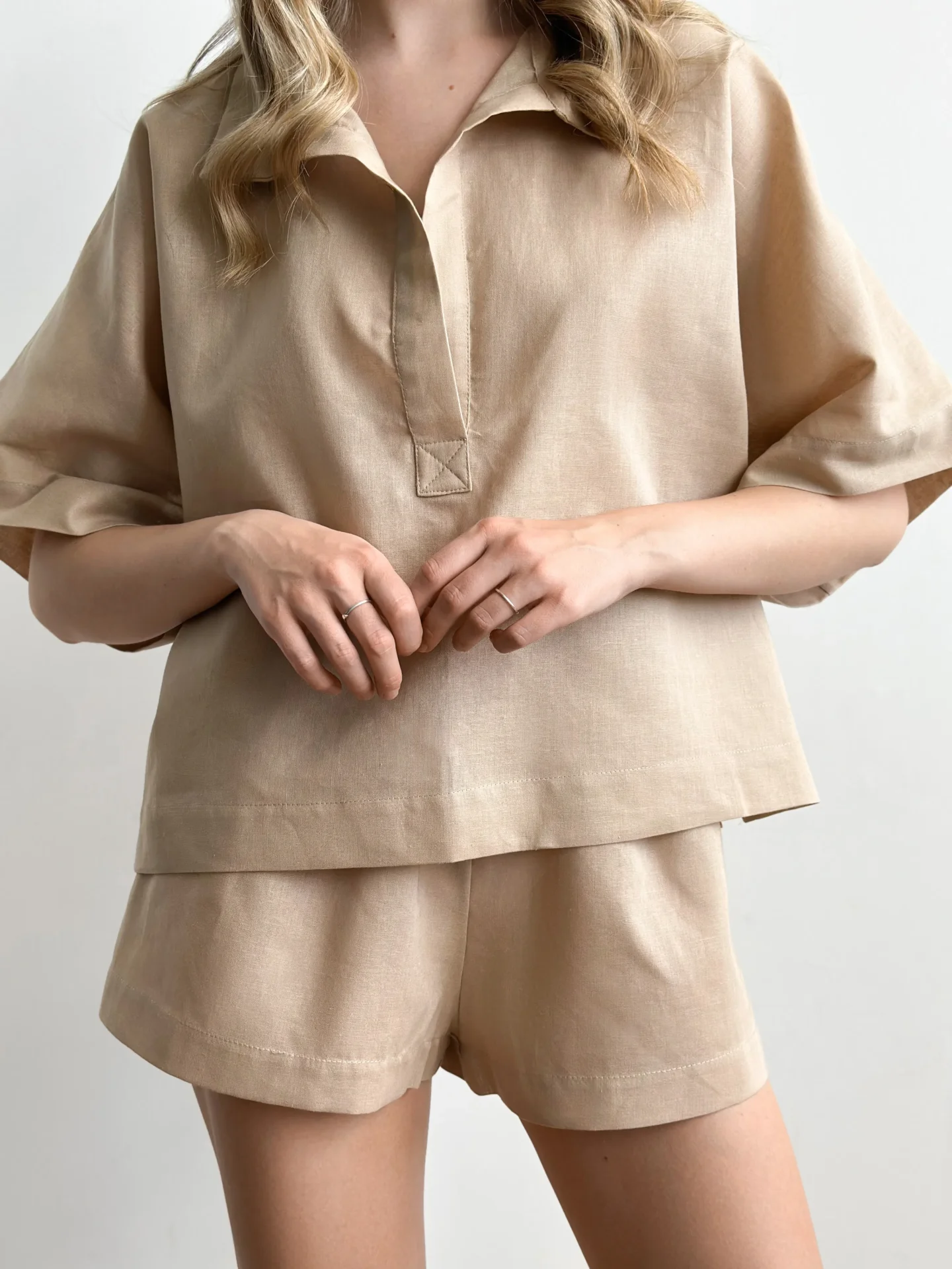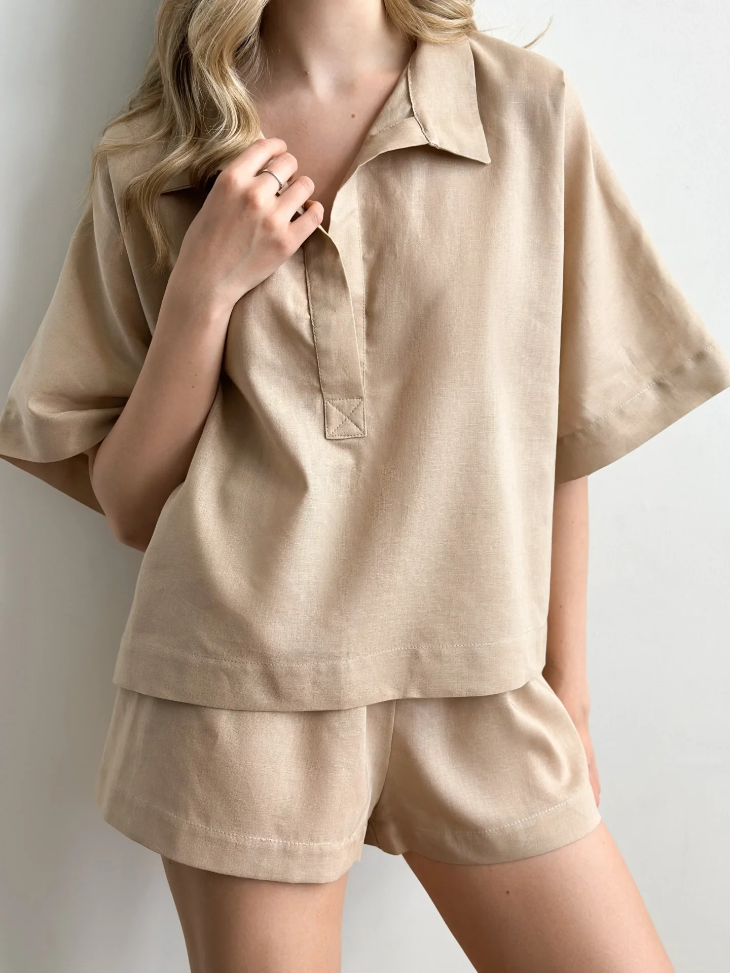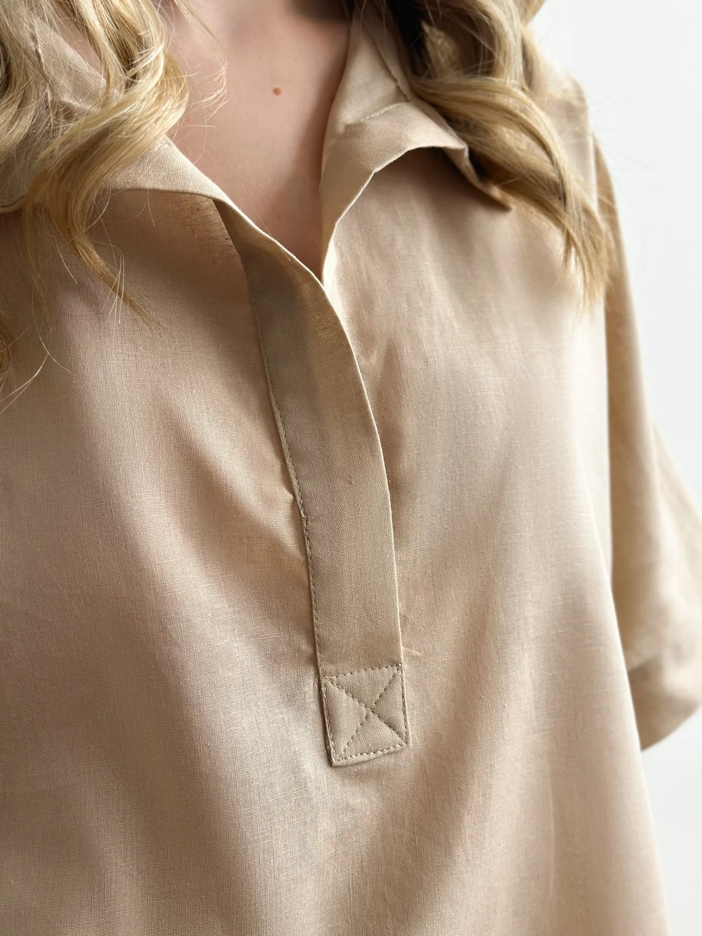 Koszula Polo z lnu, beżowa
