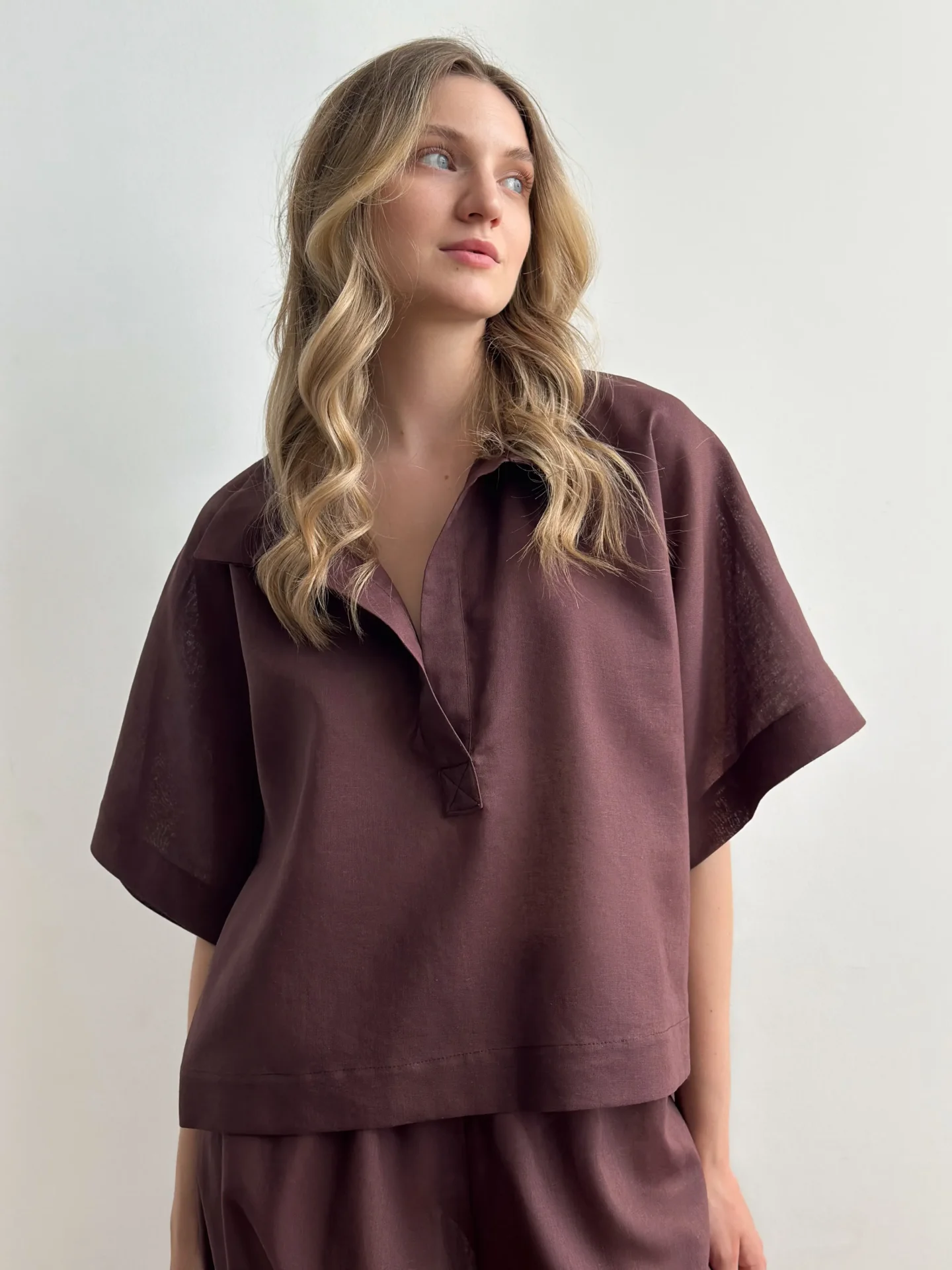 Koszula Polo z lnu, brązowa - Miso