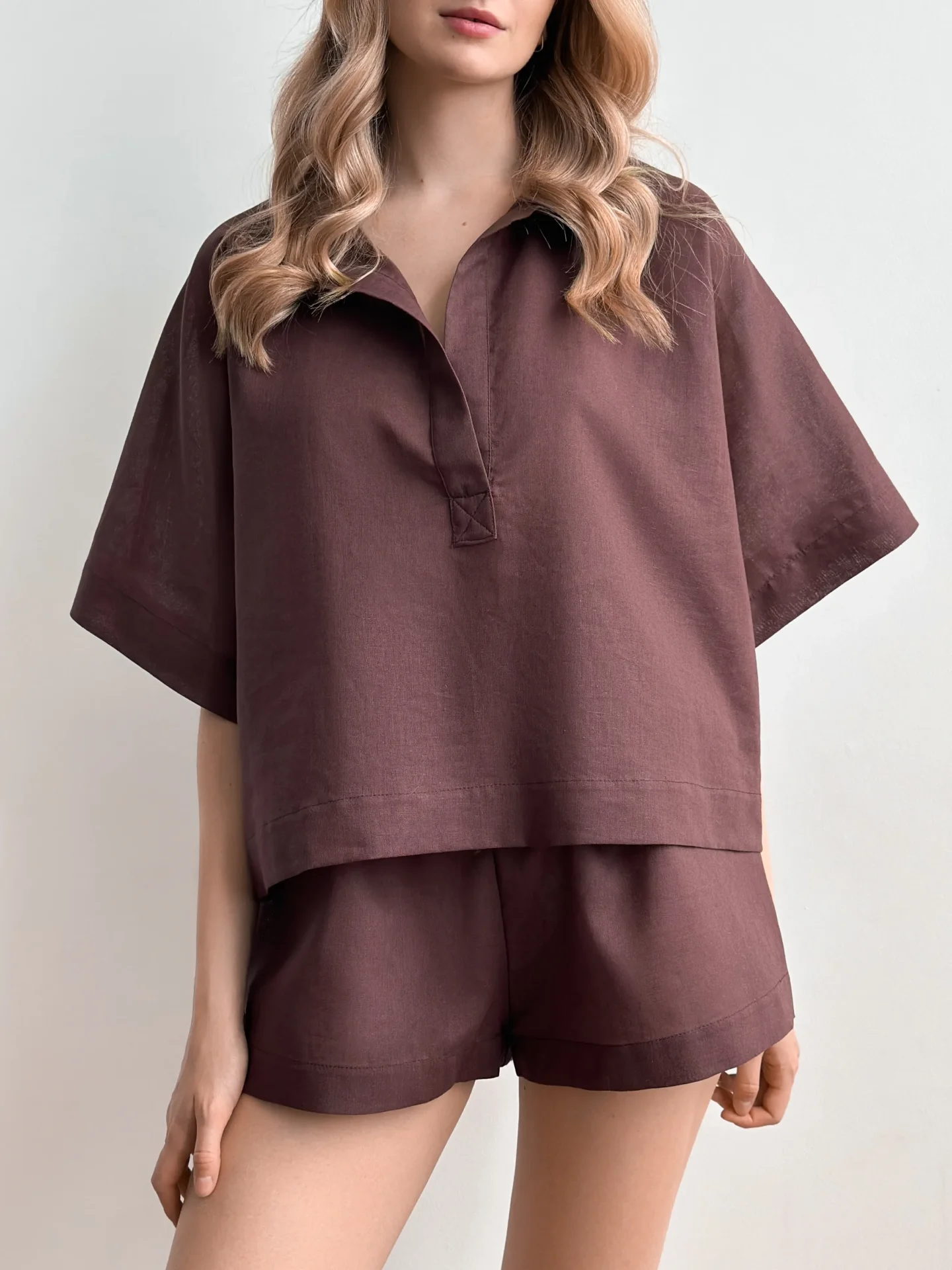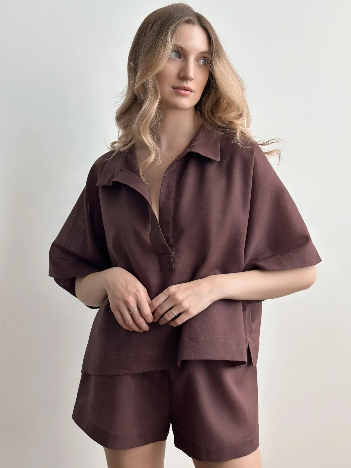 Koszula Polo z lnu, brązowa