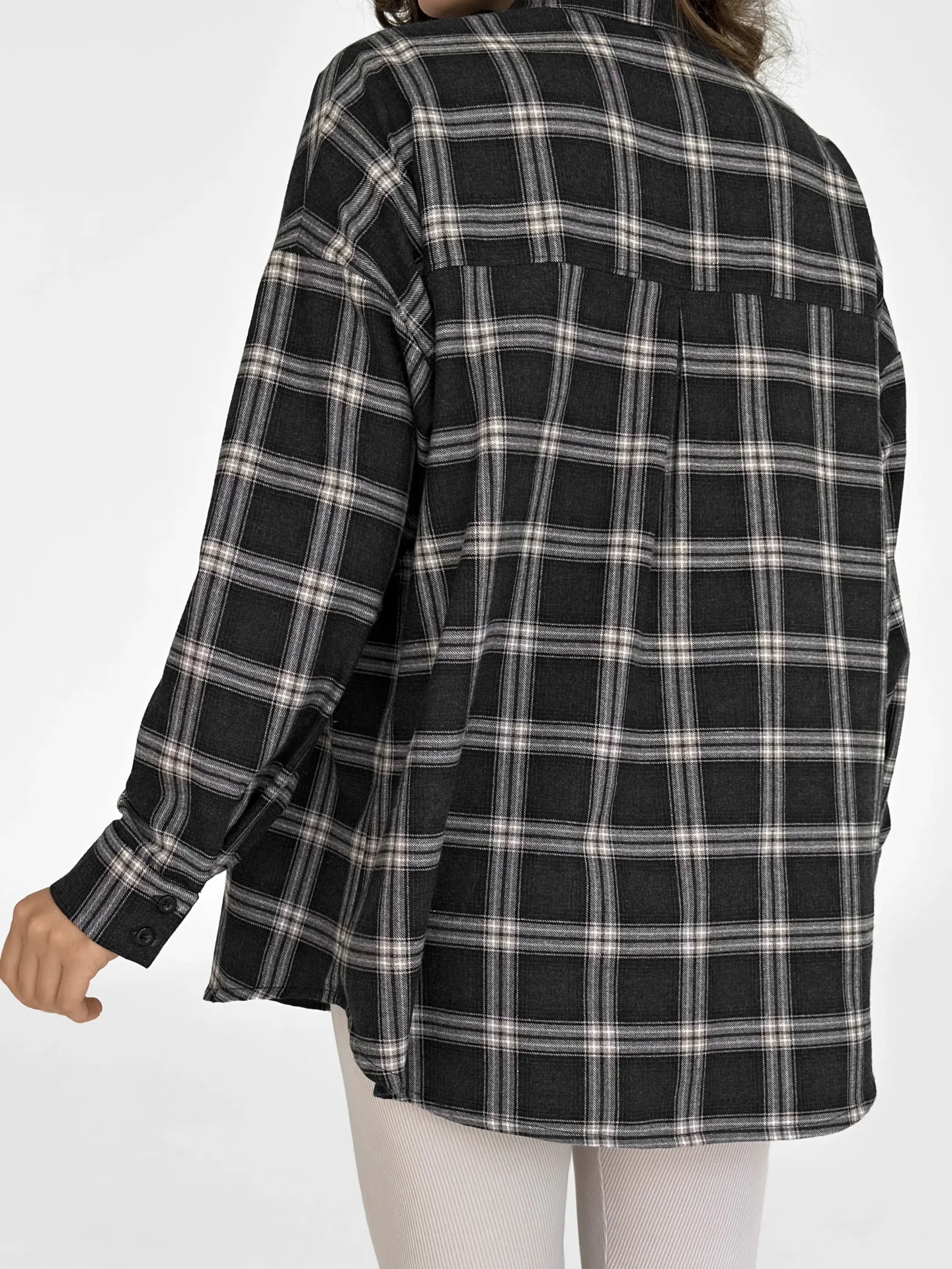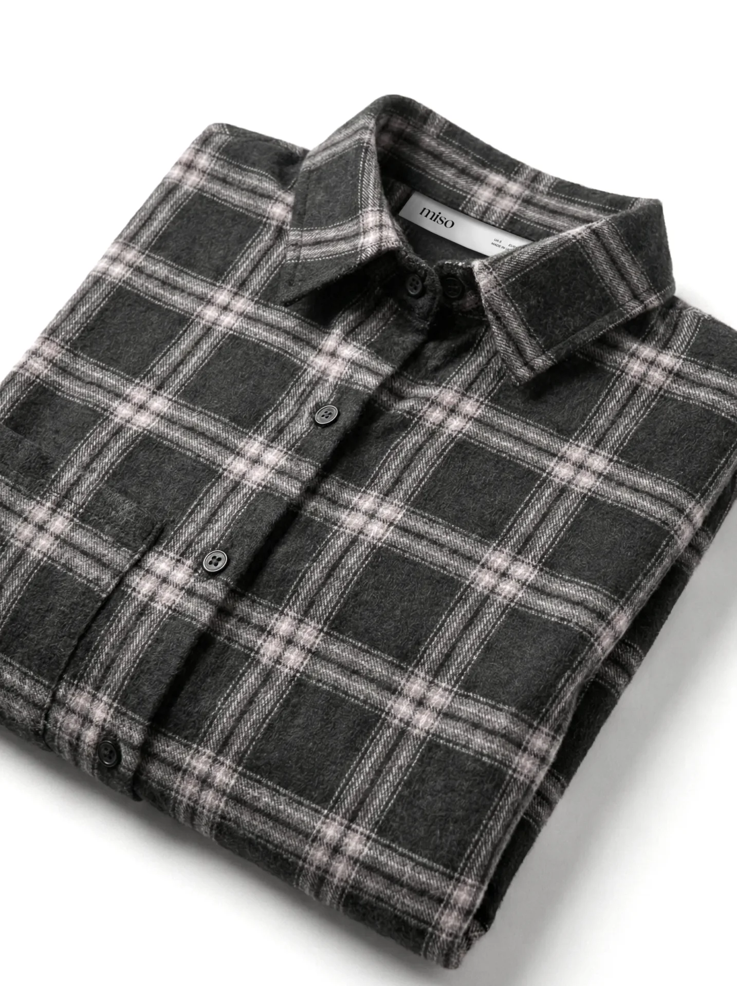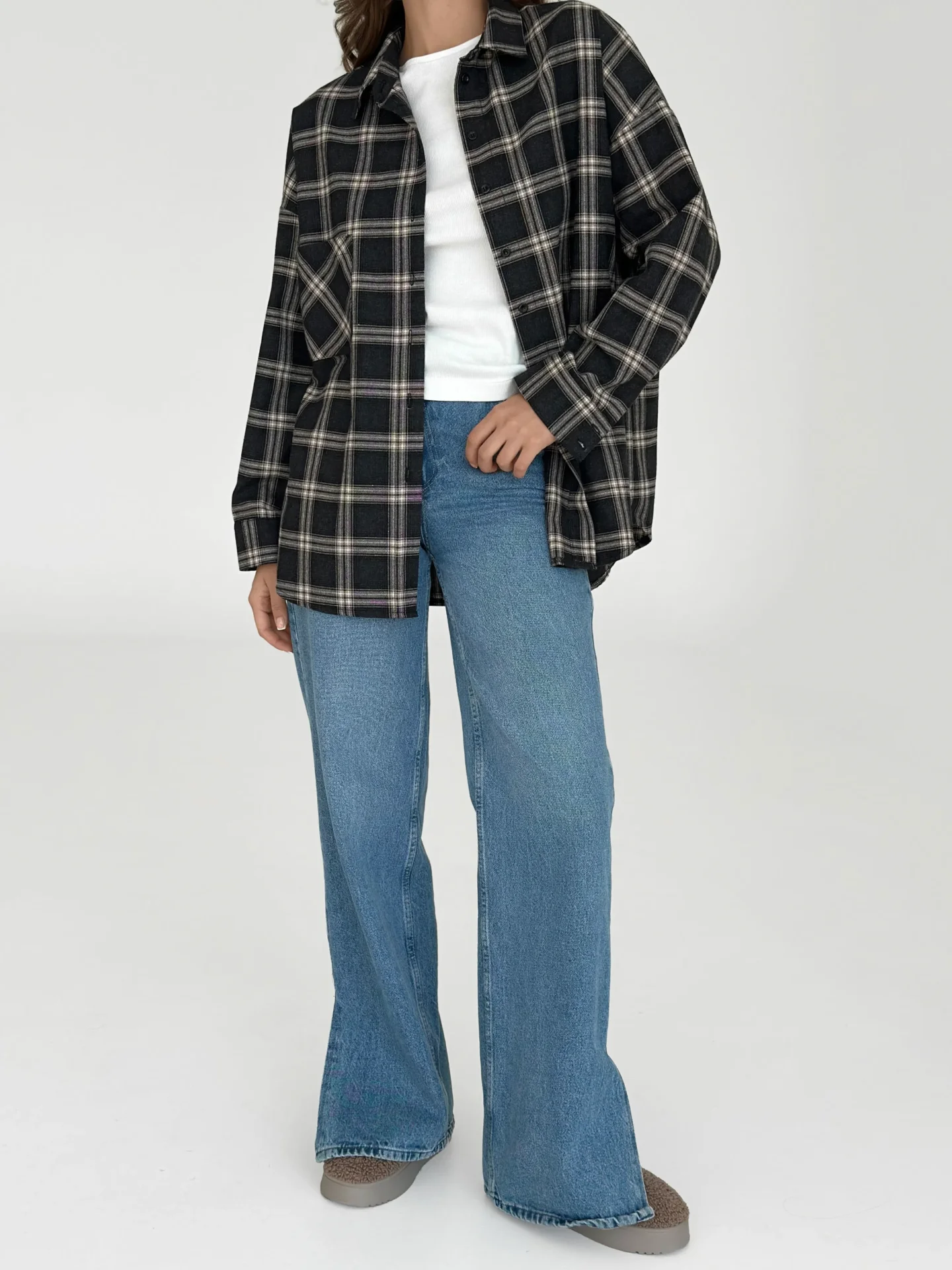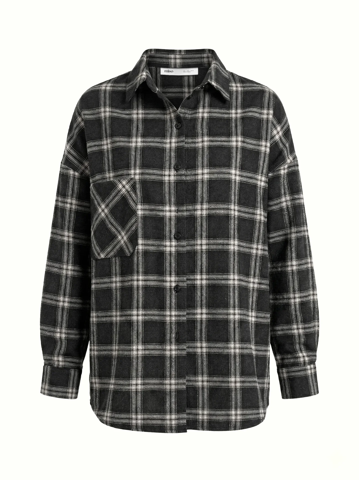 Koszula z flaneli, czarna w dużą beżową kratkę - Miso