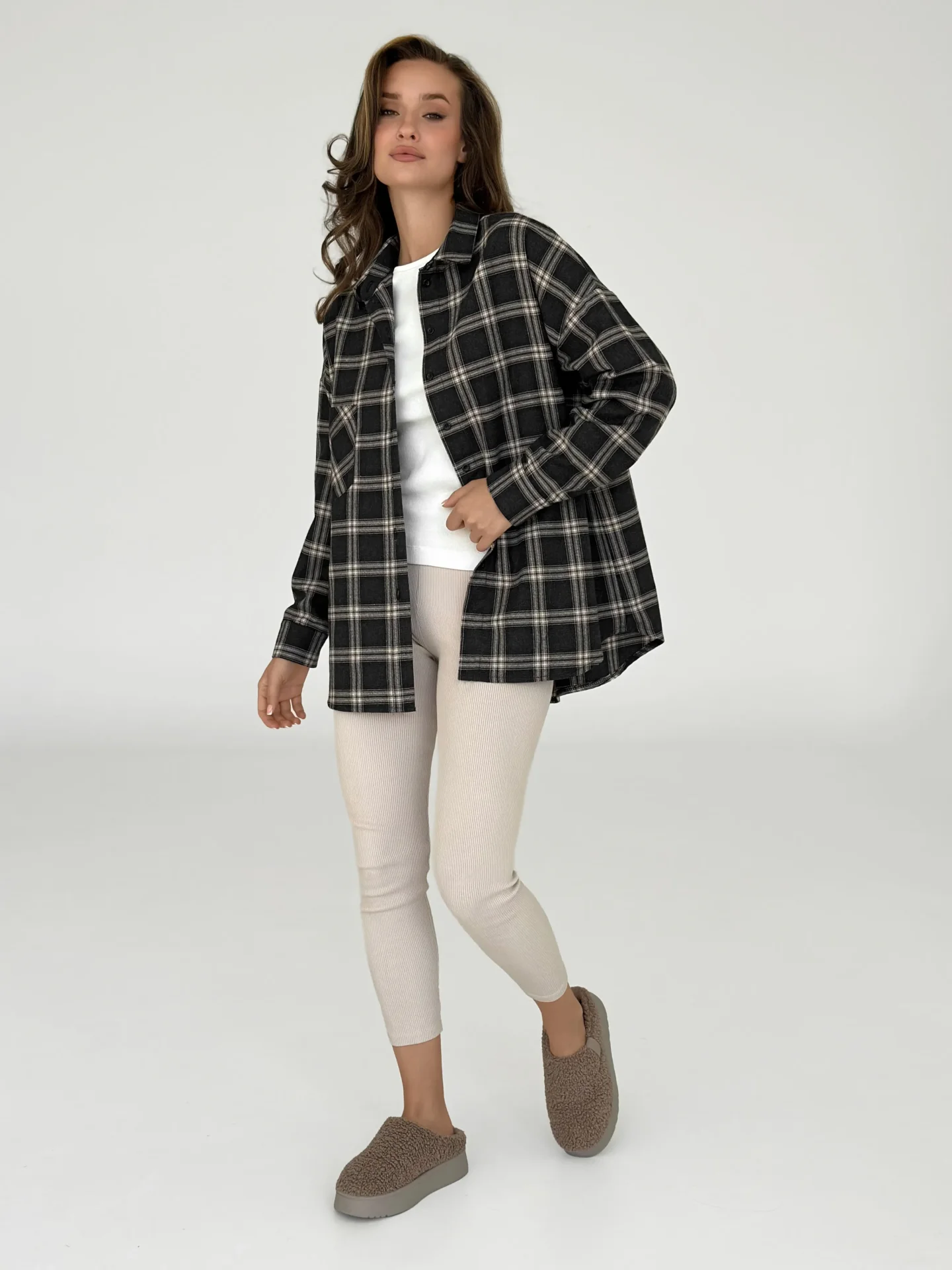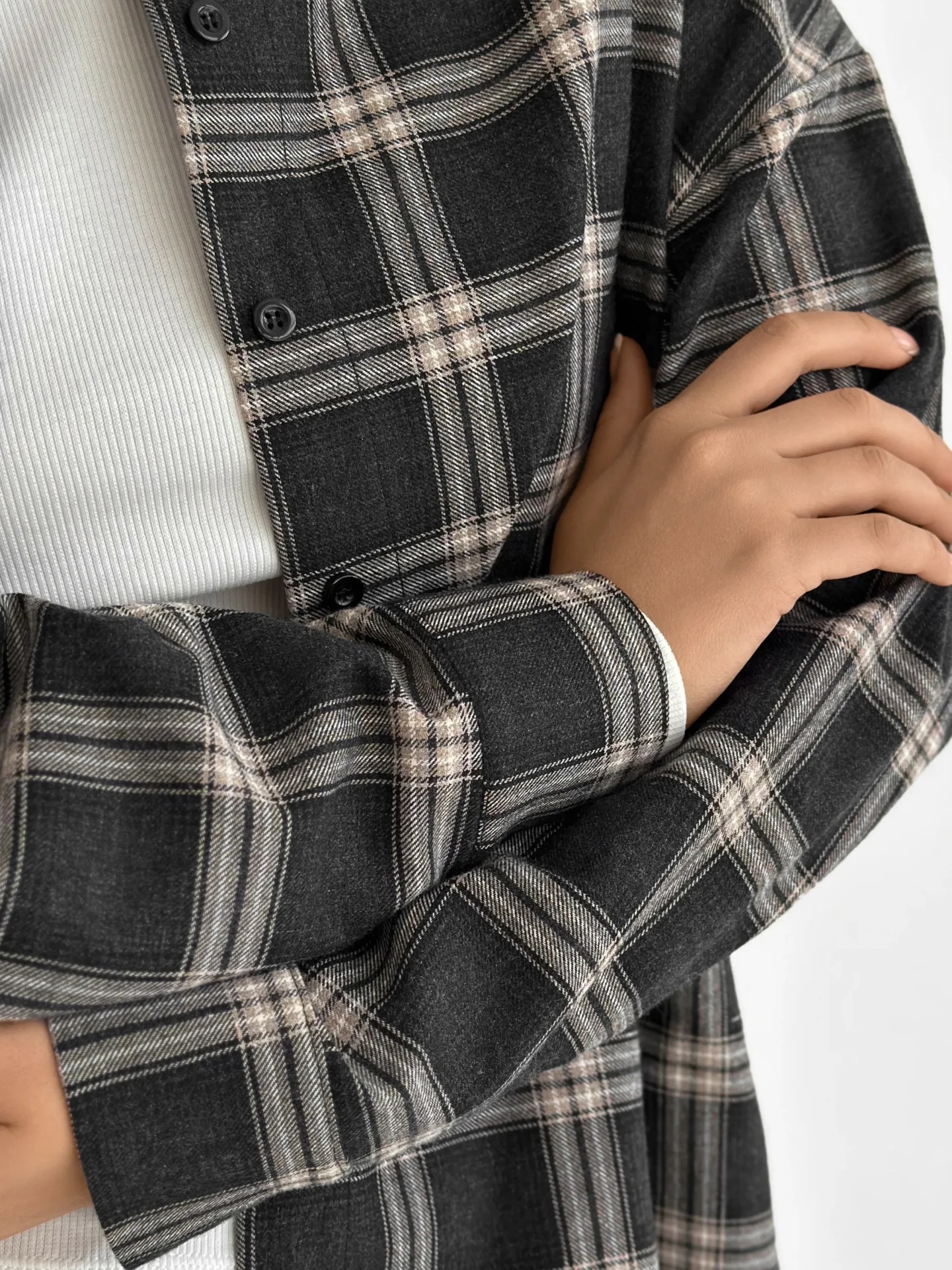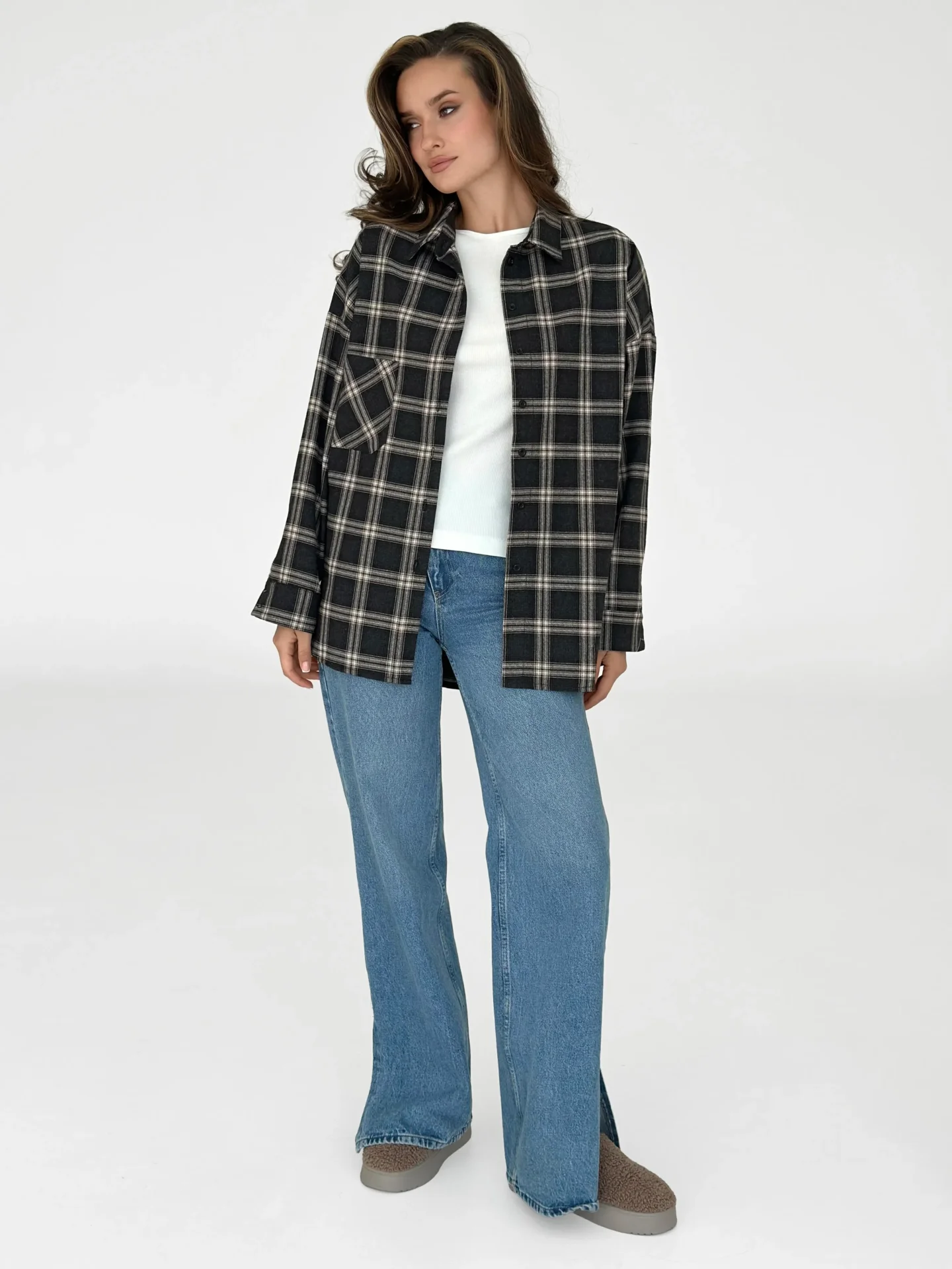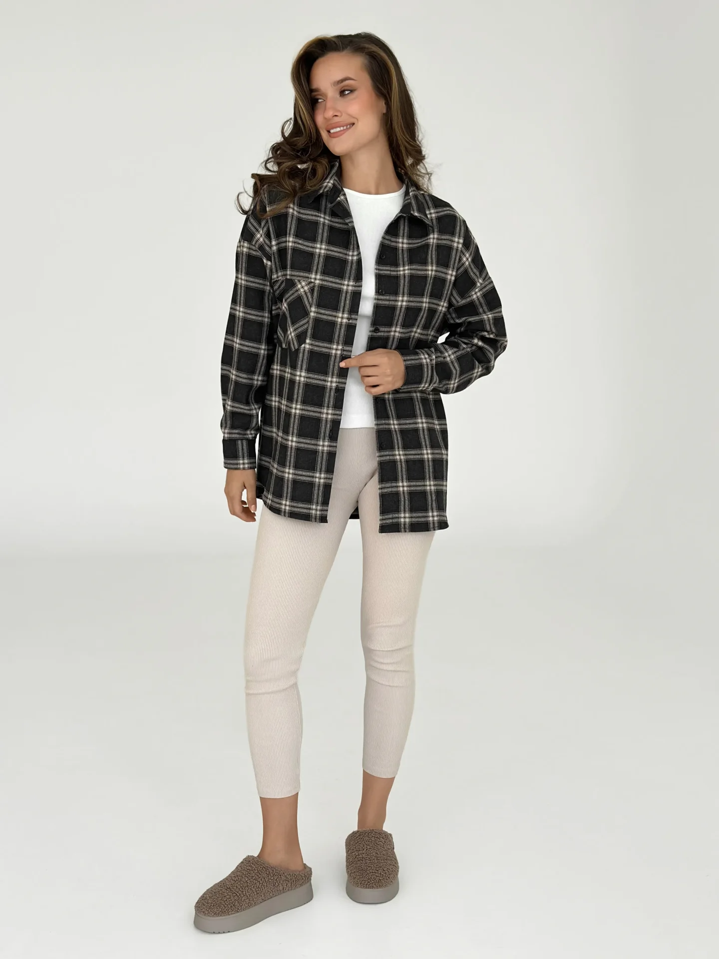 Koszula z flaneli, czarna w dużą beżową kratkę - Miso