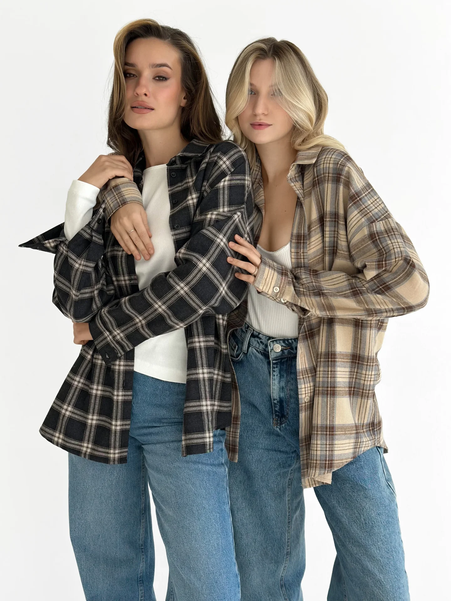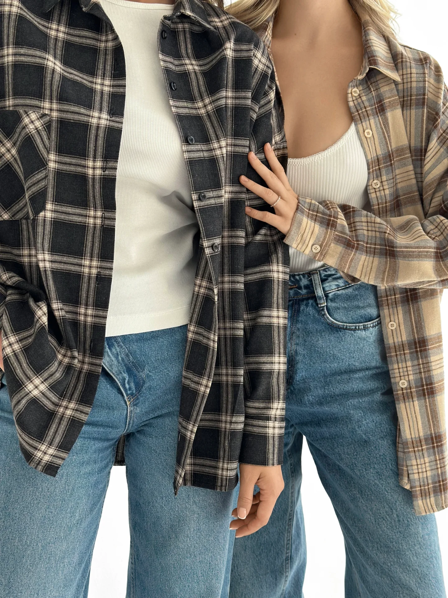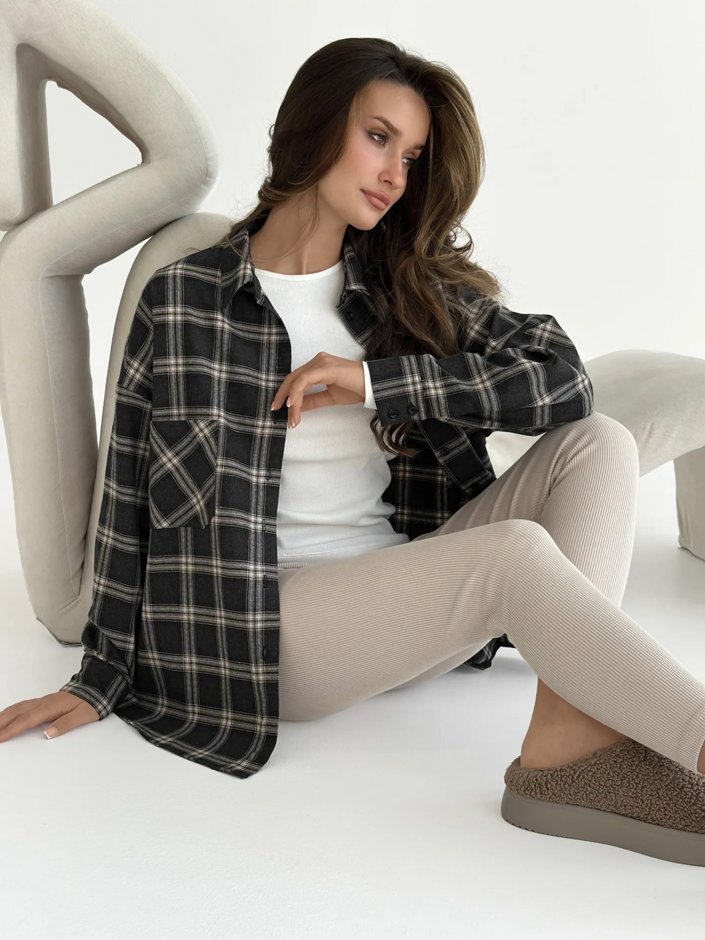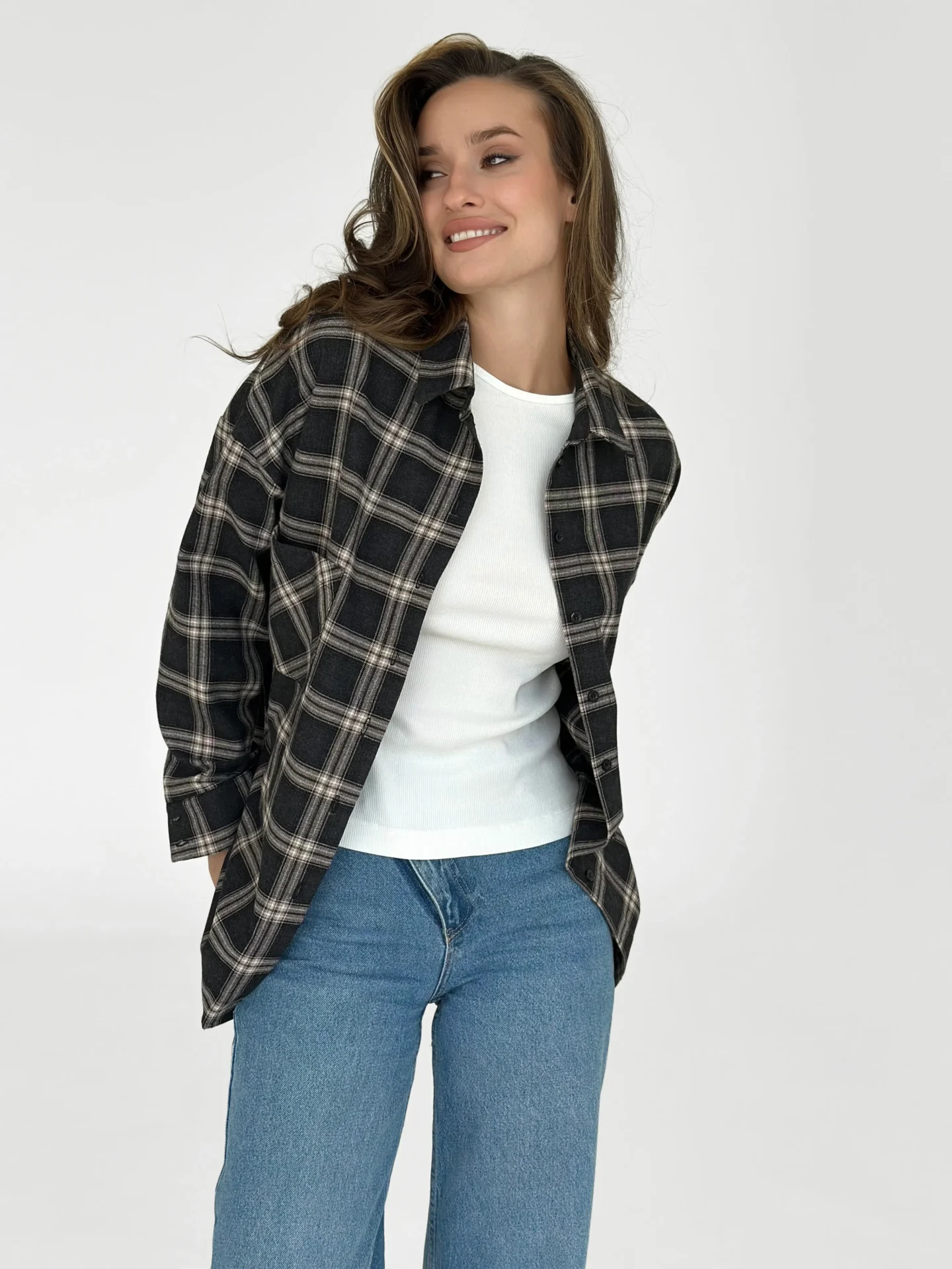 Koszula z flaneli, czarna w dużą beżową kratkę - Miso