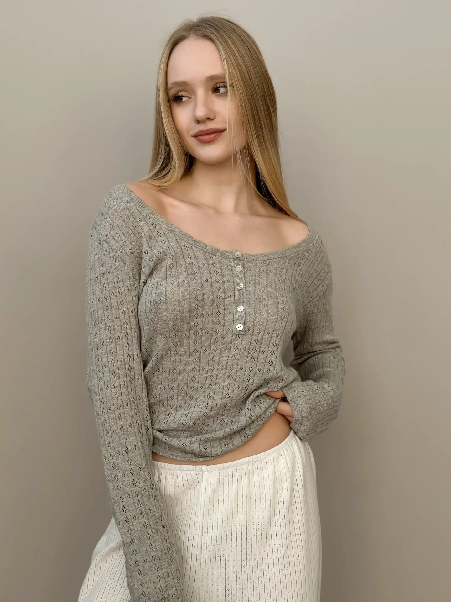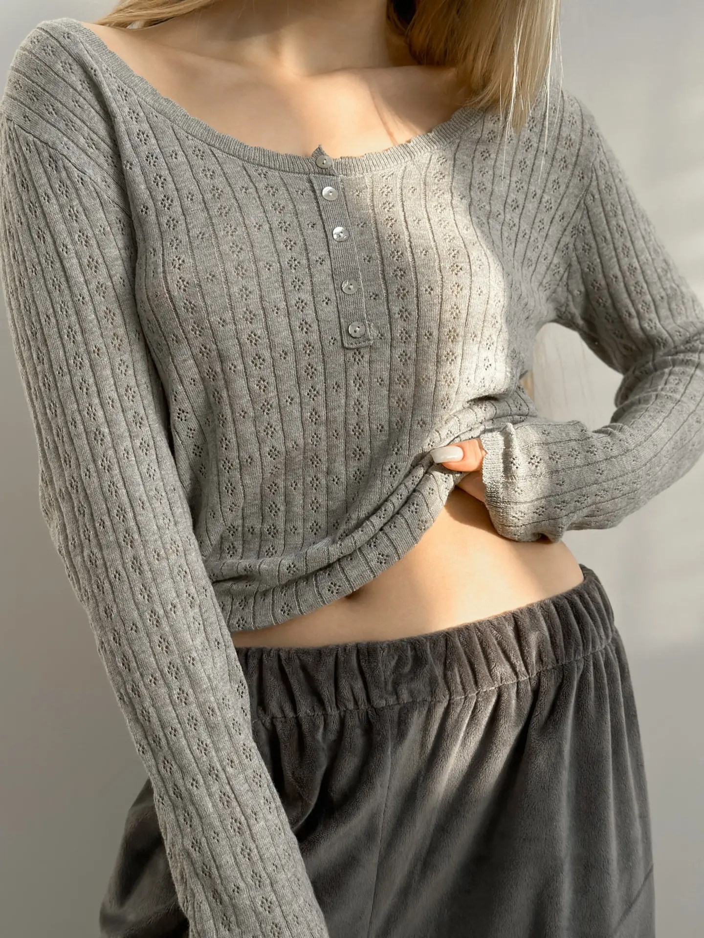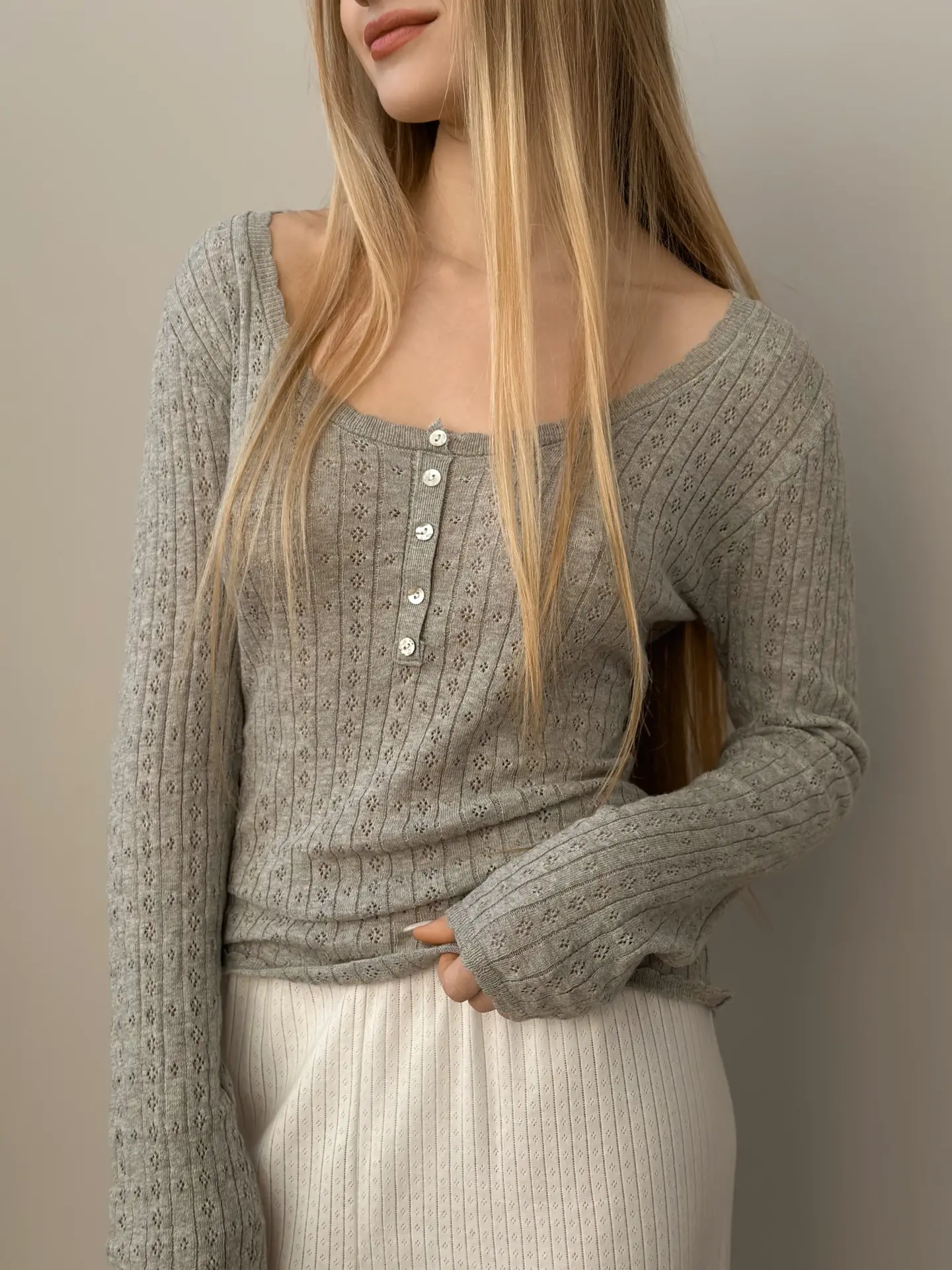 Koszulka dziana z długim rękawem, z bawełny, szara