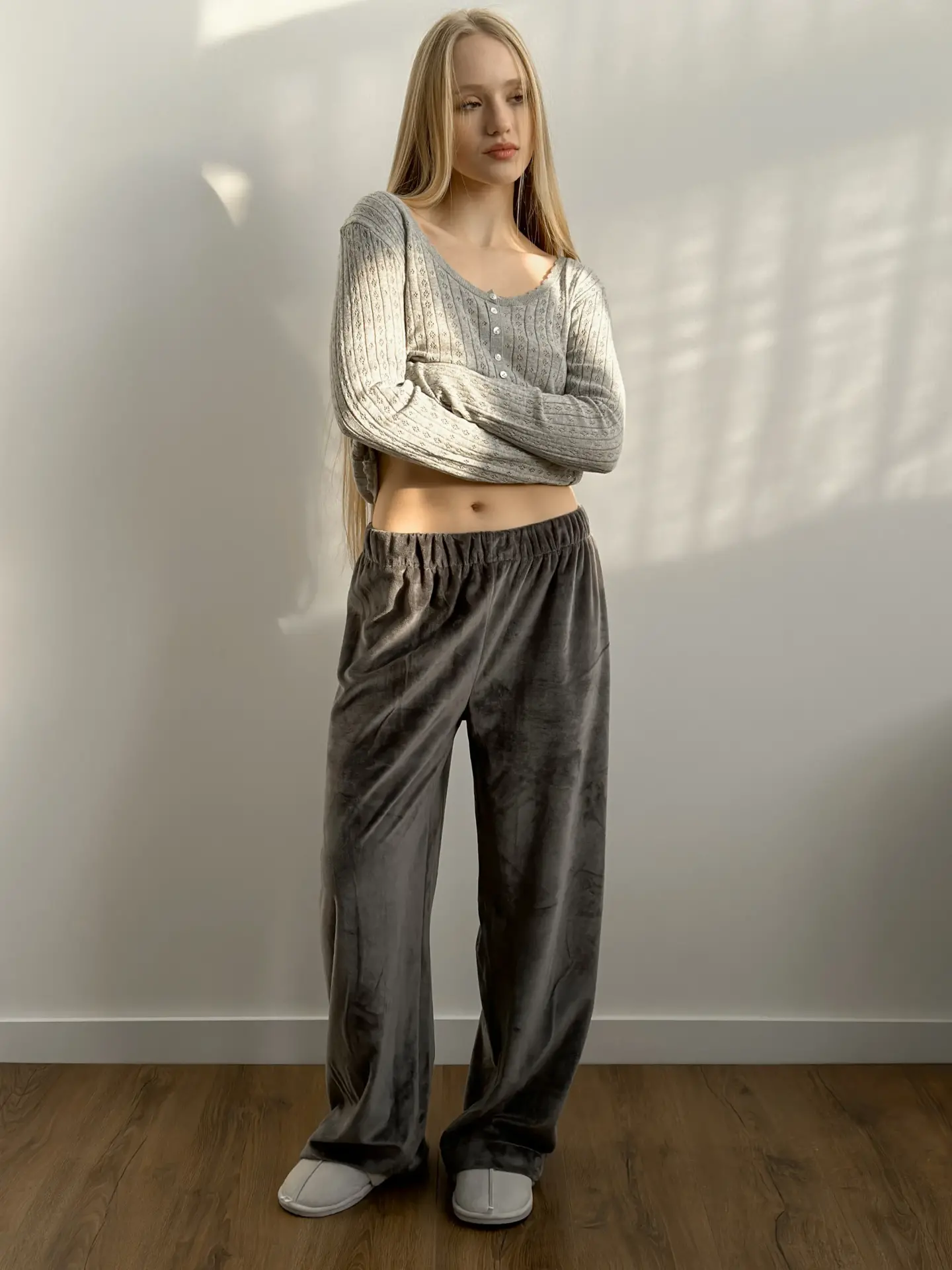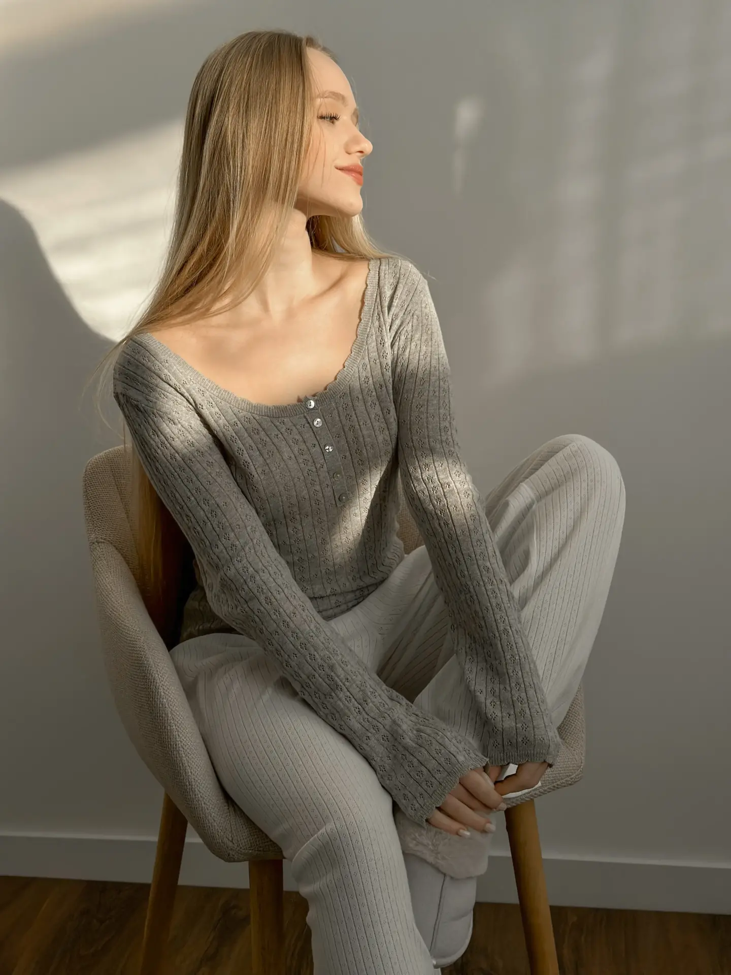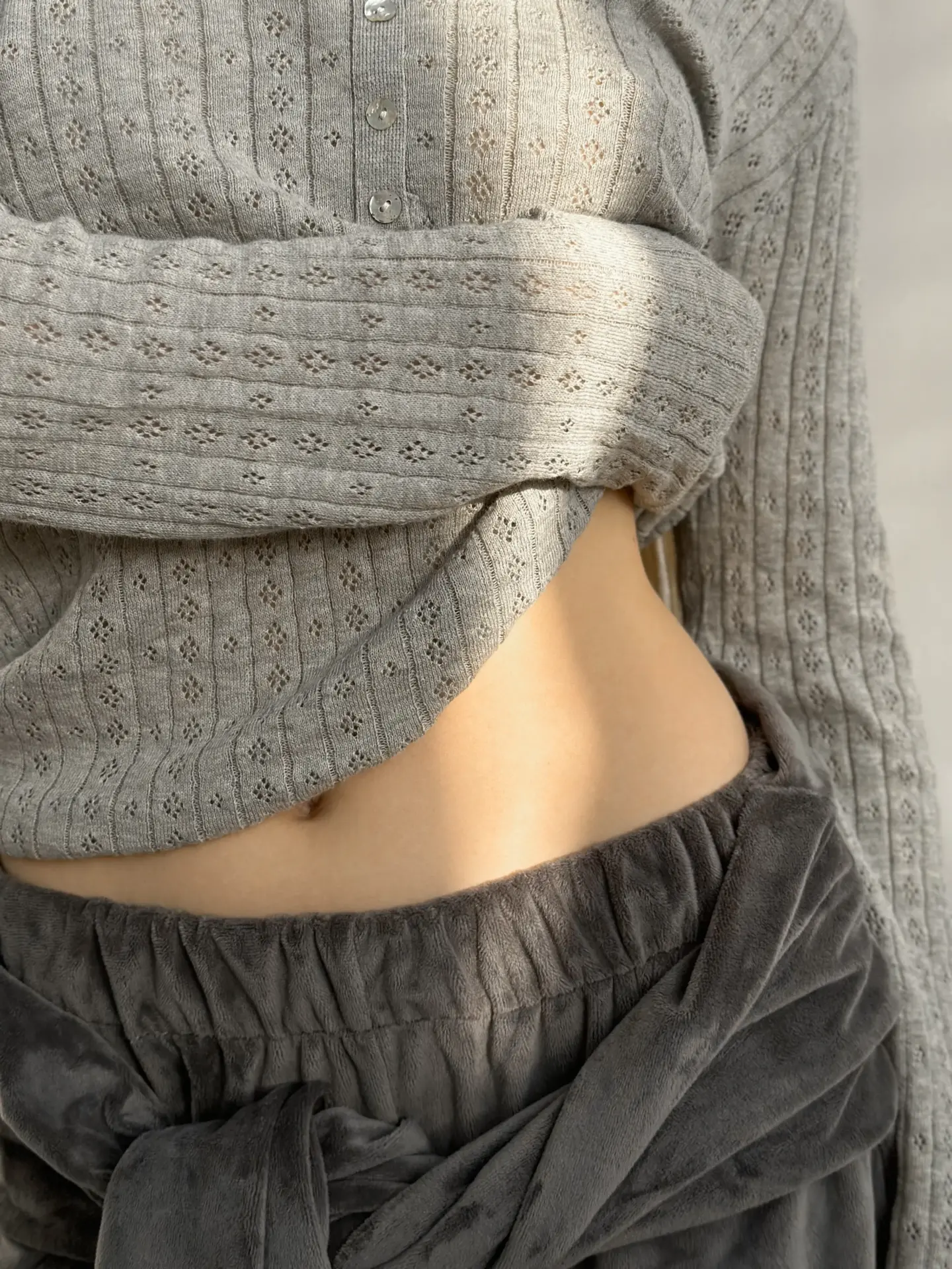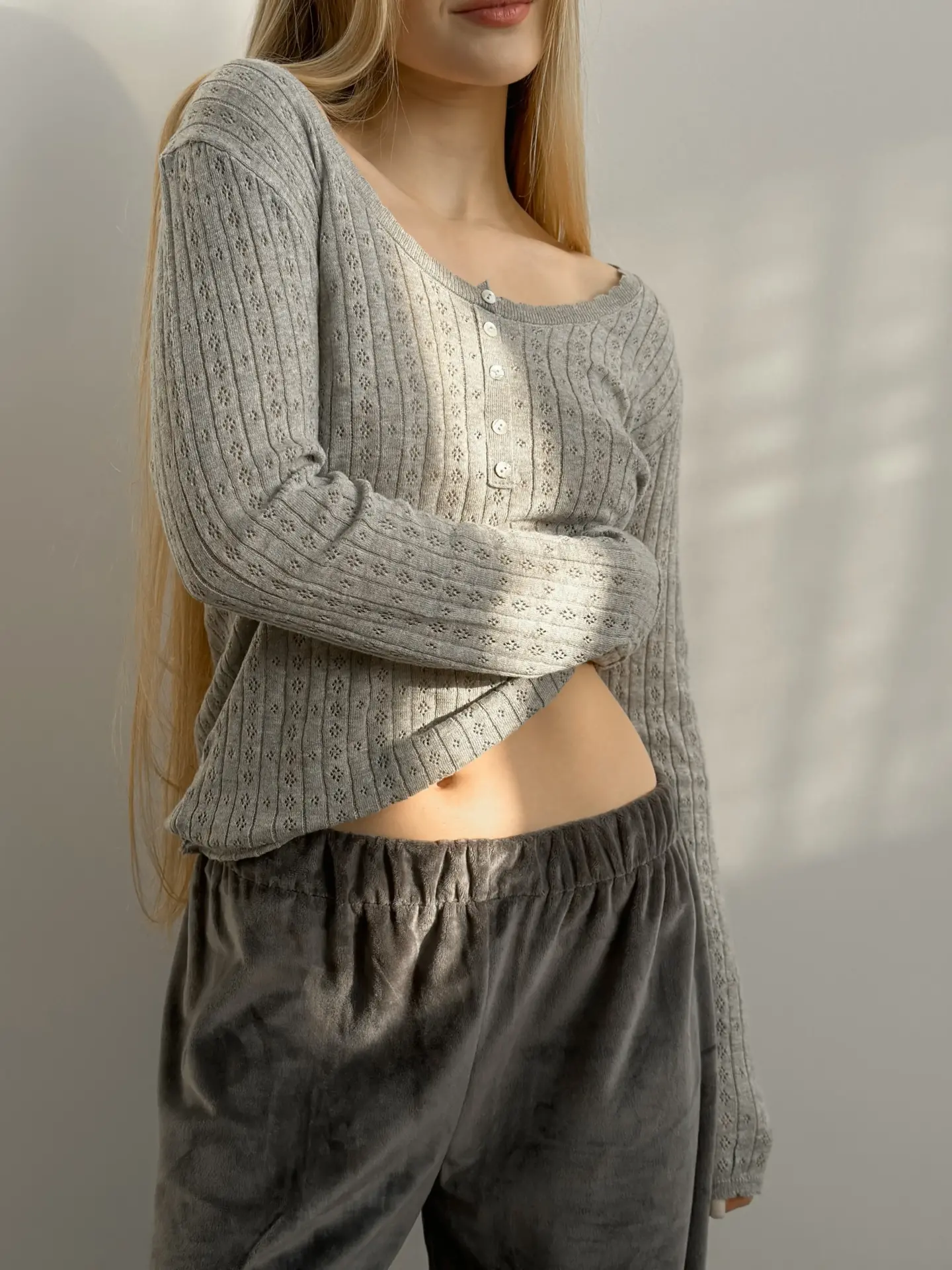 Koszulka dziana z długim rękawem, z bawełny, szara