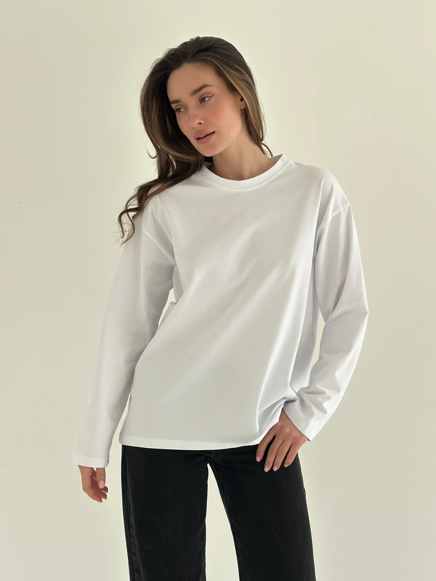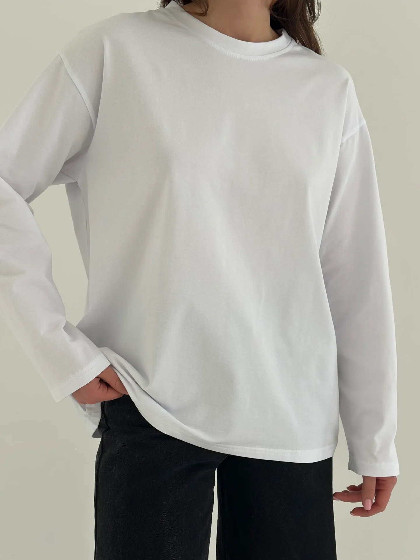 Koszulka longsleeve z białą lamówką, biała