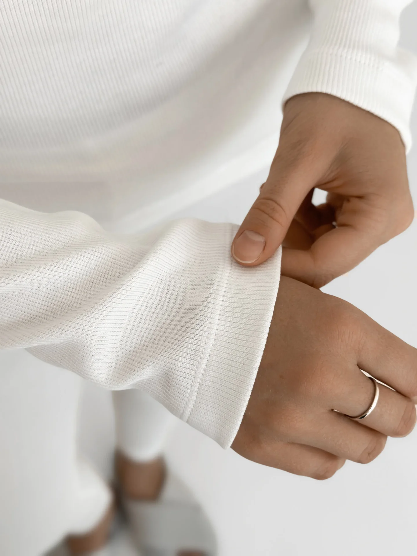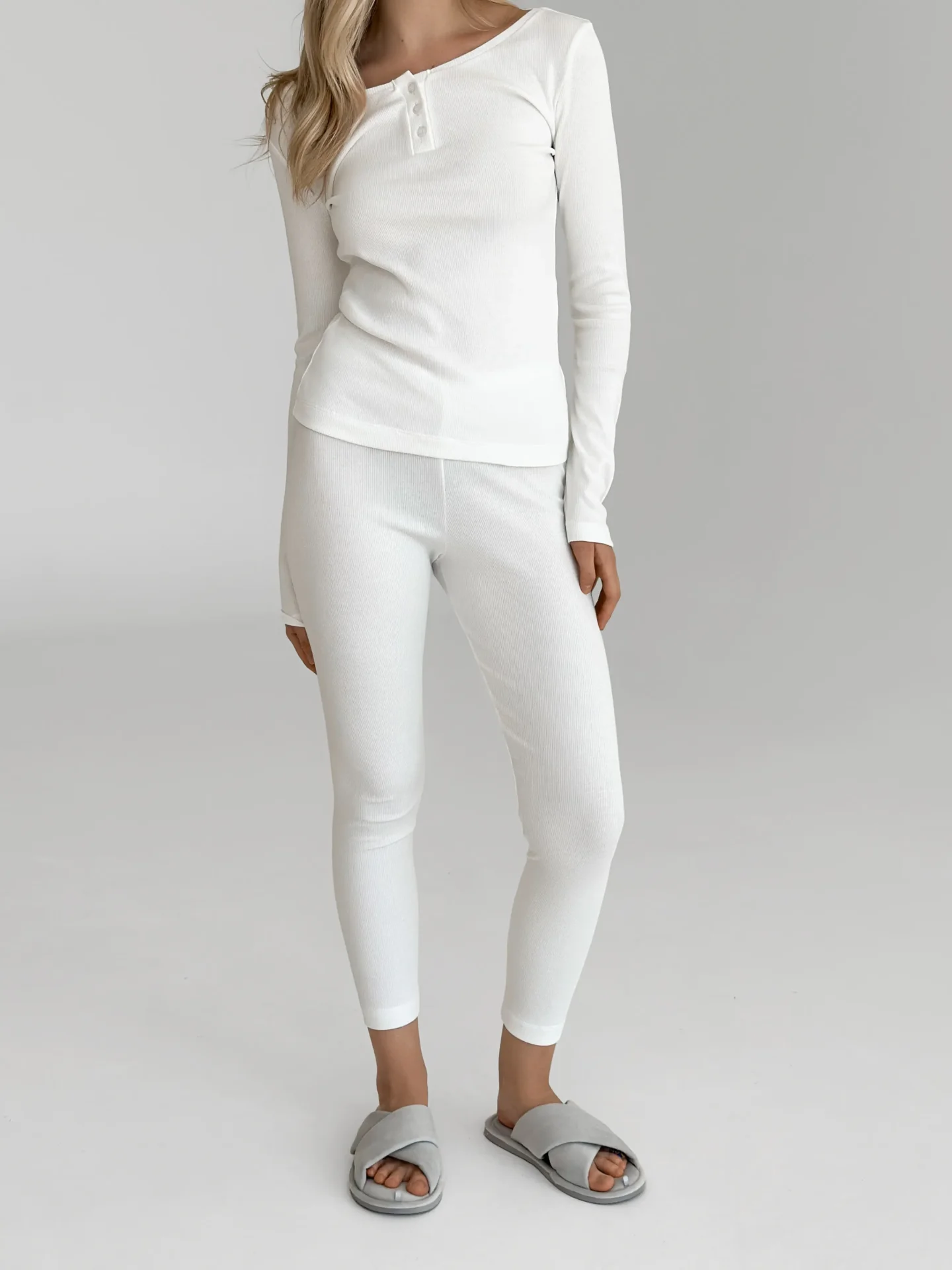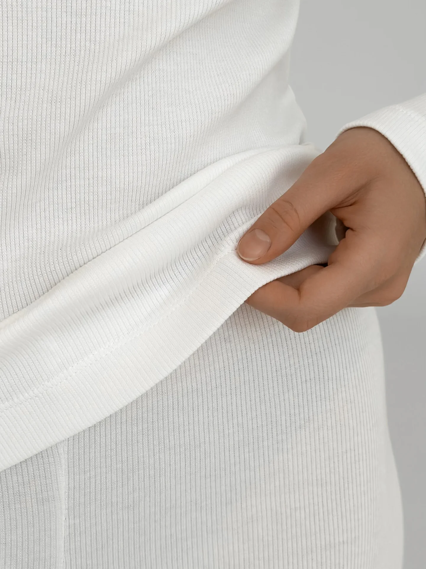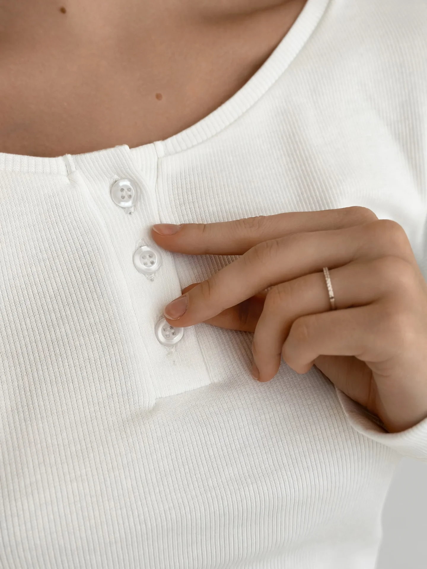 Koszulka longsleeve z dekoltem na guziki, z dzianiny prążkowanej, mleczna