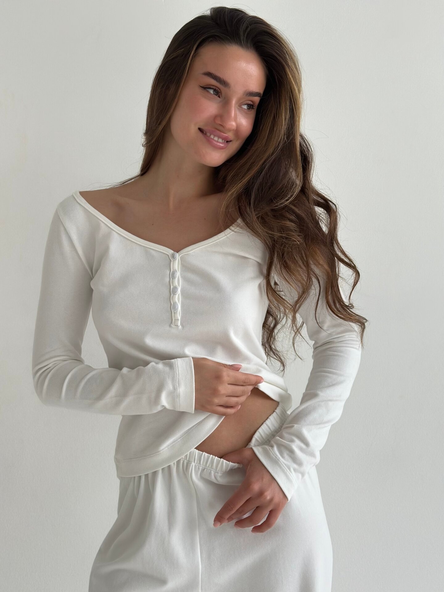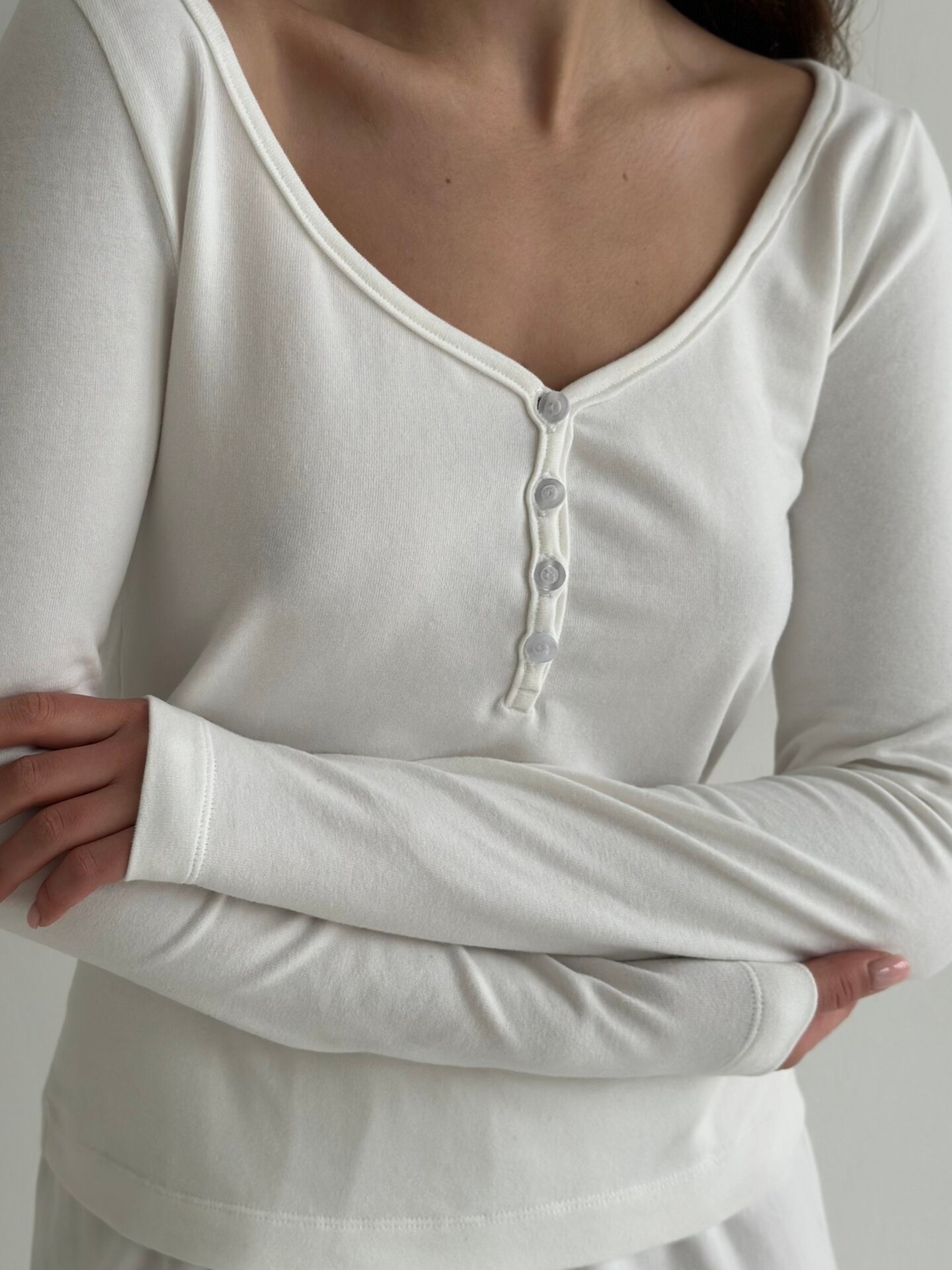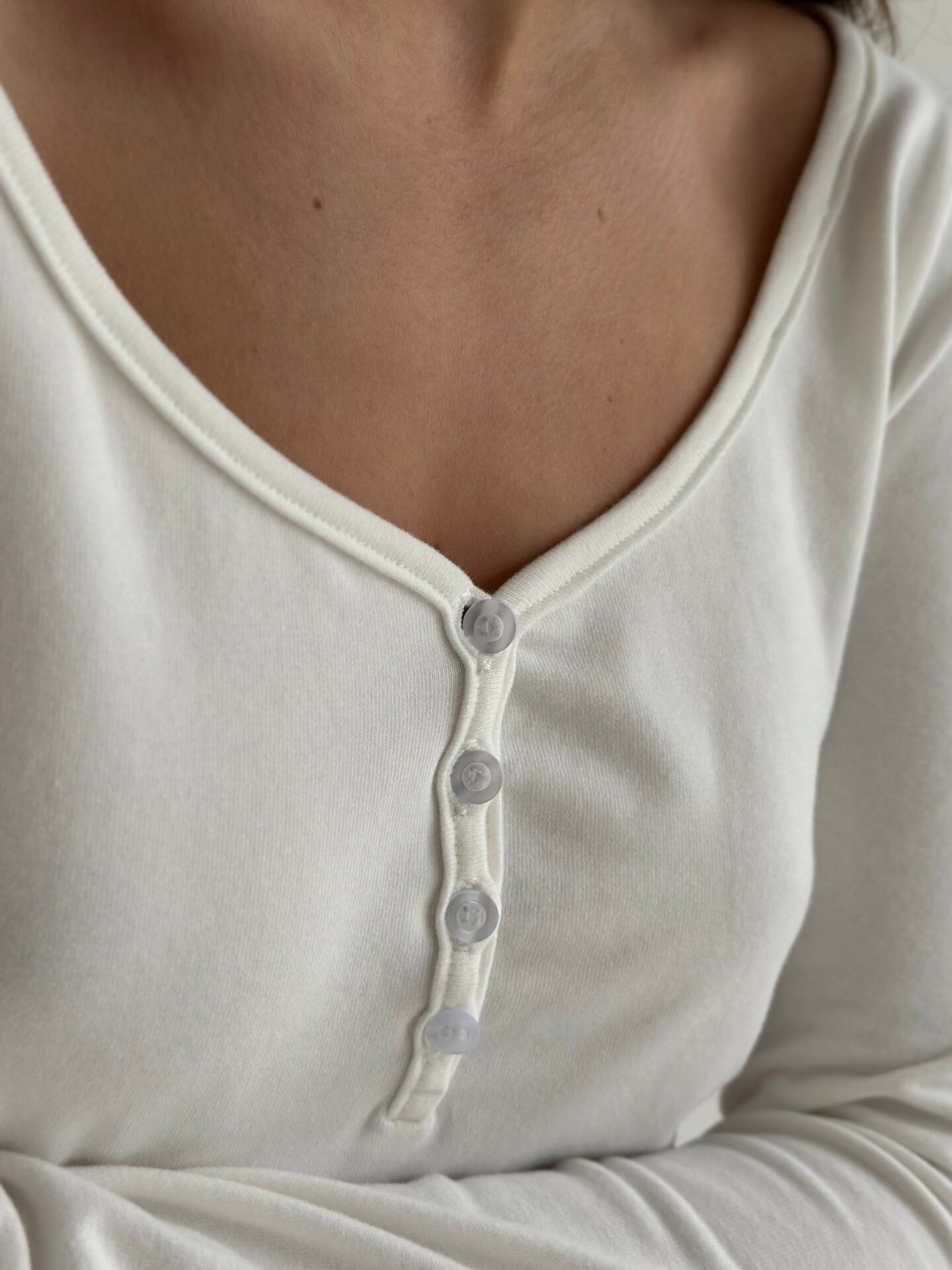 Koszulka longsleeve z dekoltem w serek „Delicacy”, z dzianiny, biała