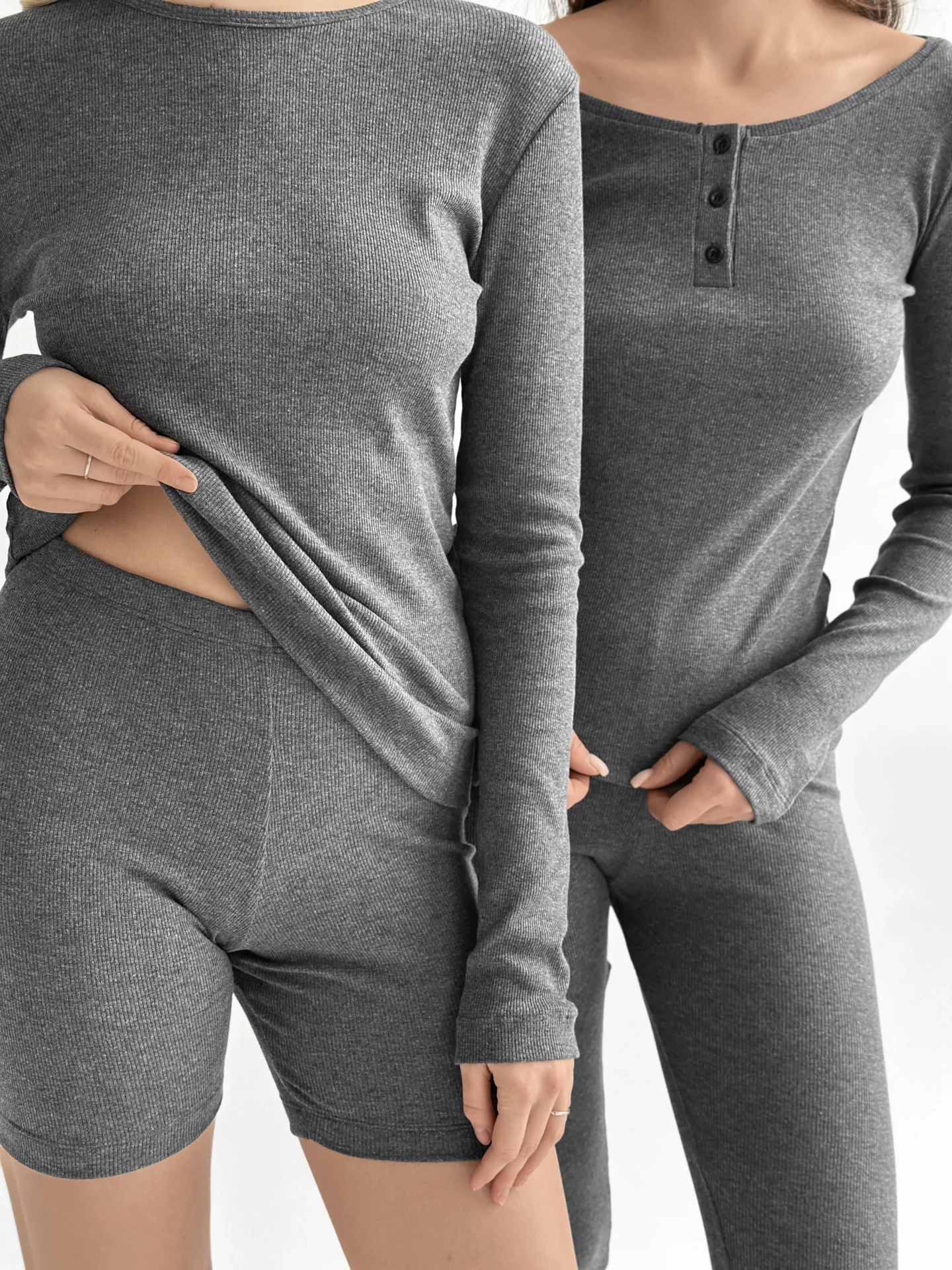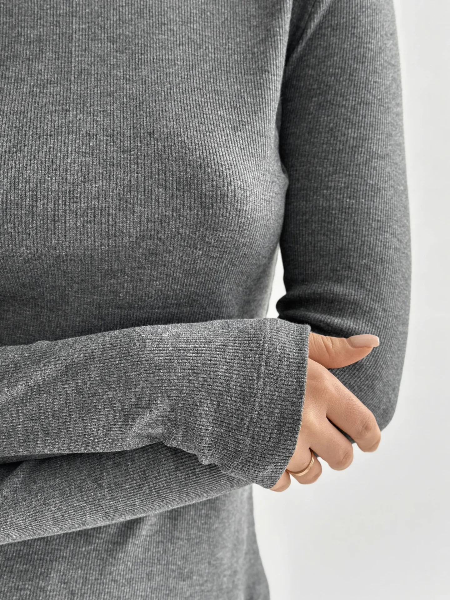 Koszulka longsleeve, z dzianiny prążkowanej, antracytowa - Miso