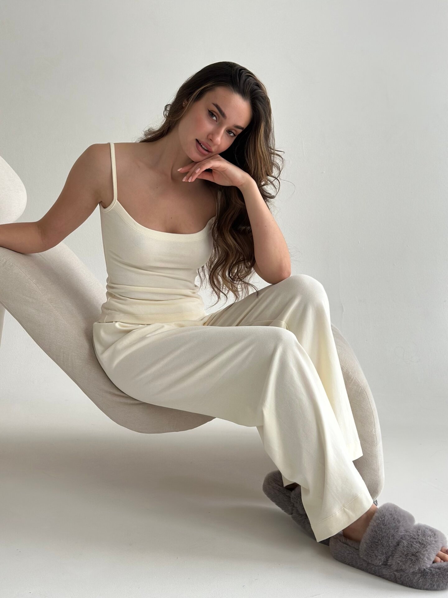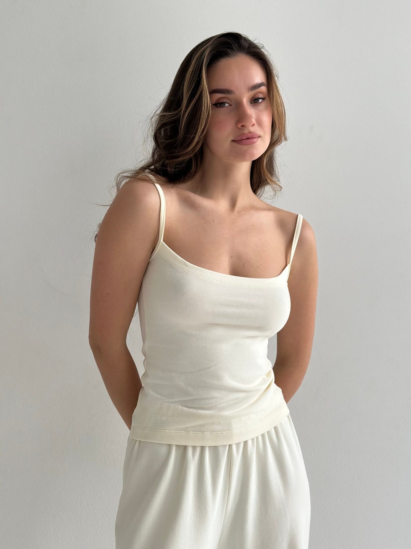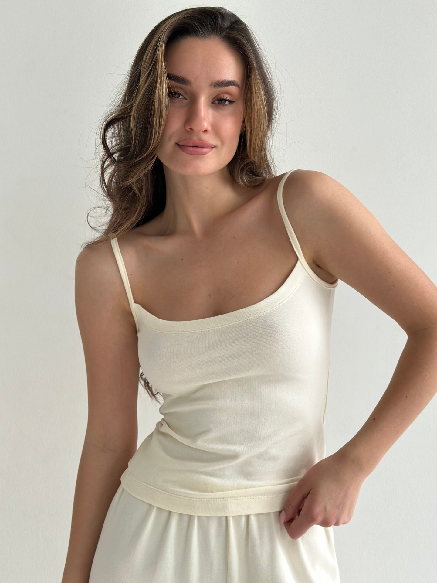 Koszulka na ramiączkach „Delicacy”, z dzianiny, mleczna