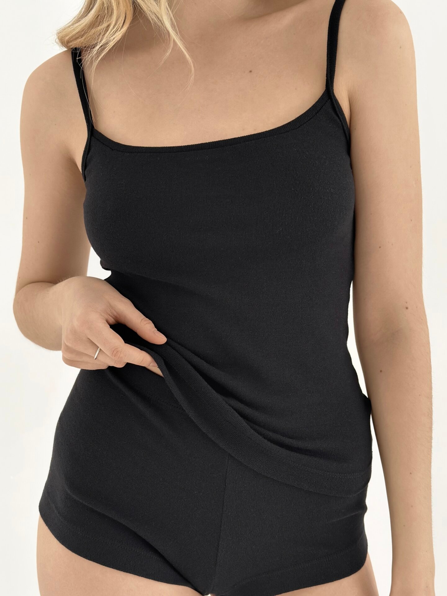 Koszulka na ramiączkach z ribany. Lekka i elastyczna, zapewnia komfort i swobodę ruchów. Idealna do podstawowej garderoby lub domowego komfortu.