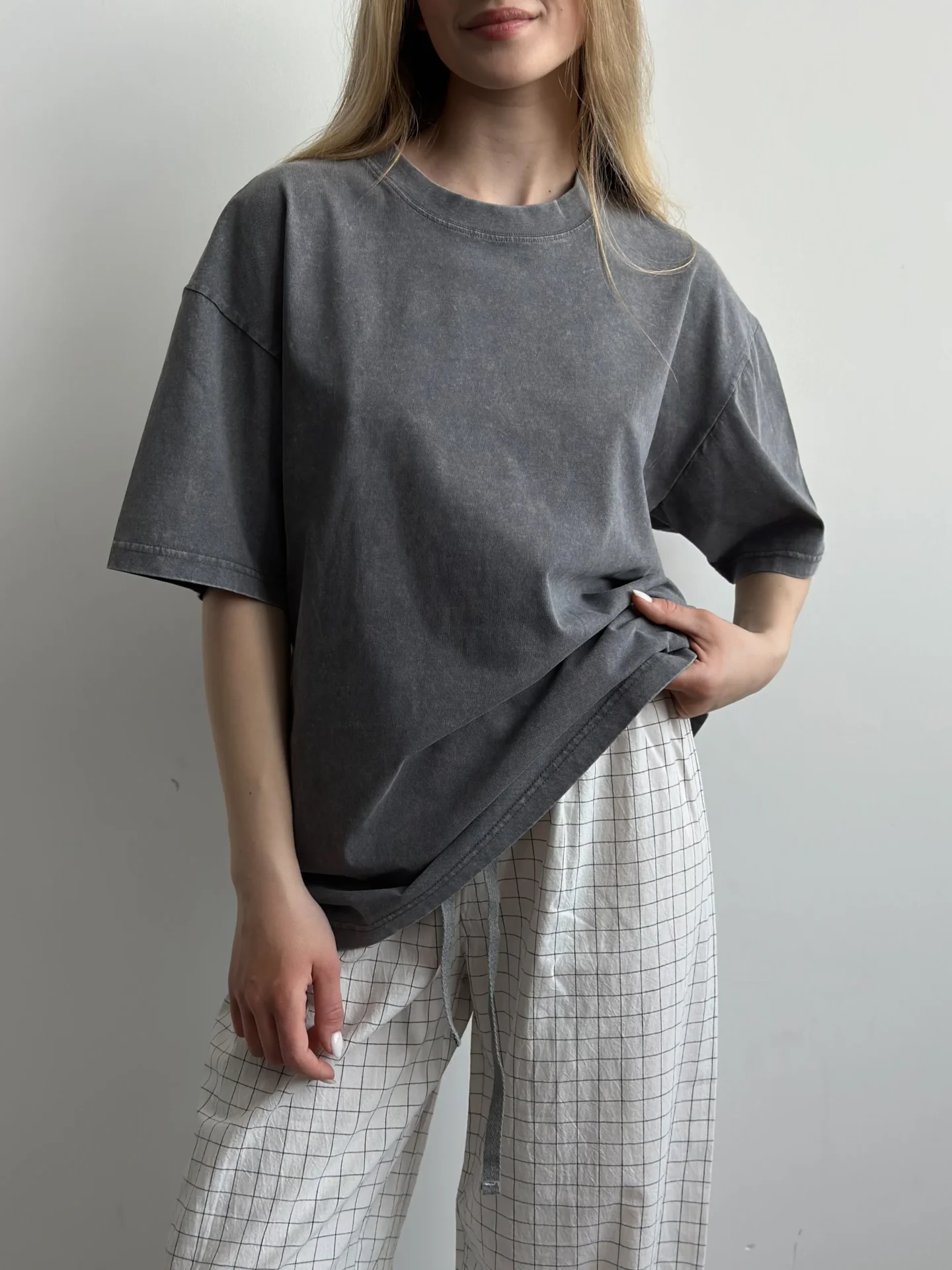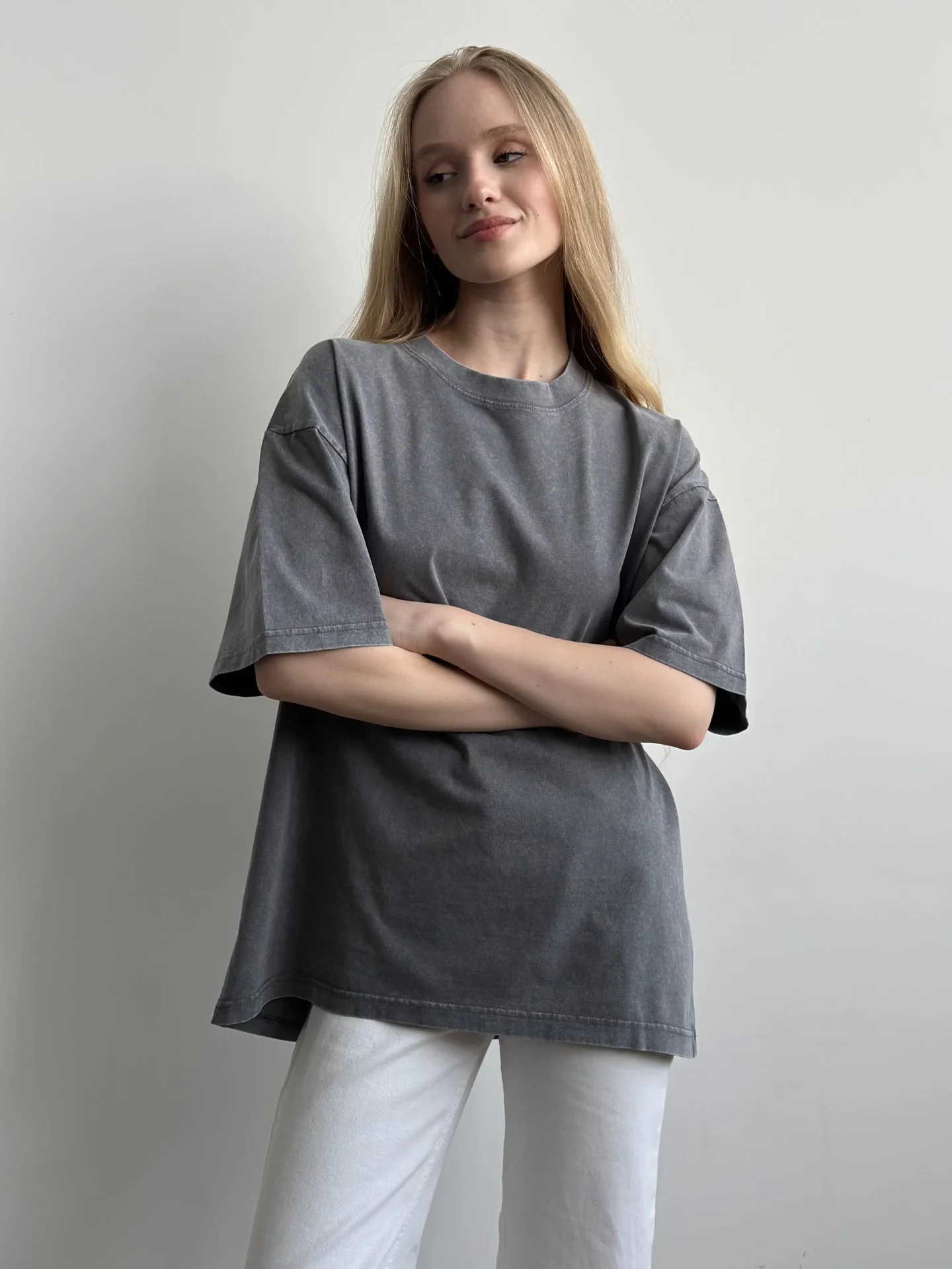 Koszulka z bawełny pranej, szara