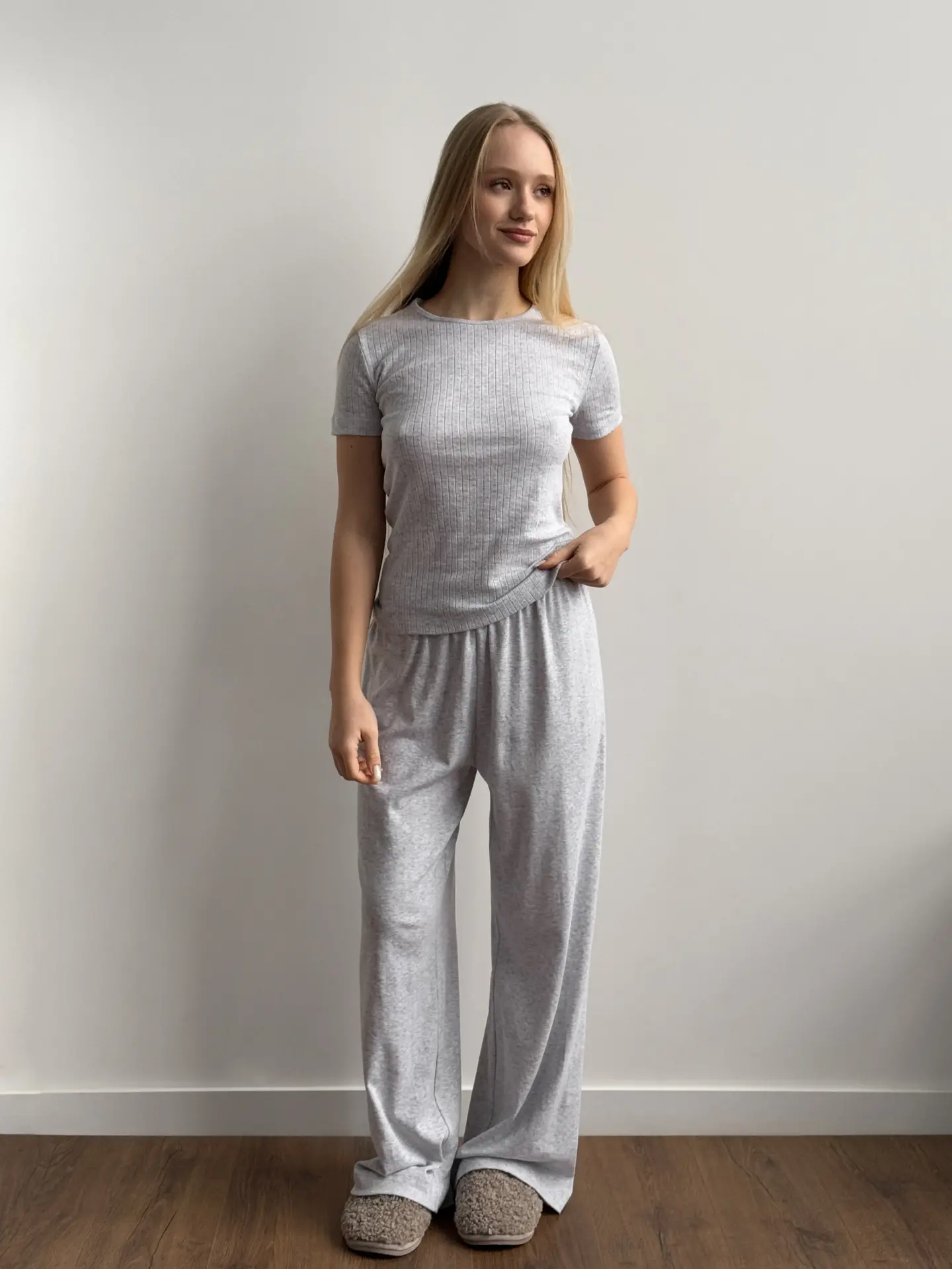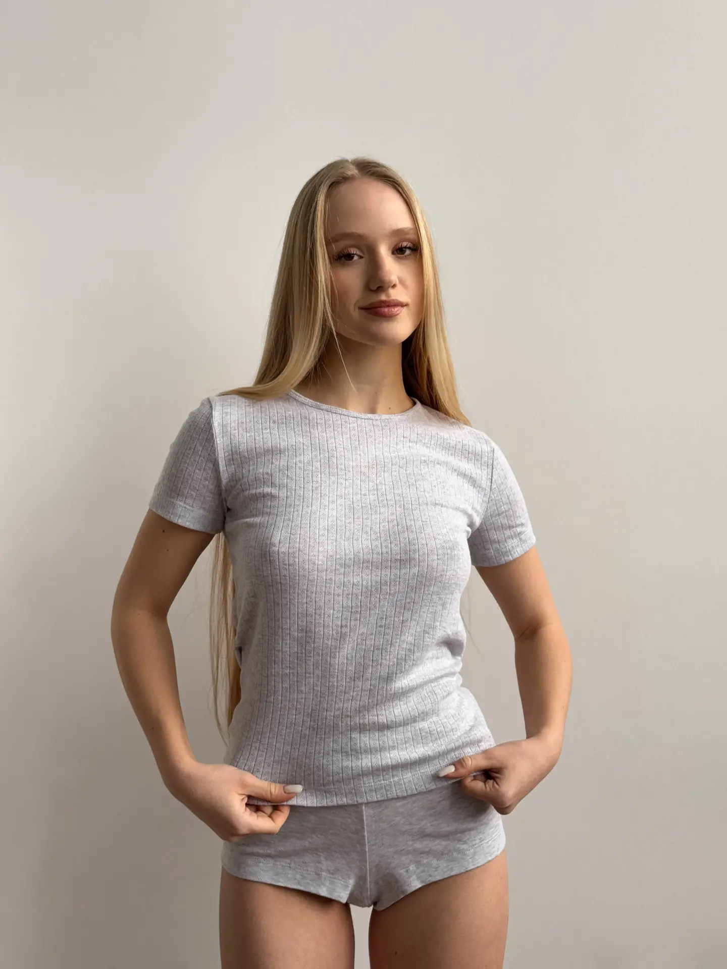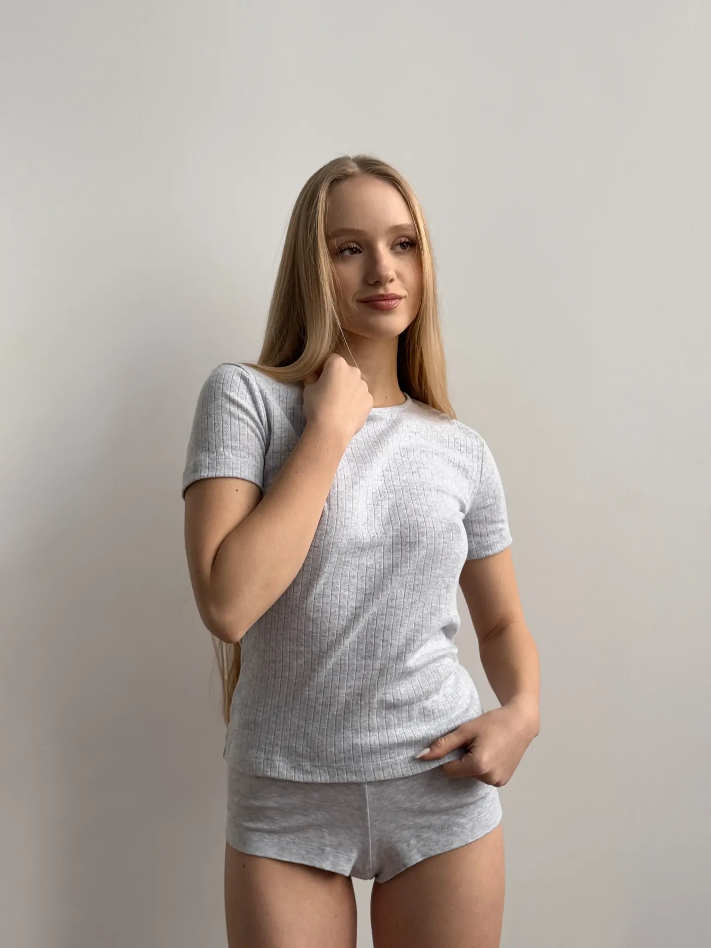 Koszulka z ribany prążkowanej, szara
