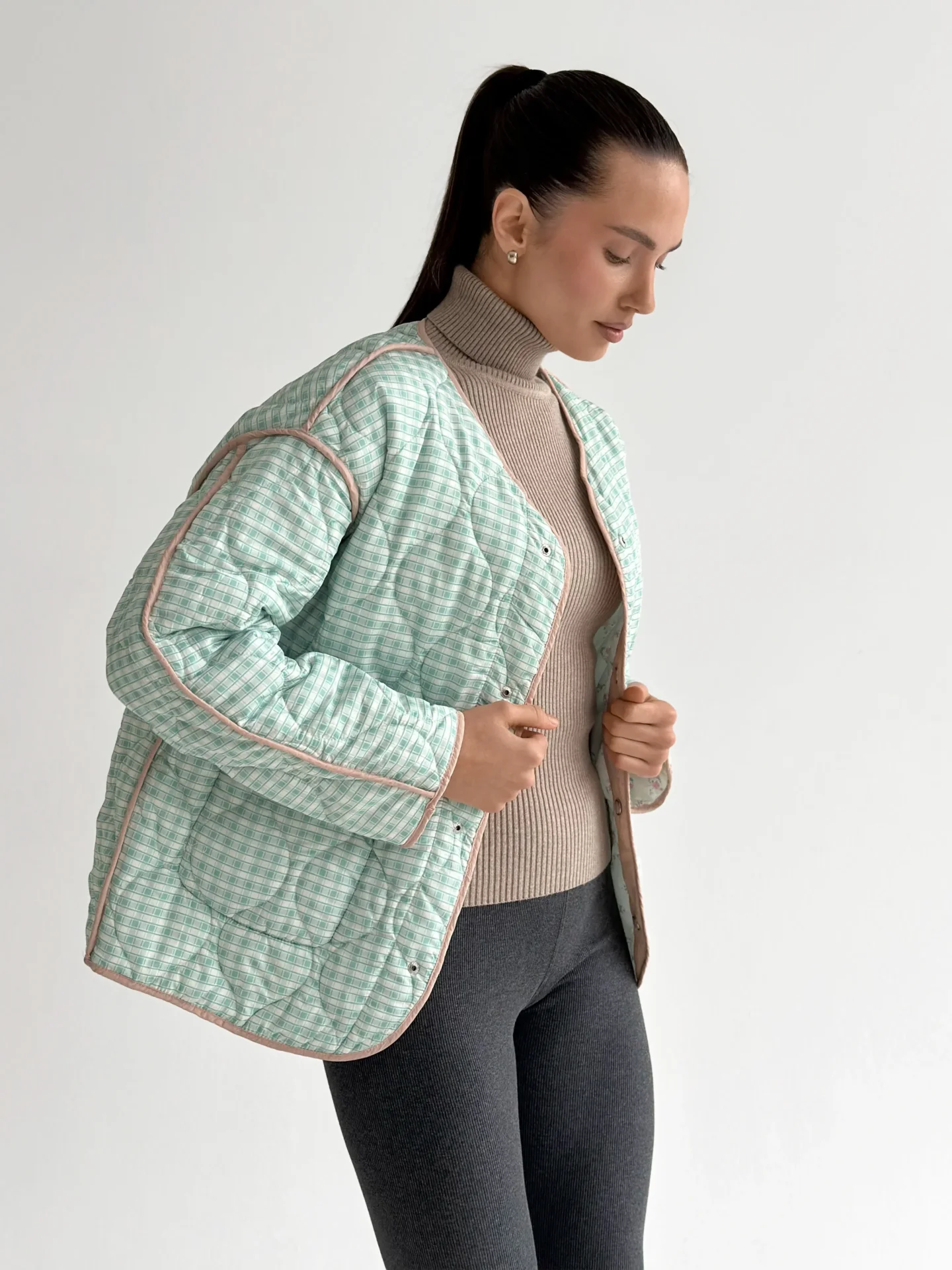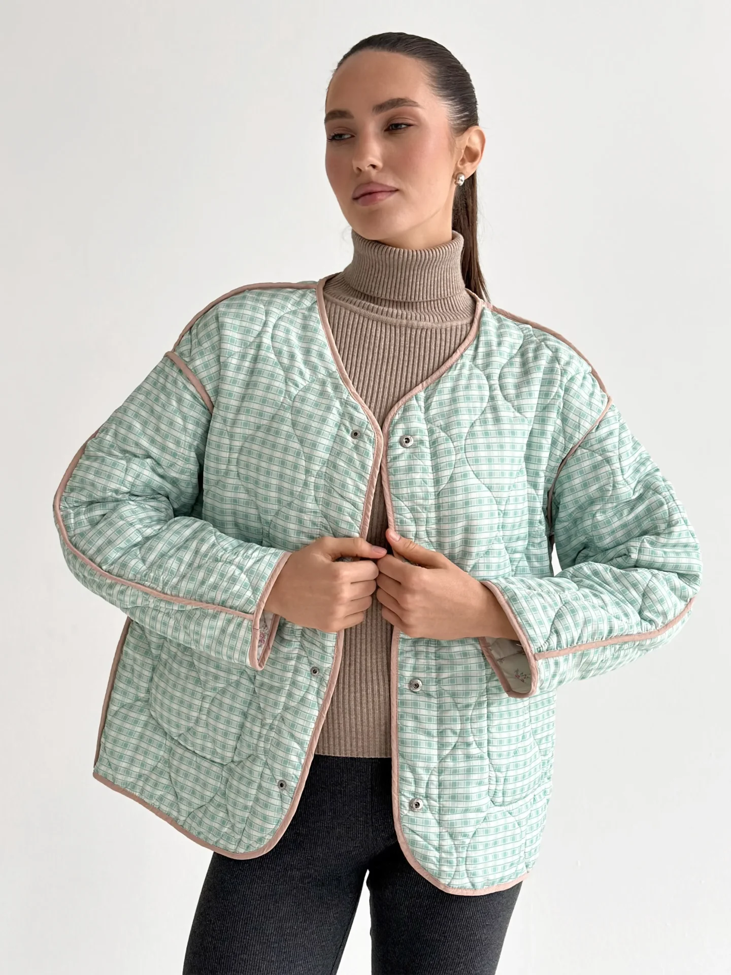 Kurtka pikowana, biało-pudrowa w różowe kwiaty