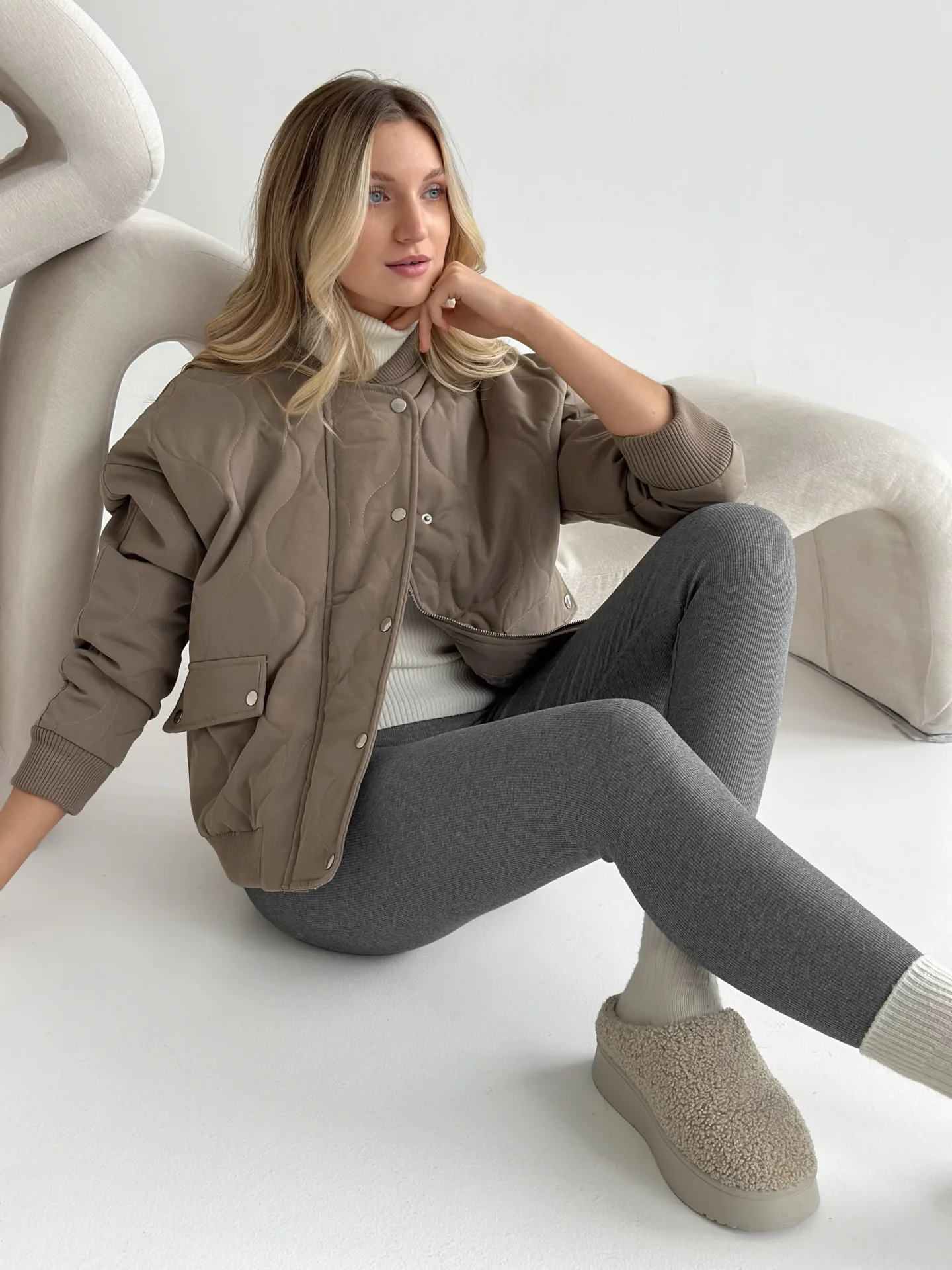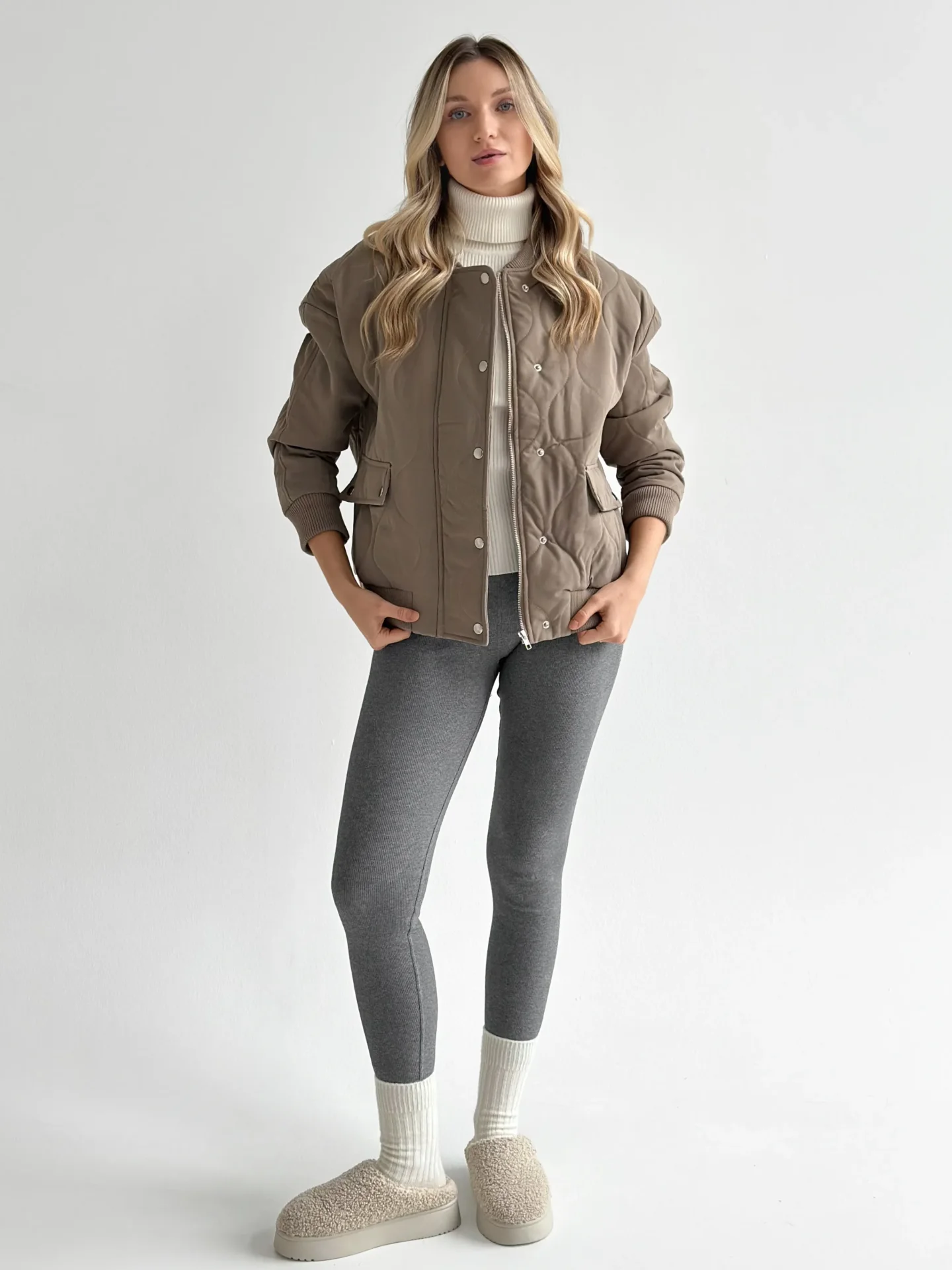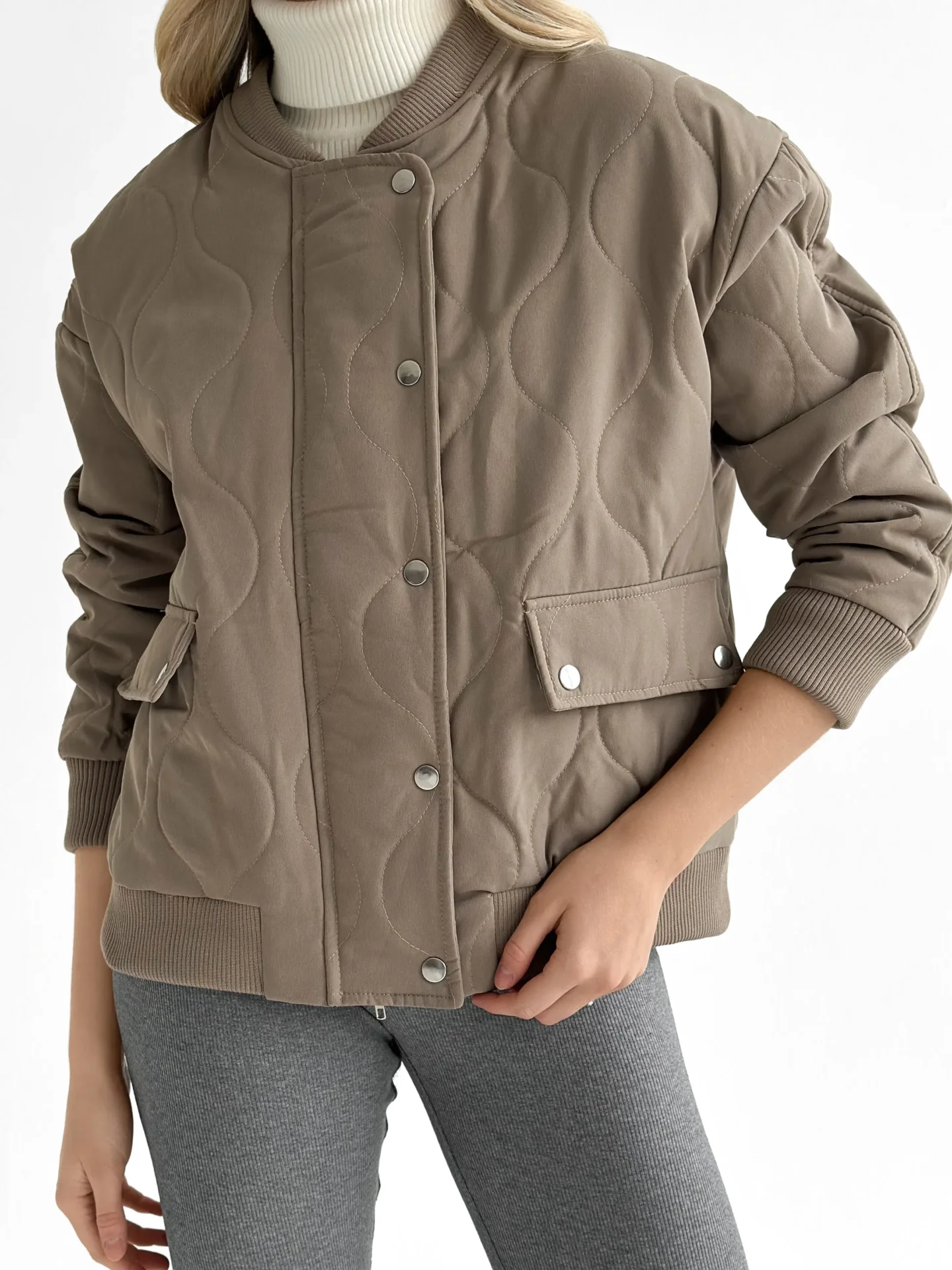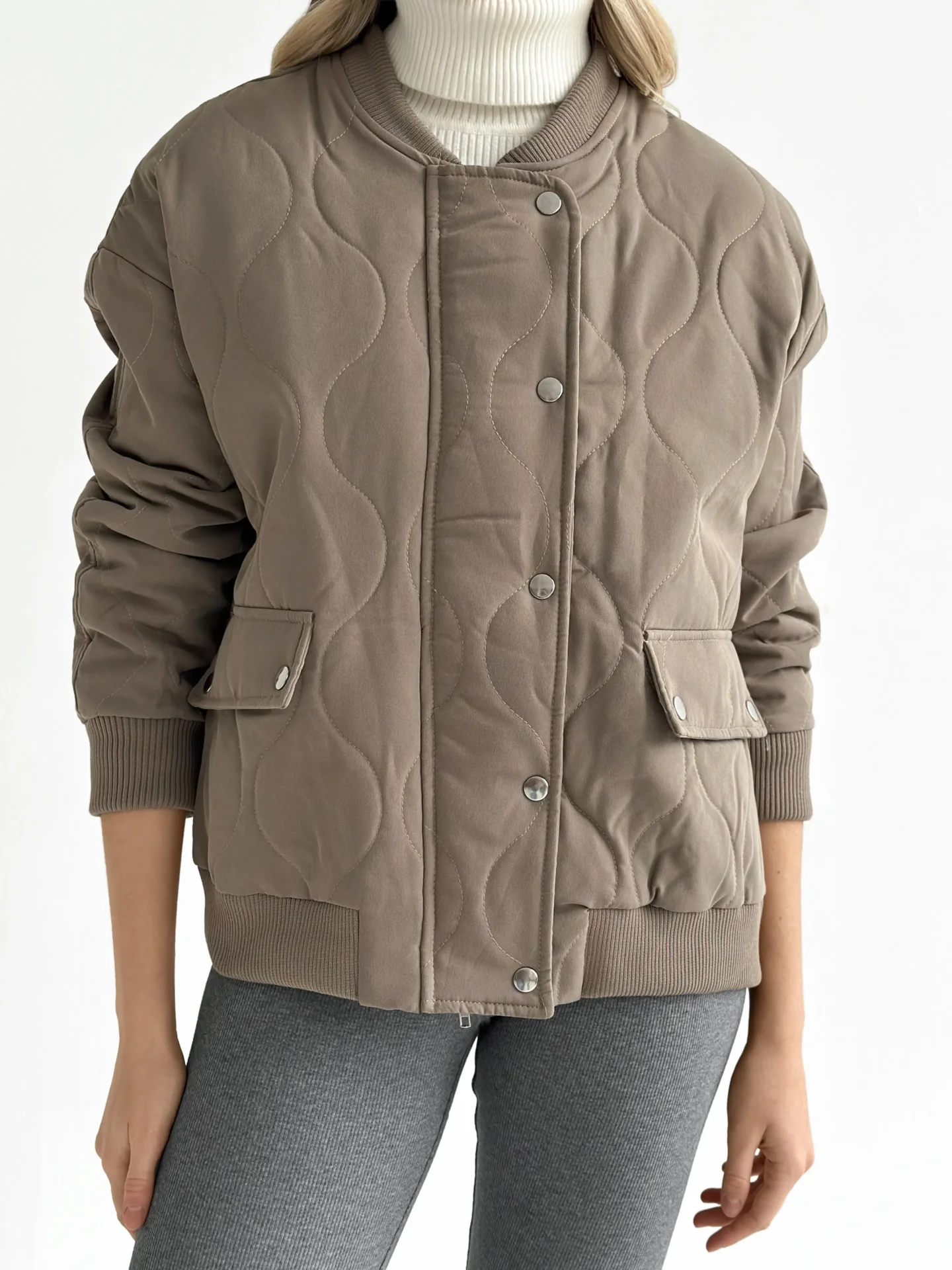 Kurtka pikowana bomber, cappuccino
