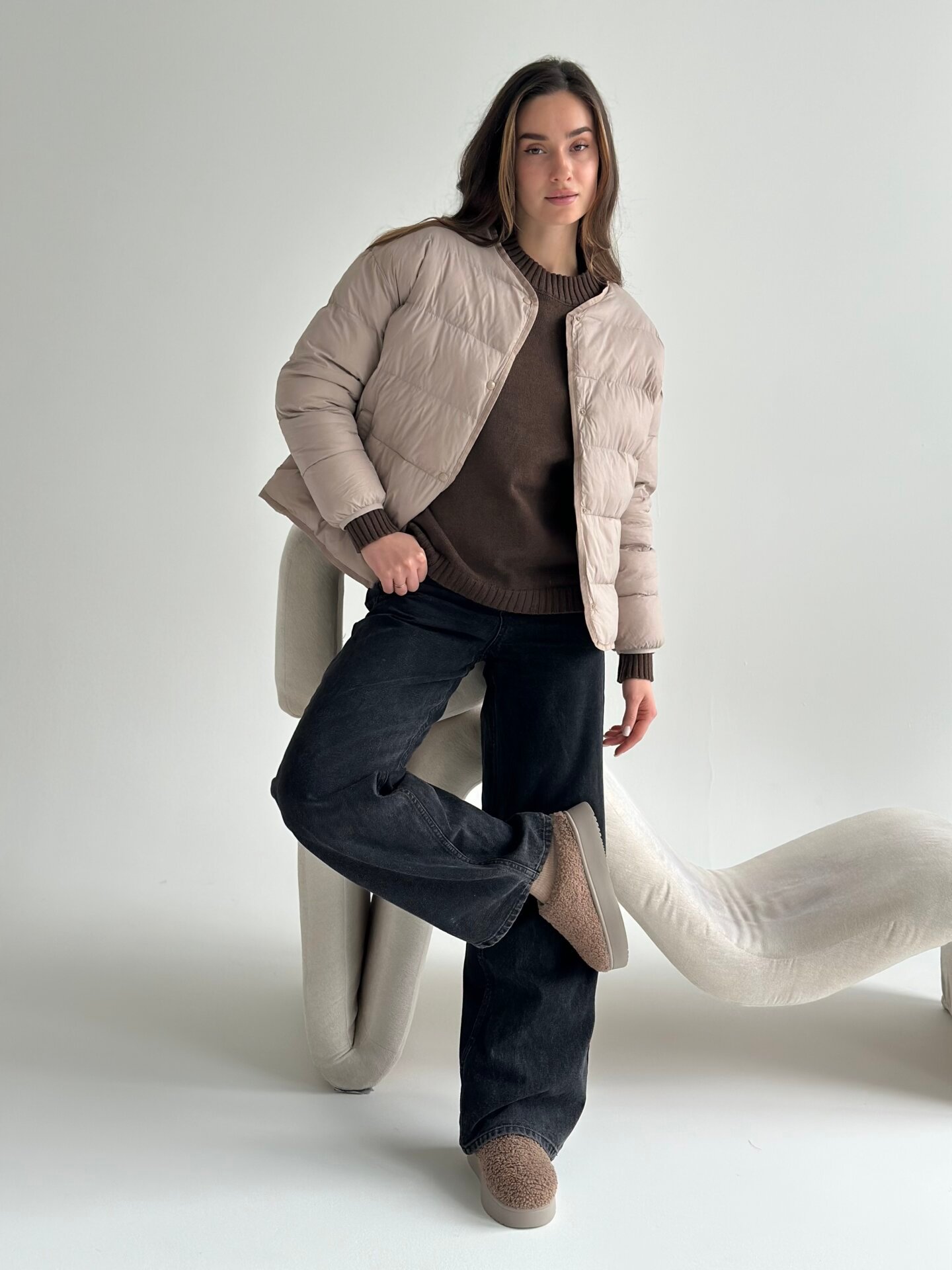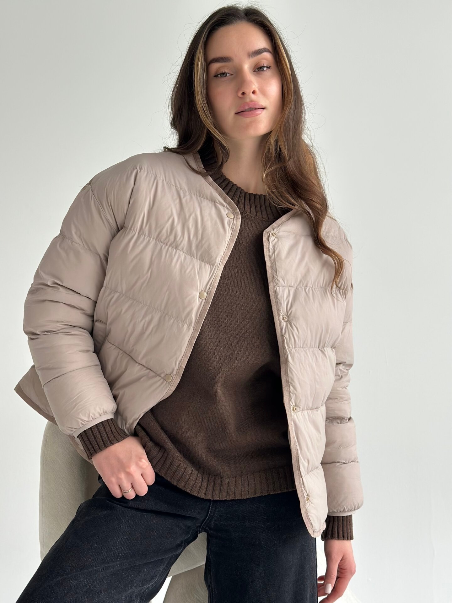 Kurtka pikowana puchowa, mokka