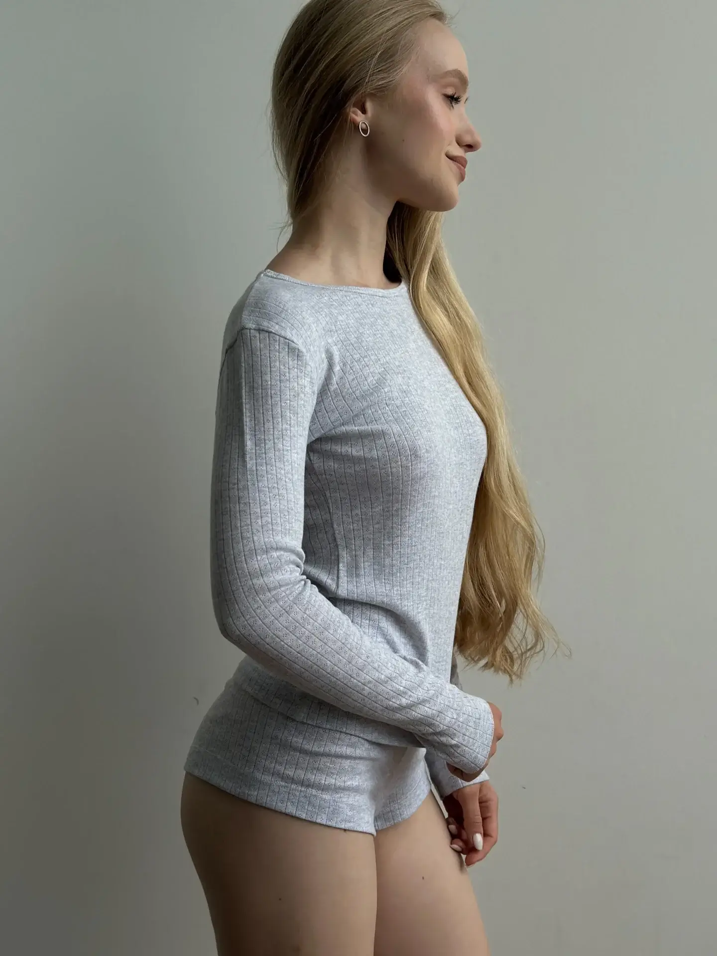 Koszulka z długim rękawem, z ribany prążkowanej, szara