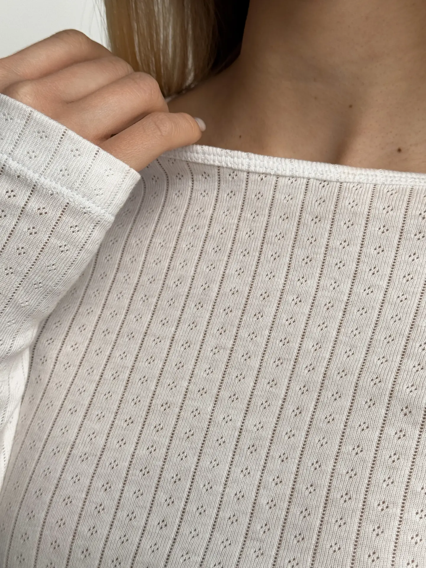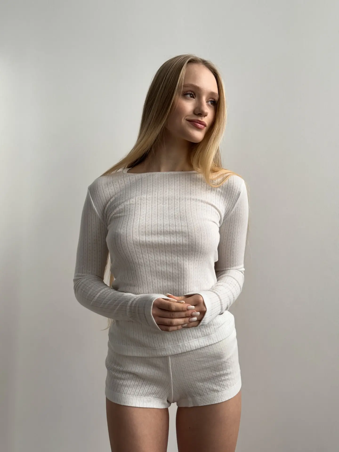 Koszulka z długim rękawem, z ribany prążkowanej, mleczna