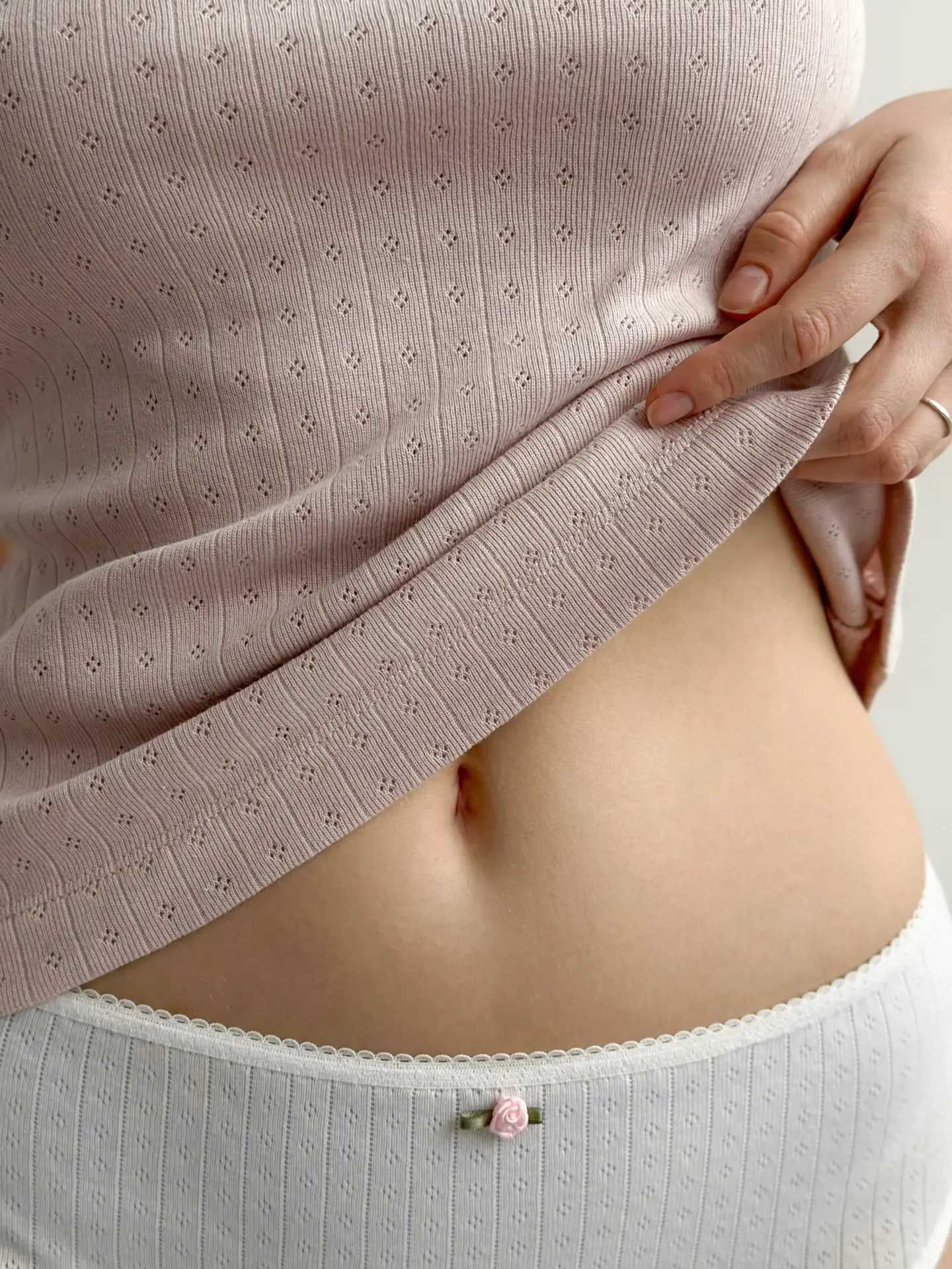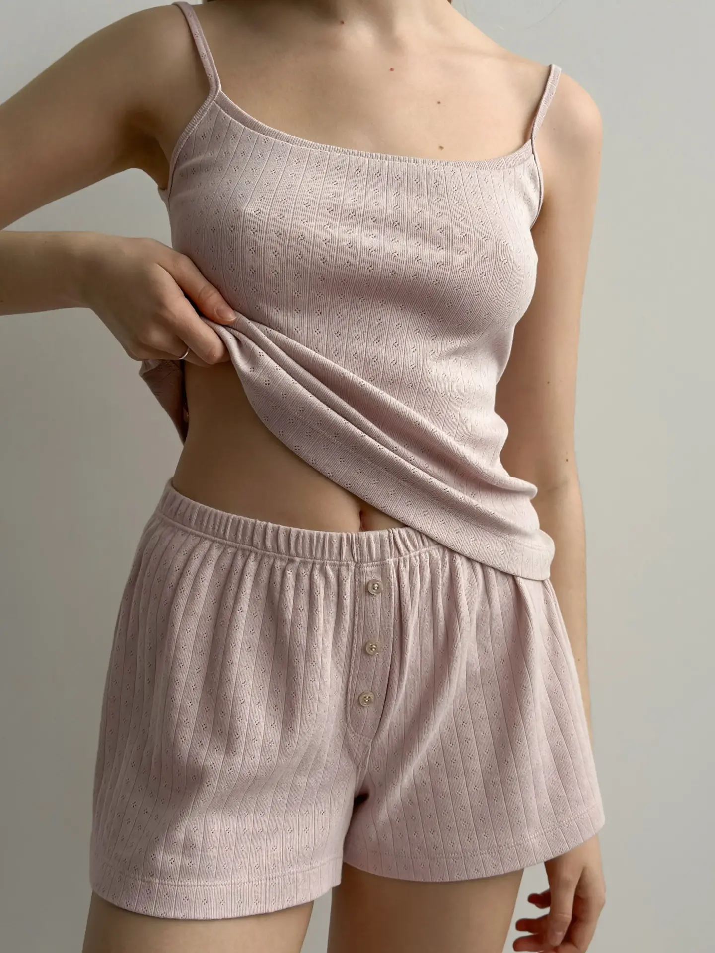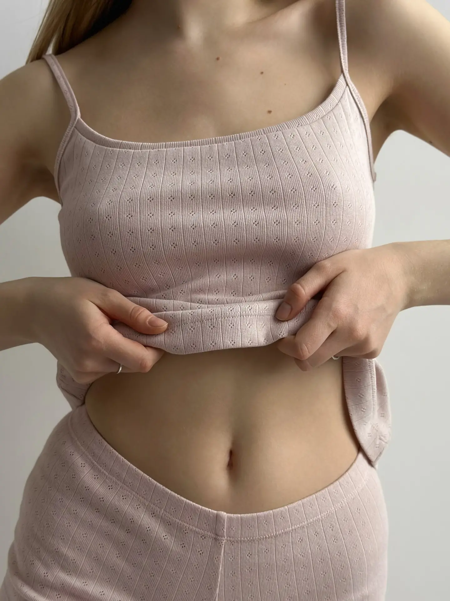 Koszulka na ramiączkach, z ribany prążkowanej, pudrowa