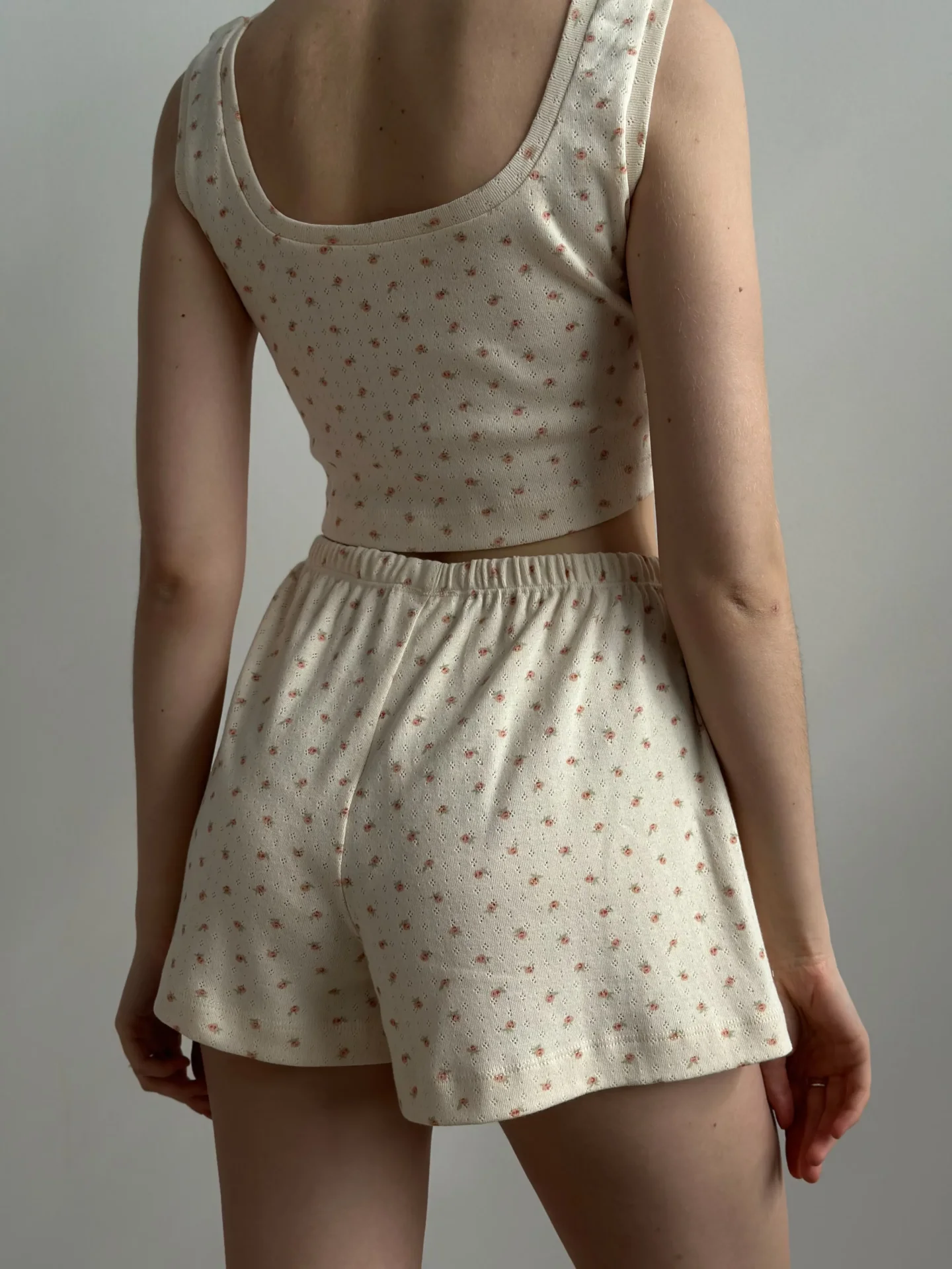 Top mini z ribany, kremowy w różę