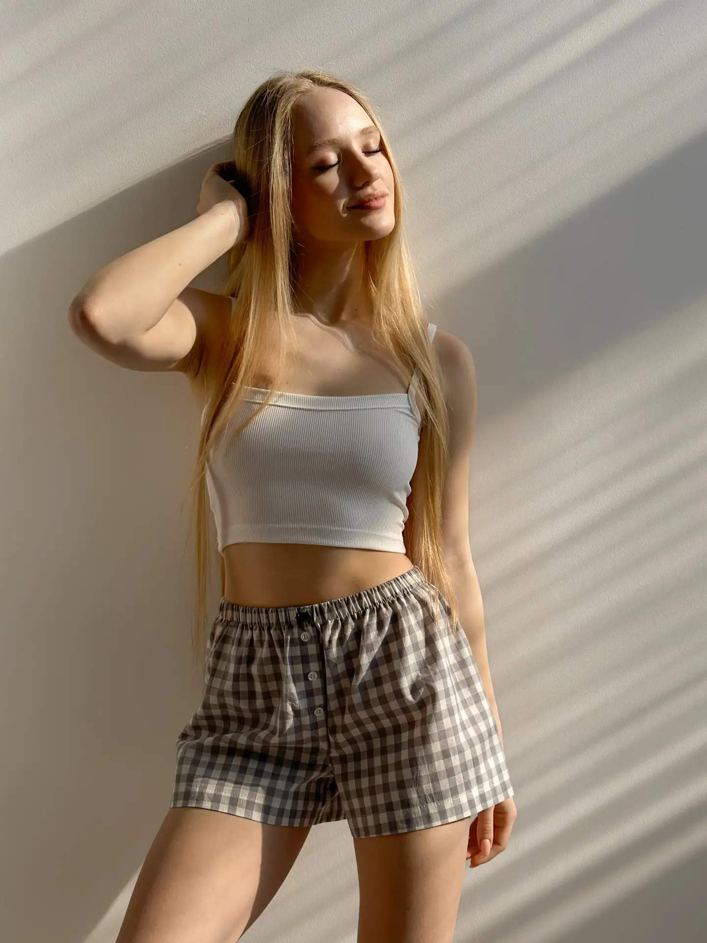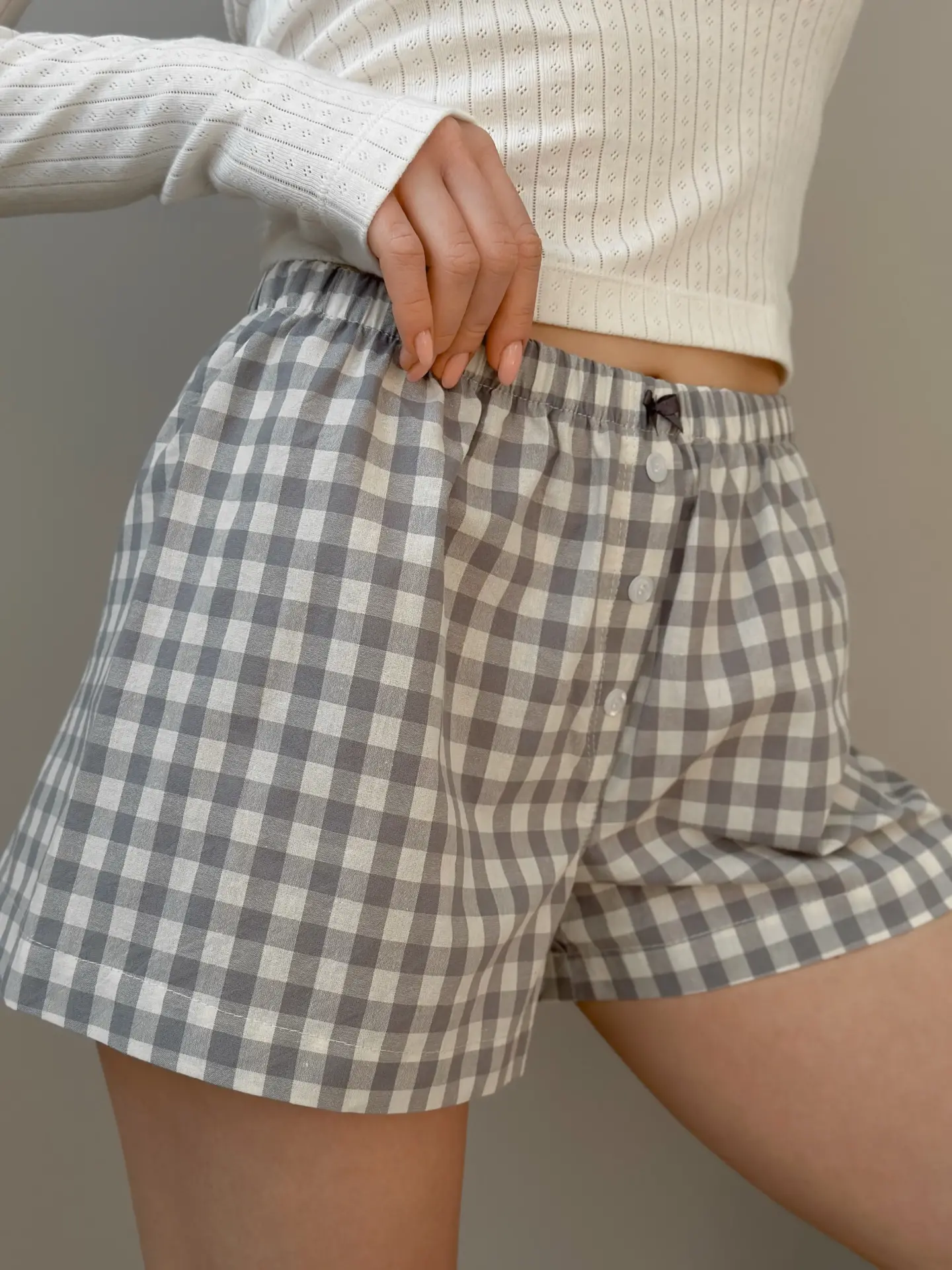 Szorty Mono z bawełny pranej, w szarą kratkę