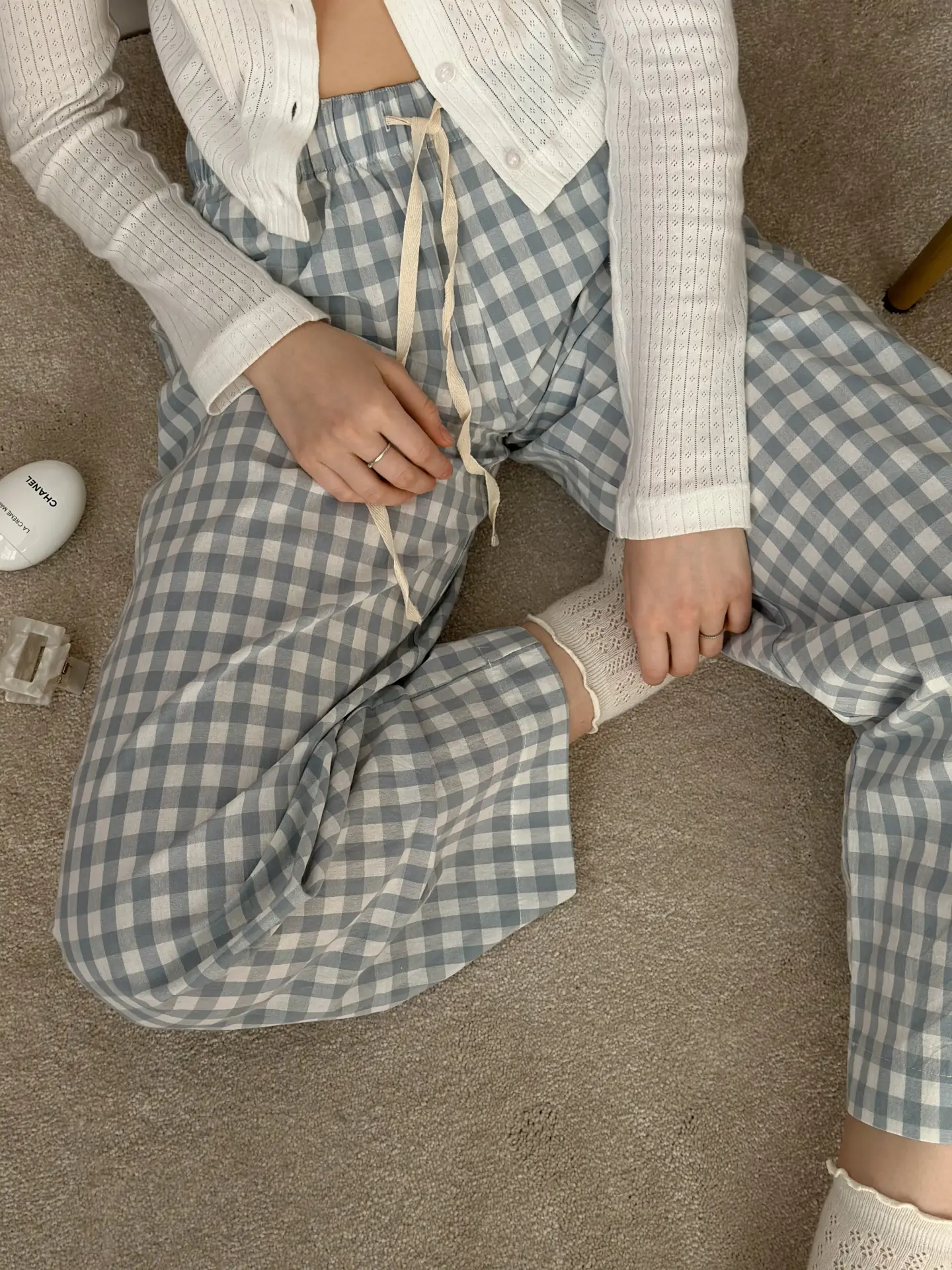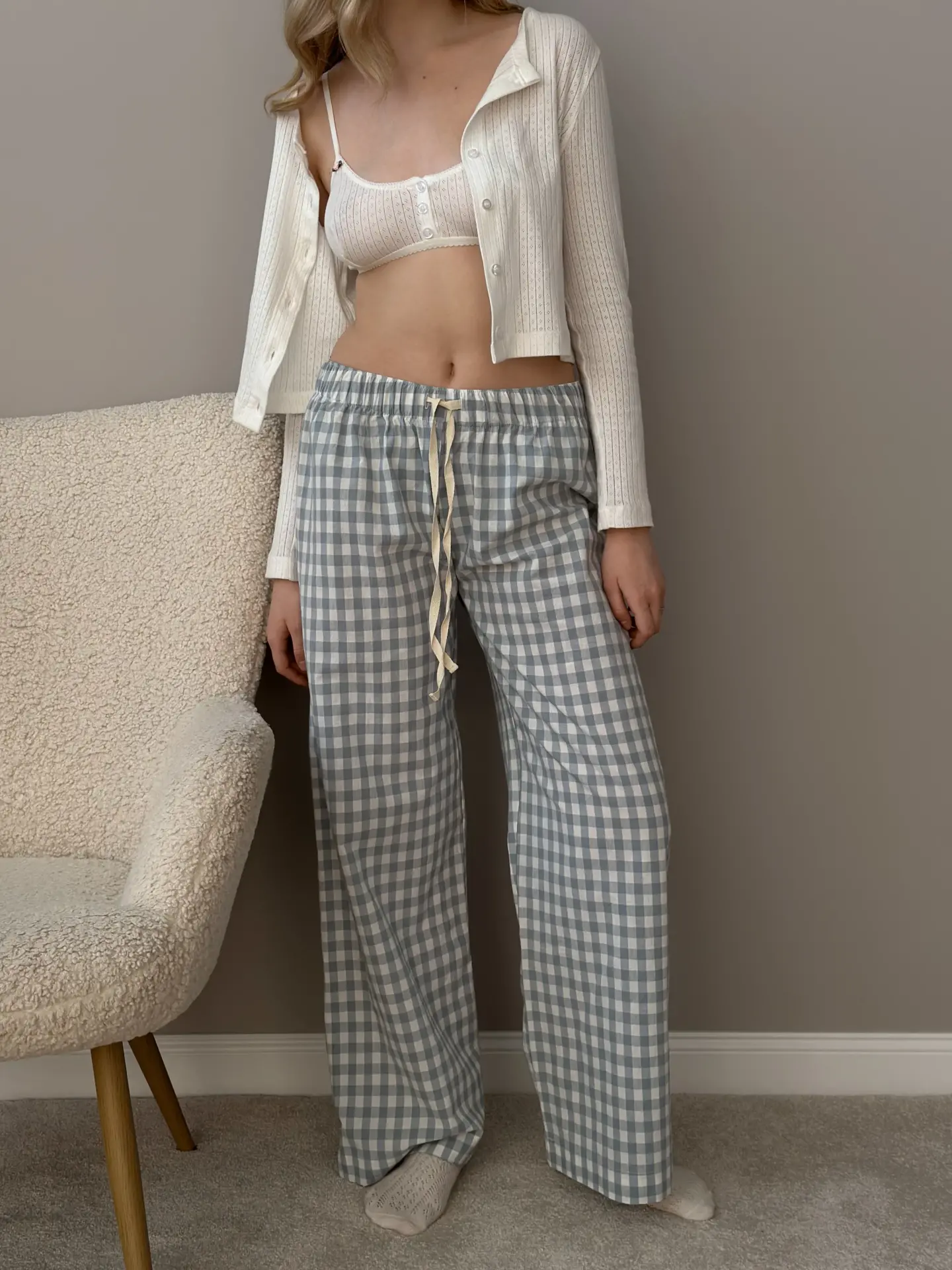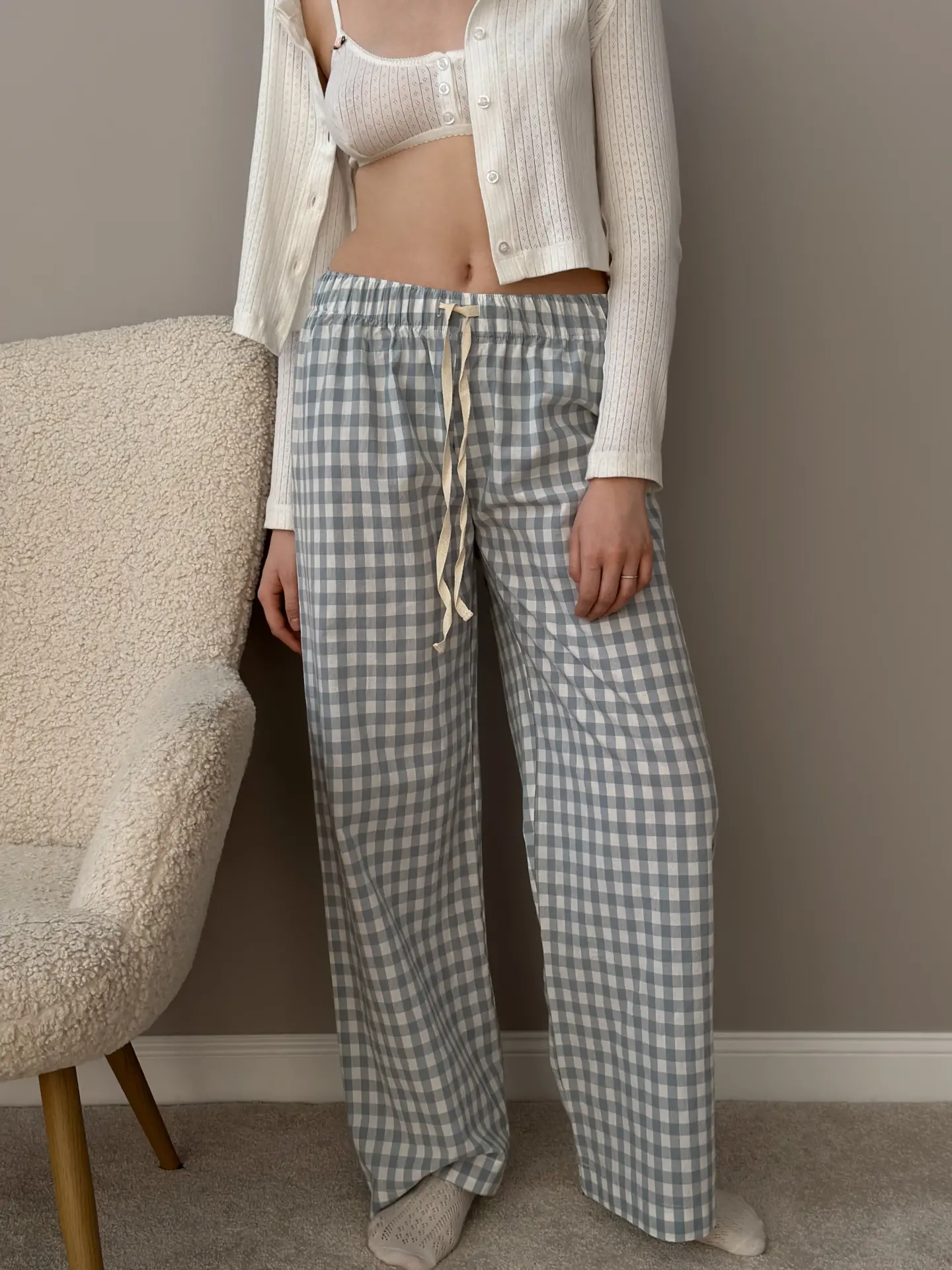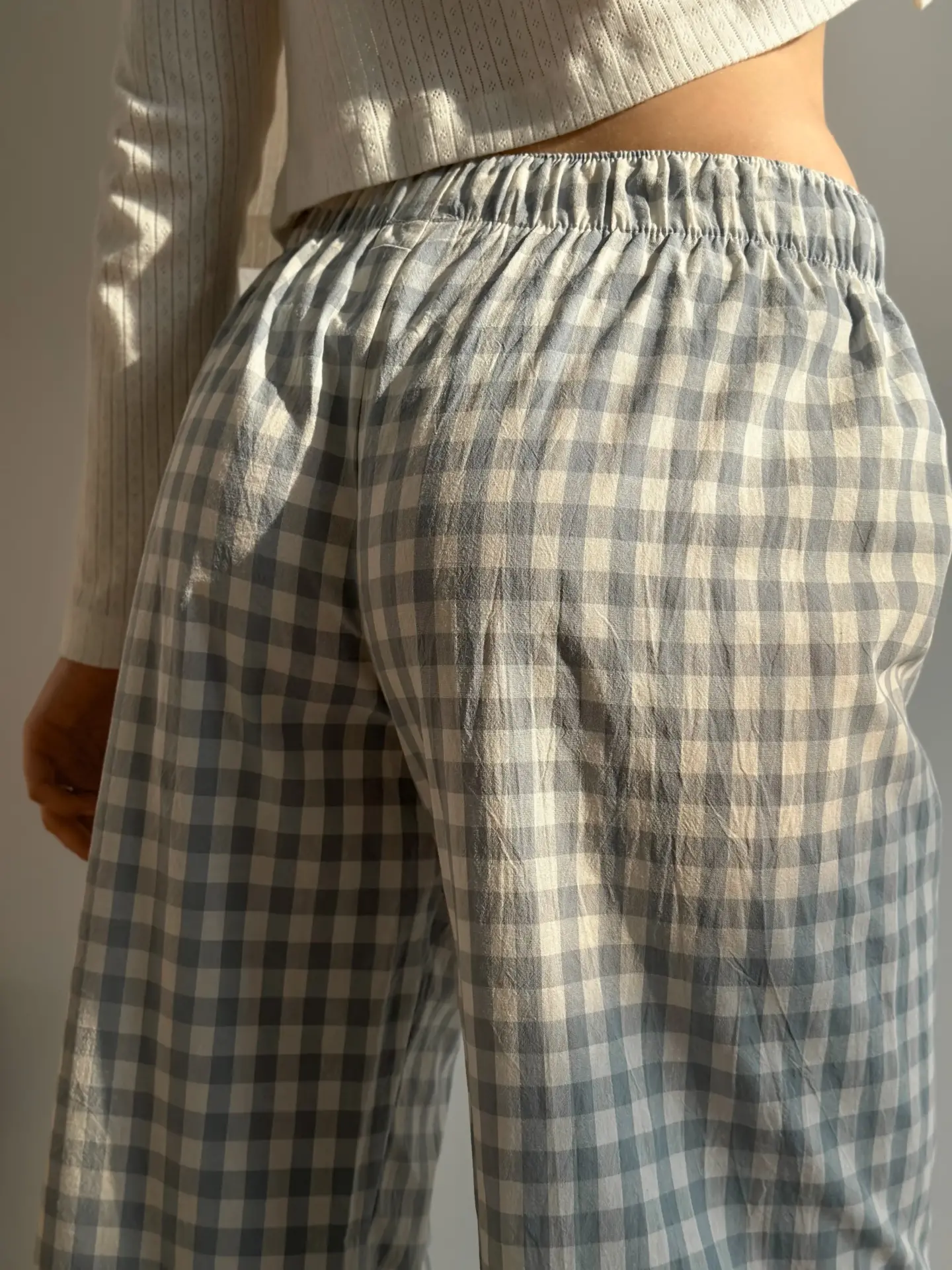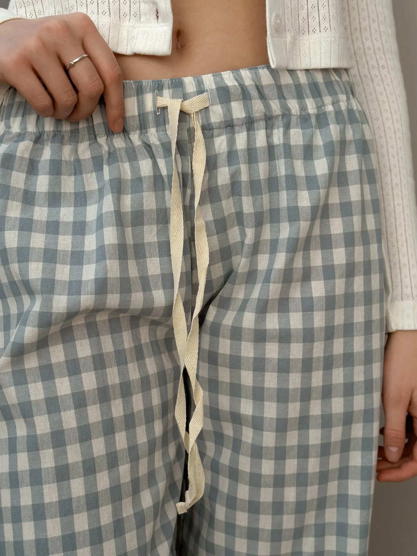 Spodnie Mono z bawełny pranej, w niebieską kratkę