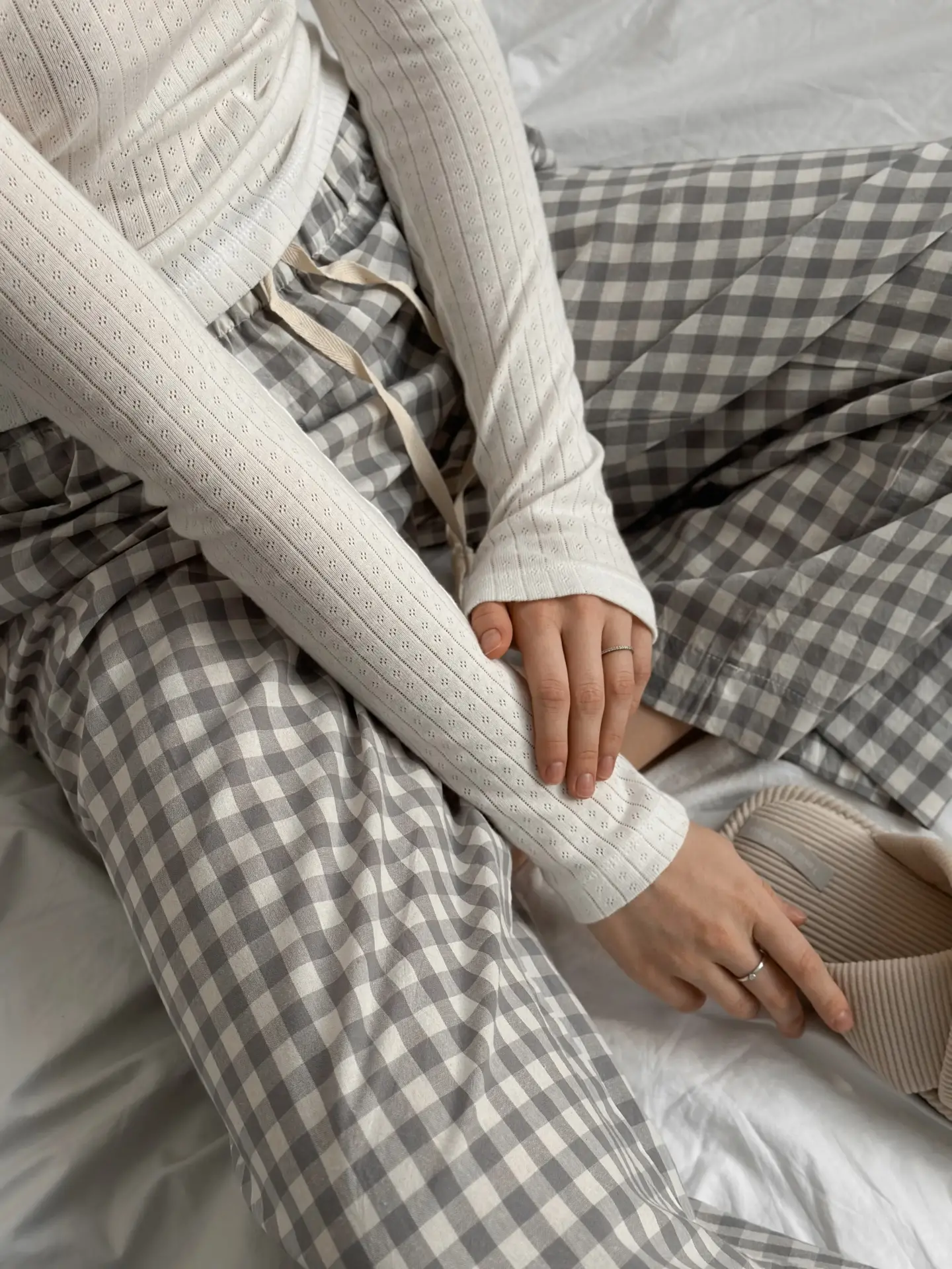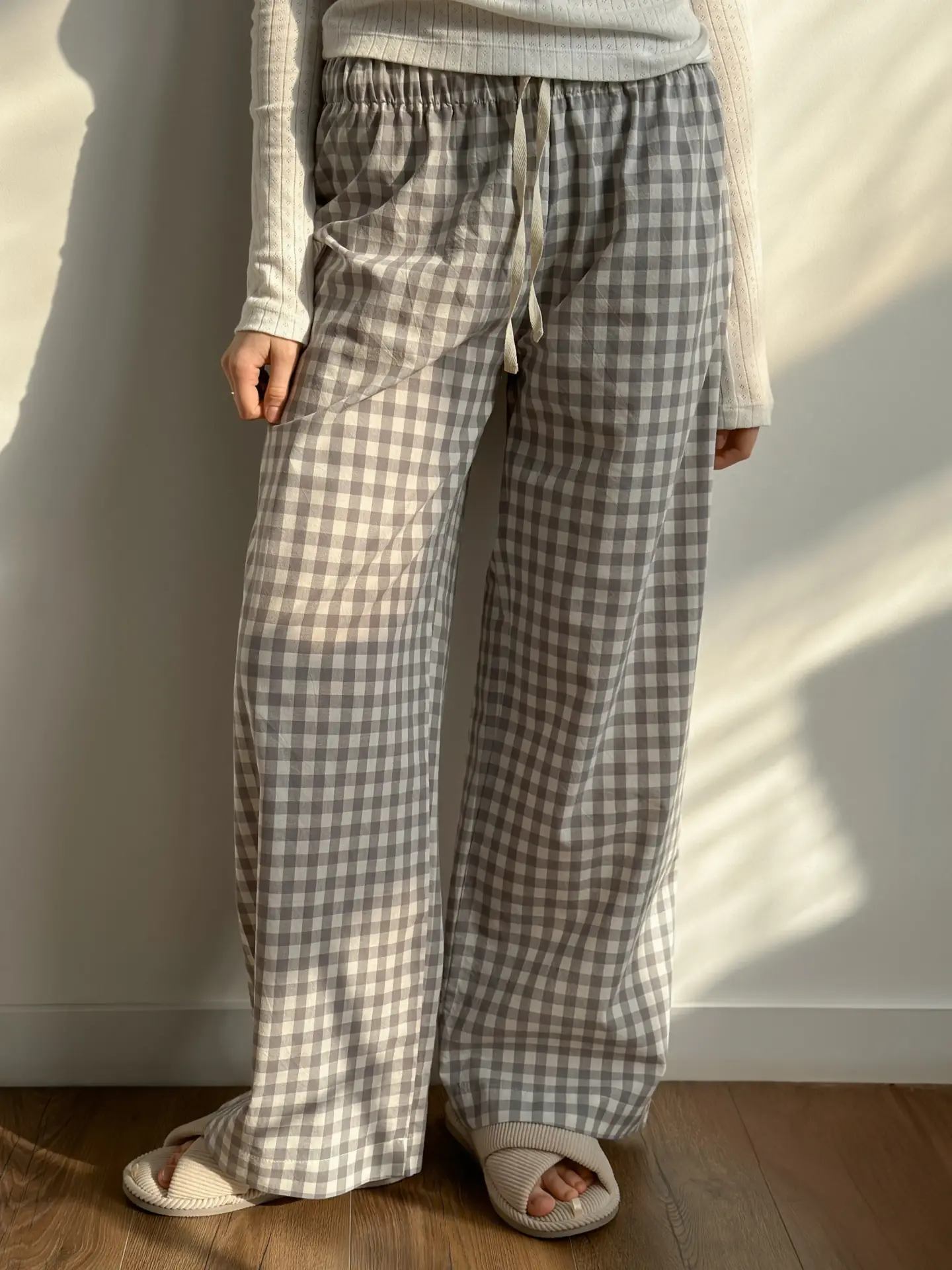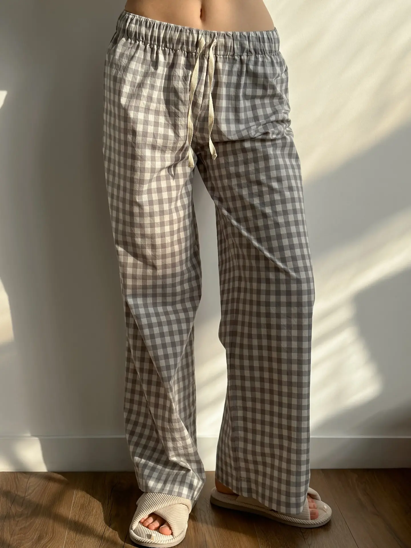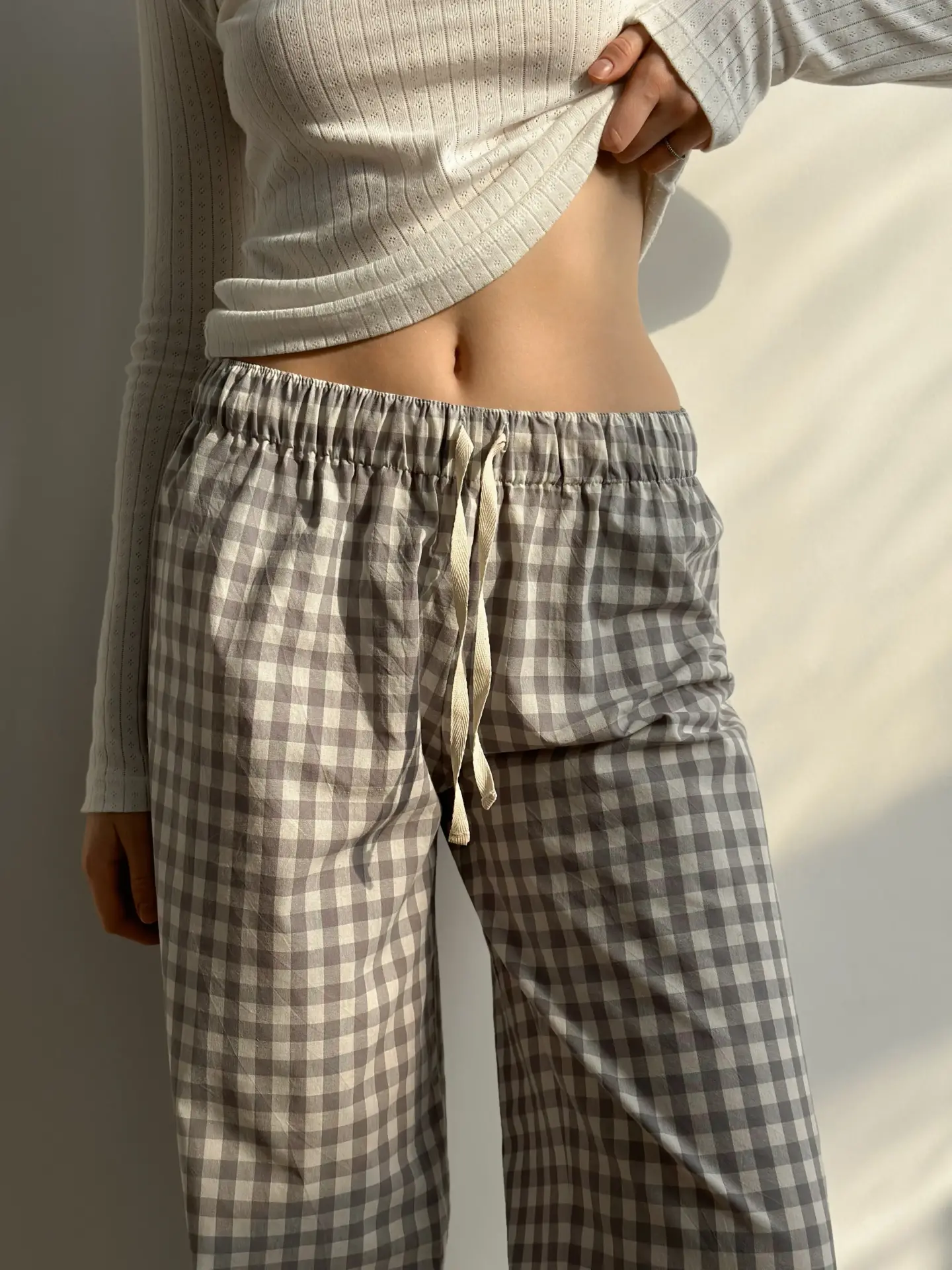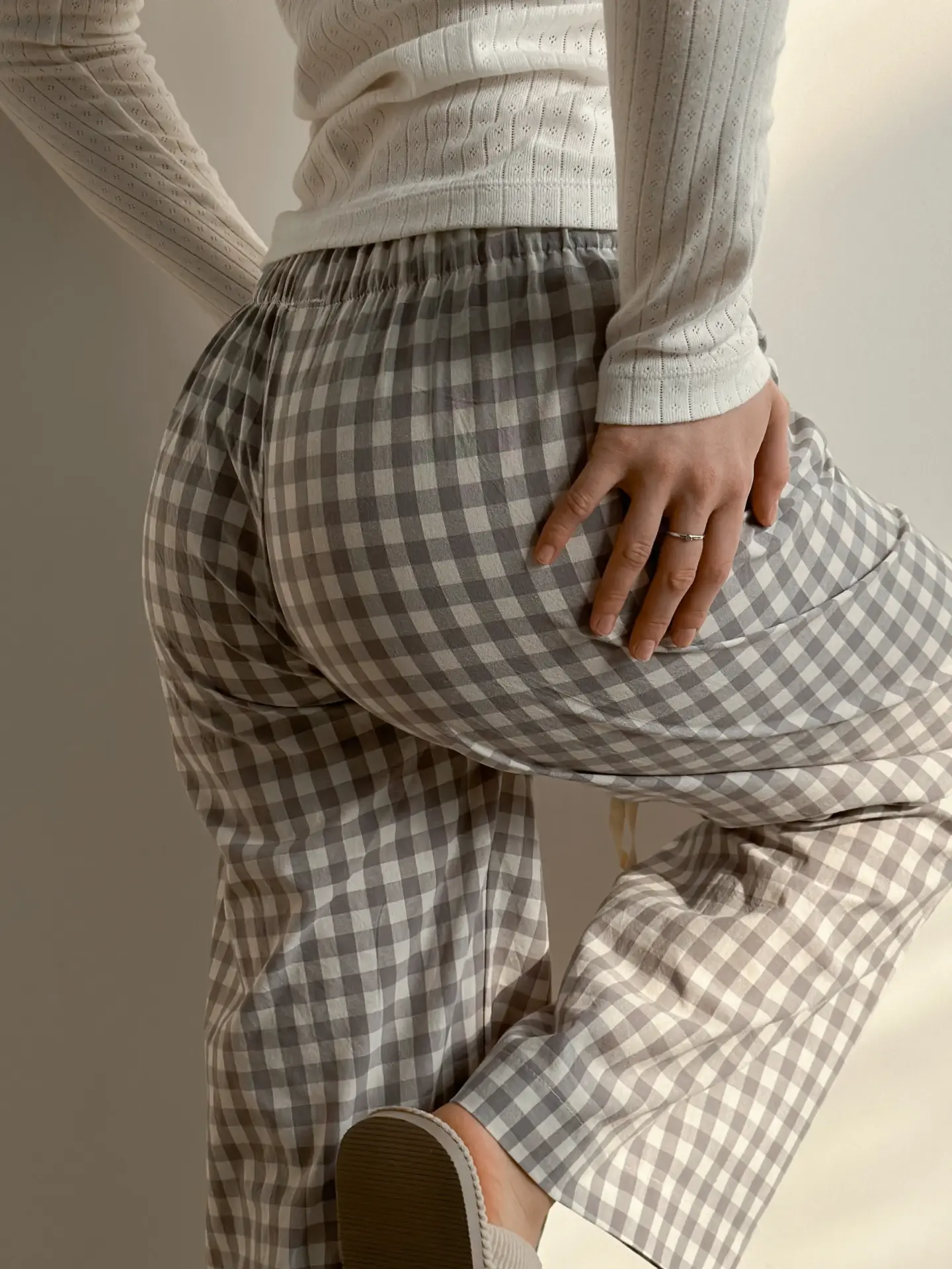 Spodnie Mono z bawełny pranej, w szarą kratkę